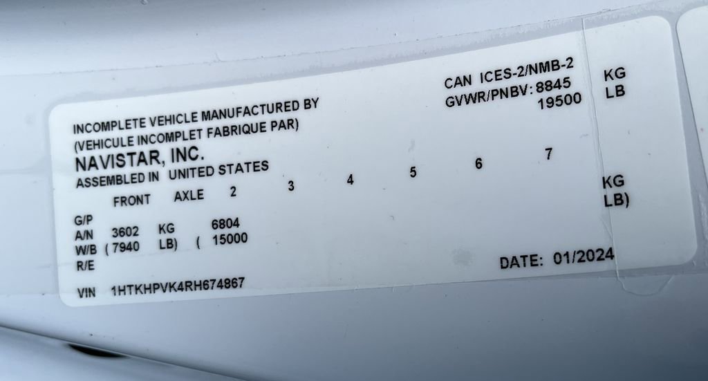 - VIN : 1HTKHPVK4RH674867