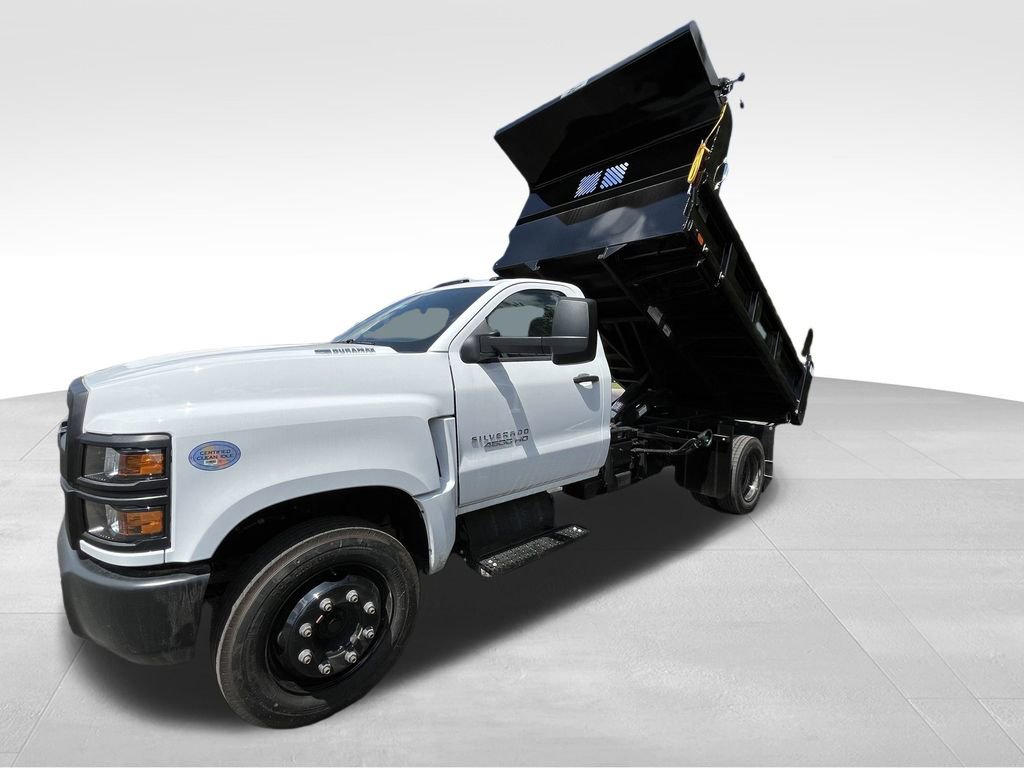 Summit White 2024 Chevrolet Silverado 4500HD Work Truck 11' RUGBY DUMP BED RWD 6-Speed Automatic Duramax 6.6L V8 Turbodiesel 10-Way Power Driver's Seat Adjuster, 26,000 lbs. GCWR (11,793 kg), 3' Auxiliary Harness For Headlamps & Turn Signals, 4.10 Rear Axle Ratio, 4.30 Rear Axle Ratio, 40/20/40 Front 3-Passenger Split Bench Seat, 5 Gallons Additional Fuel, ABS brakes, Air Conditioning, Black Frame-Mounted Front Recovery Hooks, Chevrolet Connected Access Capable, Cloth Seat Trim, Delay-off headlights, Driver door bin, Dual front impact airbags, Dual front side impact airbags, Dual rear wheels, Electronic Stability Control, Exterior Parking Camera Rear, Front Center Armrest w/Storage, Front reading lights, Frontal Passenger-Side Airbag Deactivation Switch, Fully automatic headlights, Heavy-Duty Rear Locking Differential, Manual Regeneration Diesel Particulate Filter DPF, Occupant sensing airbag, OnStar & Chevrolet Connected Services Capable, Overhead airbag, Overhead console, Passenger cancellable airbag, Passenger door bin, Passenger vanity mirror, Power steering, Power Take-Off Engine Control Provisions, Power Windows w/Driver Express Up & Down, Premium audio system: Chevrolet MyLink, Provision For Cab Roof Mounted Lamp/Beacon, Rear-Window Electric Defogger, Remote Keyless Entry, Single-Slot CD/MP3 Player, Single-Zone Air Conditioning, SiriusXM Radio, Snow Plow Prep Package, Speed control, Stone Protection Grille Guard Screen, Tachometer, Tilt steering wheel, Top Post Threaded Battery Jump Start Stud, Traction control, Trip computer, Variably intermittent wipers, Vocational Specific Heavy Suspension Package, Voltmeter, Wheels: 19.5 x 6.75 Black Painted Hub Piloted Steel w/8-Holes.