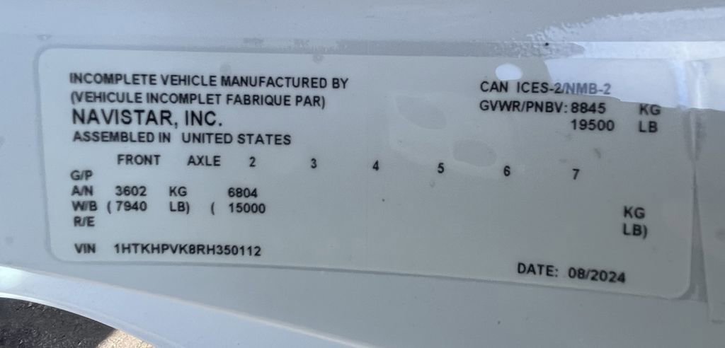 - VIN : 1HTKHPVK8RH350112