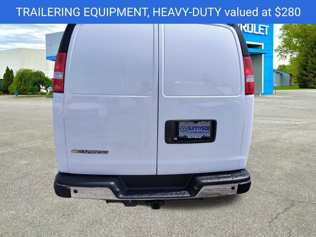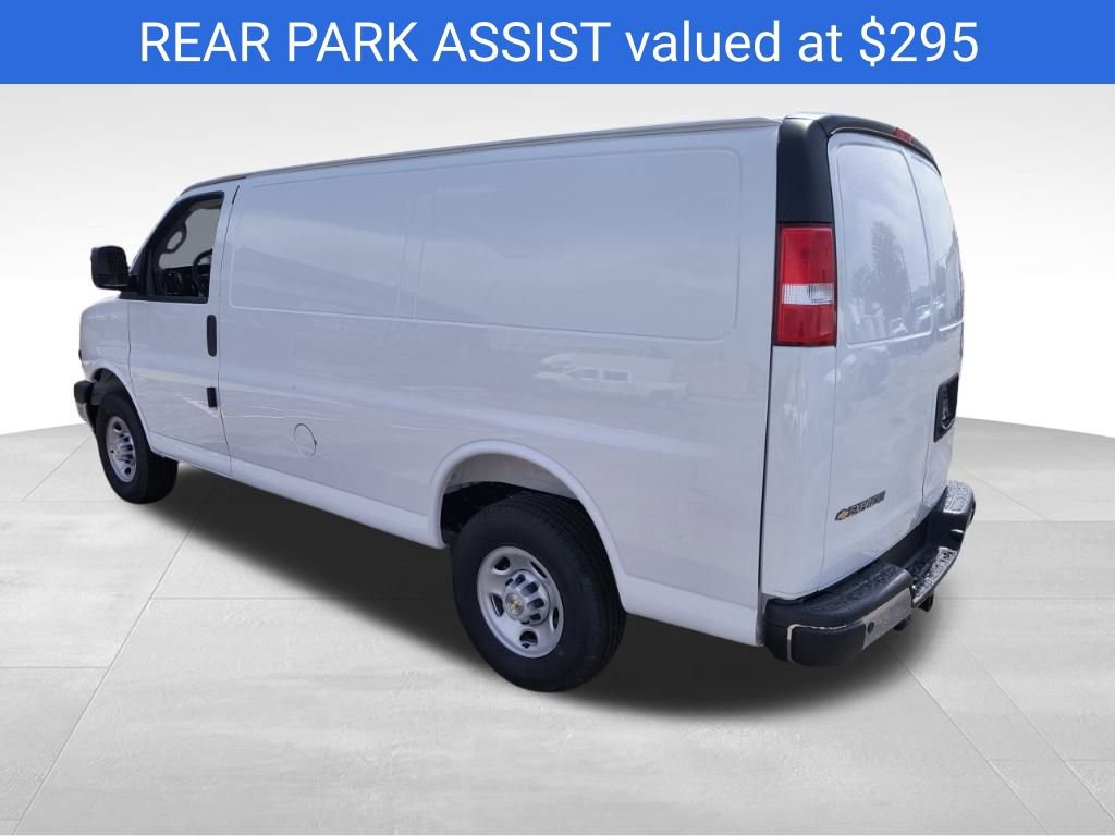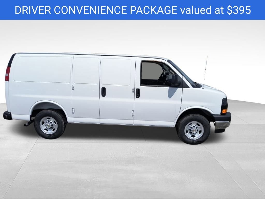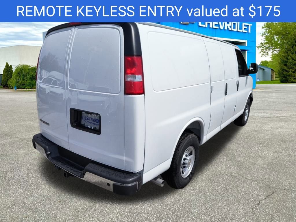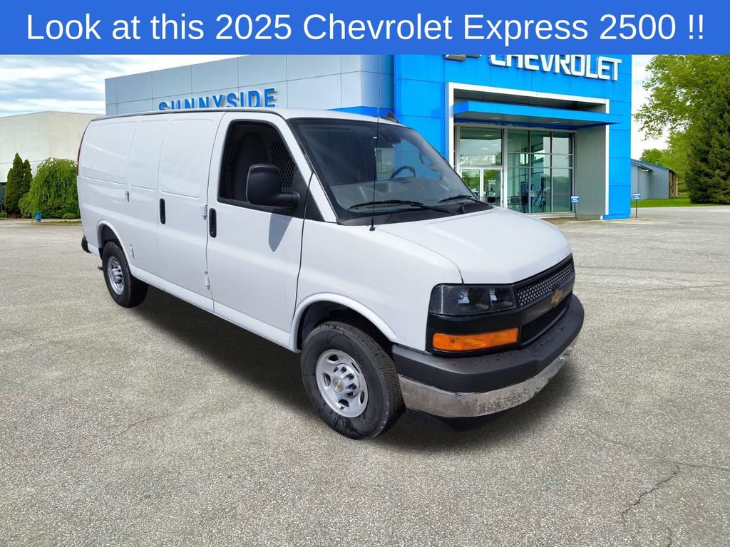 Summit White 2025 Chevrolet Express 2500 Work Van Cargo RWD 8-Speed Automatic with Overdrive 4.3L V6 150 Amp Alternator, 16 x 6.5 Steel Wheels, 2 Speakers, 3.42 Rear Axle Ratio, 4-Wheel Disc Brakes, 8-Point Digital Compass, ABS brakes, Air Conditioning, AM/FM radio, AM/FM Stereo w/MP3 Player, Auxiliary Lighting, Bluetooth Phone Connection Kit (LPO), Cruise Control, Delay-off headlights, Driver & Front Passenger High-Back Bucket Seats, Driver Convenience Package, Driver door bin, Driver's Seat Mounted Armrest, Dual front impact airbags, Dual front side impact airbags, Electronic Stability Control, Engine Cover Console w/Swing-Out Storage Bin, Exterior Parking Camera Rear, Forward Collision Alert, Front & Rear Chrome Bumpers w/Step-Pad, Front anti-roll bar, Front Bucket Seats, Front Reclining High-Back Bucket Seats, Front wheel independent suspension, Full-Length Black Rubberized-Vinyl Floor Covering, Fully automatic headlights, Heated door mirrors, Heavy-Duty Rear Locking Differential, Heavy-Duty Trailering Equipment, Lane Departure Warning System, Low tire pressure warning, Occupant sensing airbag, Overhead airbag, Passenger cancellable airbag, Passenger door bin, Passenger seat mounted armrest, Power door mirrors, Power steering, Power windows, Preferred Equipment Group 1WT, Rear Park Assist, Reclining Front Bucket Seats w/Inboard Armrests, Remote Keyless Entry, Side Blind Zone Alert, Single-Zone Manual Air Conditioning, Tachometer, Theft Alarm Notification, Tilt Steering Wheel, Traction control, Trip computer, Variably intermittent wipers, Vinyl Seat Trim, Voltmeter.