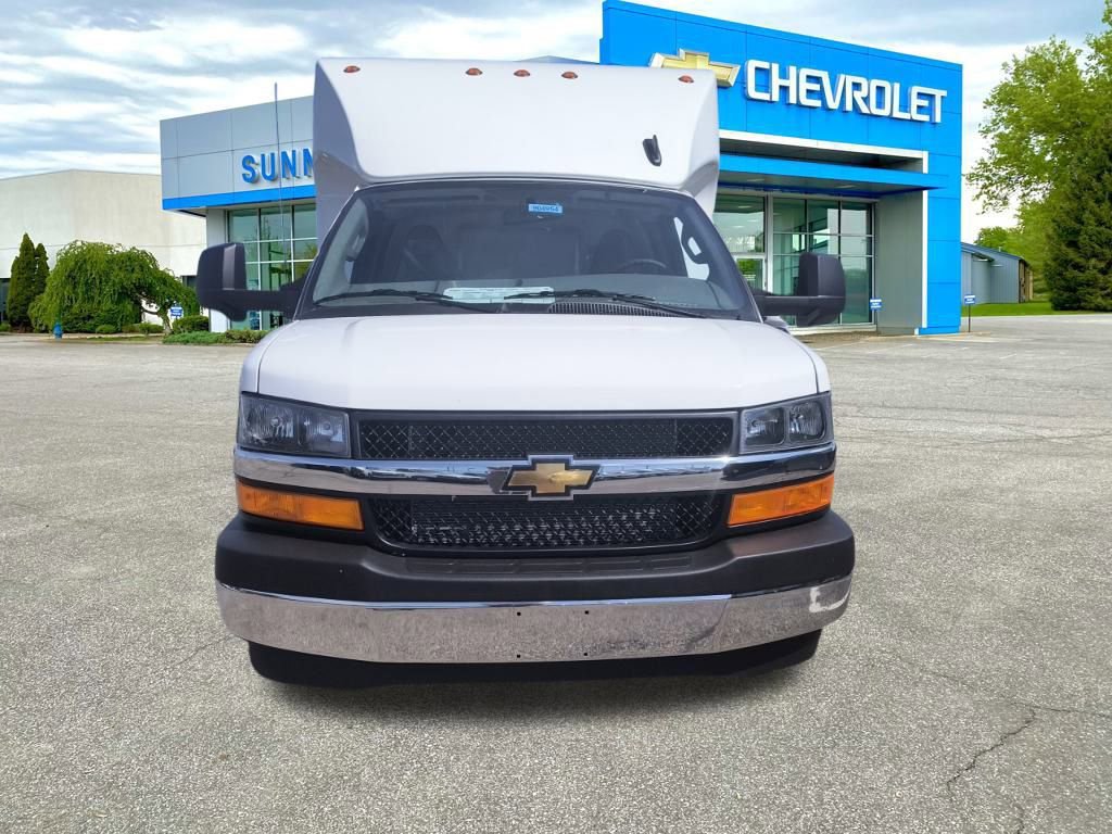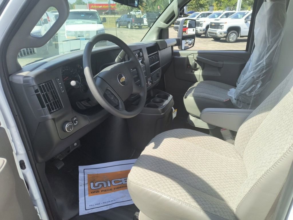 Summit White 2025 Chevrolet Express 3500 Work Van Cutaway 15' Unicell Box RWD 8-Speed Automatic 6.6L V8 4-Wheel Disc Brakes, ABS brakes, Air Conditioning, Bluetooth Phone Connection Kit (LPO), Chrome Appearance Package, Chrome Grille, Cruise Control, Delay-off headlights, Driver & Front Passenger High-Back Bucket Seats, Driver & Front Passenger Vinyl Visors, Driver Convenience Package, Driver door bin, Driver's Seat Mounted Armrest, Dual front impact airbags, Dual front side impact airbags, Dual Rear Wheel Configuration, Electronic Stability Control, Engine Cover Console w/Swing-Out Storage Bin, Exterior Parking Camera Rear, Front anti-roll bar, Front Bucket Seats, Front Chrome Bumper w/Step-Pad, Front wheel independent suspension, Fully automatic headlights, Heavy-Duty Locking Rear Differential, Inside Rearview Mirror w/Rr Vision Camera Display, Low tire pressure warning, Occupant sensing airbag, Overhead airbag, Passenger cancellable airbag, Passenger door bin, Passenger seat mounted armrest, Power Convenience Package, Power steering, Power Windows, Preferred Equipment Group 1WT, Radio: AM/FM Stereo w/MP3 Player & Digital Clock, Reclining High-Back Bucket Seats w/Inboard Armrests, Remote Keyless Entry, Single Rear Wheel Configuration, Tachometer, Theft Alarm Notification, Tilt Steering Wheel, Traction control, Trip computer, Variably intermittent wipers, Vinyl Seat Trim, Voltmeter, Wheels: 16 x 6.5 8-Lug Painted Steel HD (4), Wheels: 16 x 6.5 8-Lug Painted Steel HD (6), Wide-Stance Sail Panel Mounted Outside Mirrors, 2 Speakers, AM/FM radio, 4-Wheel Disc Brakes, ABS brakes, Air Conditioning, Bluetooth Phone Connection Kit (LPO), Chrome Appearance Package, Chrome Grille, Cruise Control, Delay-off headlights, Driver & Front Passenger High-Back Bucket Seats, Driver & Front Passenger Vinyl Visors, Driver Convenience Package, Driver door bin, Driver's Seat Mounted Armrest, Dual front impact airbags, Dual front side impact airbags, Dual Rear Wheel Configuration, Electronic Stability Control, Engine Cover Console w/Swing-Out Storage Bin, Exterior Parking Camera Rear, Front anti-roll bar, Front Bucket Seats, Front Chrome Bumper w/Step-Pad, Front wheel independent suspension, Fully automatic headlights, Heavy-Duty Locking Rear Differential, Inside Rearview Mirror w/Rr Vision Camera Display, Low tire pressure warning, Occupant sensing airbag, Overhead airbag, Passenger cancellable airbag, Passenger door bin, Passenger seat mounted armrest, Power Convenience Package, Power steering, Power Windows, Preferred Equipment Group 1WT, Radio: AM/FM Stereo w/MP3 Player & Digital Clock, Reclining High-Back Bucket Seats w/Inboard Armrests, Remote Keyless Entry, Single Rear Wheel Configuration, Tachometer, Theft Alarm Notification, Tilt Steering Wheel, Traction control, Trip computer, Variably intermittent wipers, Vinyl Seat Trim, Voltmeter, Wheels: 16 x 6.5 8-Lug Painted Steel HD (4), Wheels: 16 x 6.5 8-Lug Painted Steel HD (6), Wide-Stance Sail Panel Mounted Outside Mirrors.