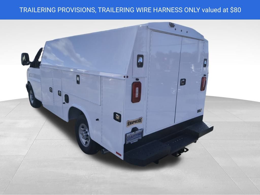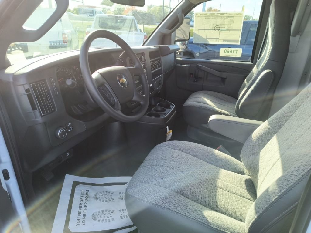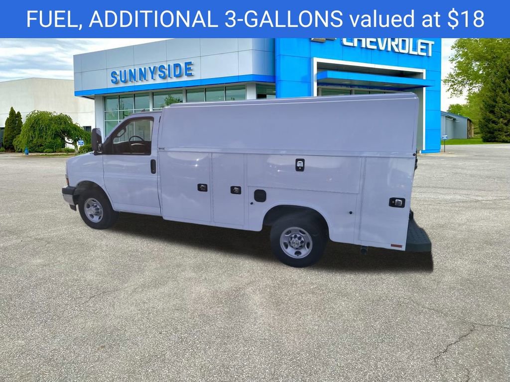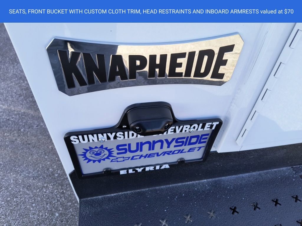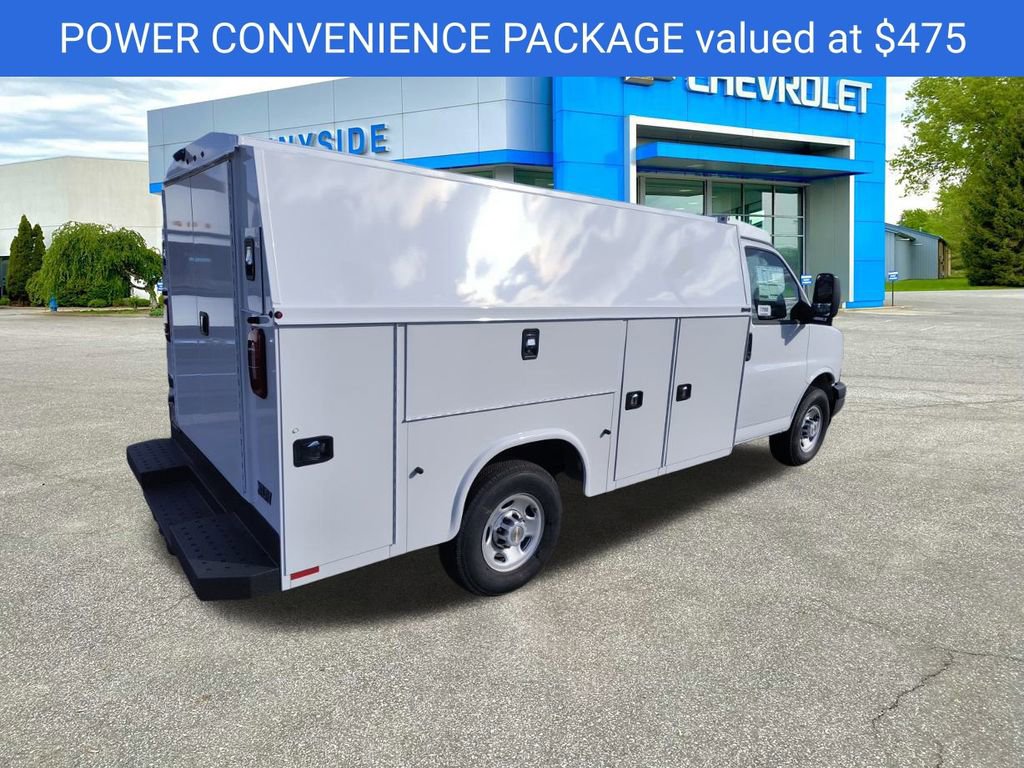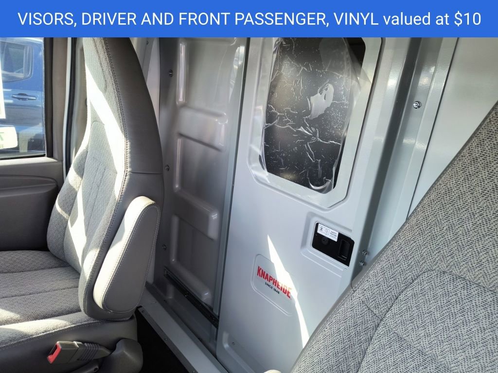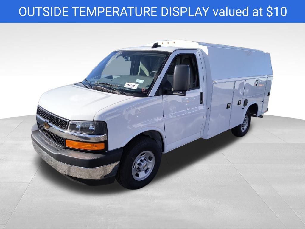 Summit White 2025 Chevrolet Express 3500 Work Van Cutaway RWD 8-Speed Automatic 6.6L V8 2 Speakers, 3.42 Rear Axle Ratio, 4-Wheel Disc Brakes, ABS brakes, Air Conditioning, AM/FM radio, Chrome Appearance Package, Chrome Grille, Cruise Control, Delay-off headlights, Driver & Front Passenger High-Back Bucket Seats, Driver & Front Passenger Vinyl Visors, Driver Convenience Package, Driver door bin, Driver's Seat Mounted Armrest, Dual front impact airbags, Dual front side impact airbags, Electronic Stability Control, Engine Cover Console w/Swing-Out Storage Bin, Exterior Parking Camera Rear, Front anti-roll bar, Front Bucket Seats, Front Chrome Bumper w/Step-Pad, Front wheel independent suspension, Fully automatic headlights, Heavy-Duty Locking Rear Differential, Inside Rearview Mirror w/Rr Vision Camera Display, Low tire pressure warning, Occupant sensing airbag, Outside Temperature Display, Overhead airbag, Passenger cancellable airbag, Passenger door bin, Passenger seat mounted armrest, Power Convenience Package, Power Door Locks w/Lock-Out Protection, Power steering, Power Windows, Preferred Equipment Group 1WT, Radio: AM/FM Stereo w/MP3 Player & Digital Clock, Reclining High-Back Bucket Seats w/Inboard Armrests, Remote Keyless Entry, Single Rear Wheel Configuration, Tachometer, Theft Alarm Notification, Tilt Steering Wheel, Traction control, Trailering Wire Harness, Trip computer, Variably intermittent wipers, Vinyl Seat Trim, Voltmeter, Wheels: 16 x 6.5 8-Lug Painted Steel HD (4).