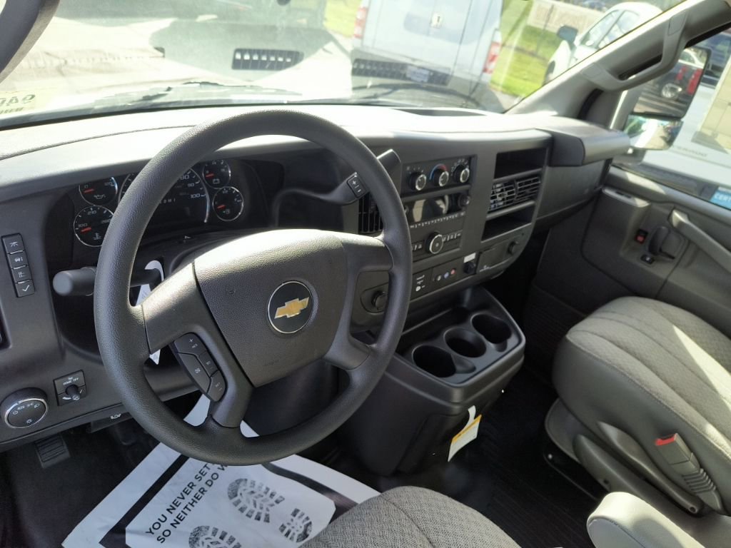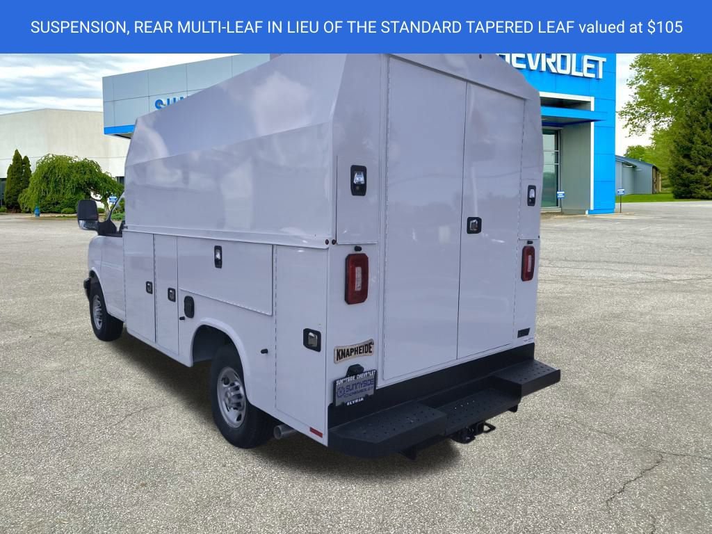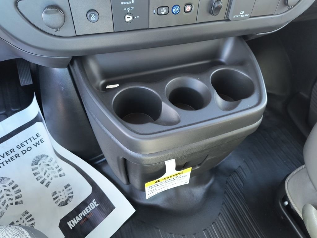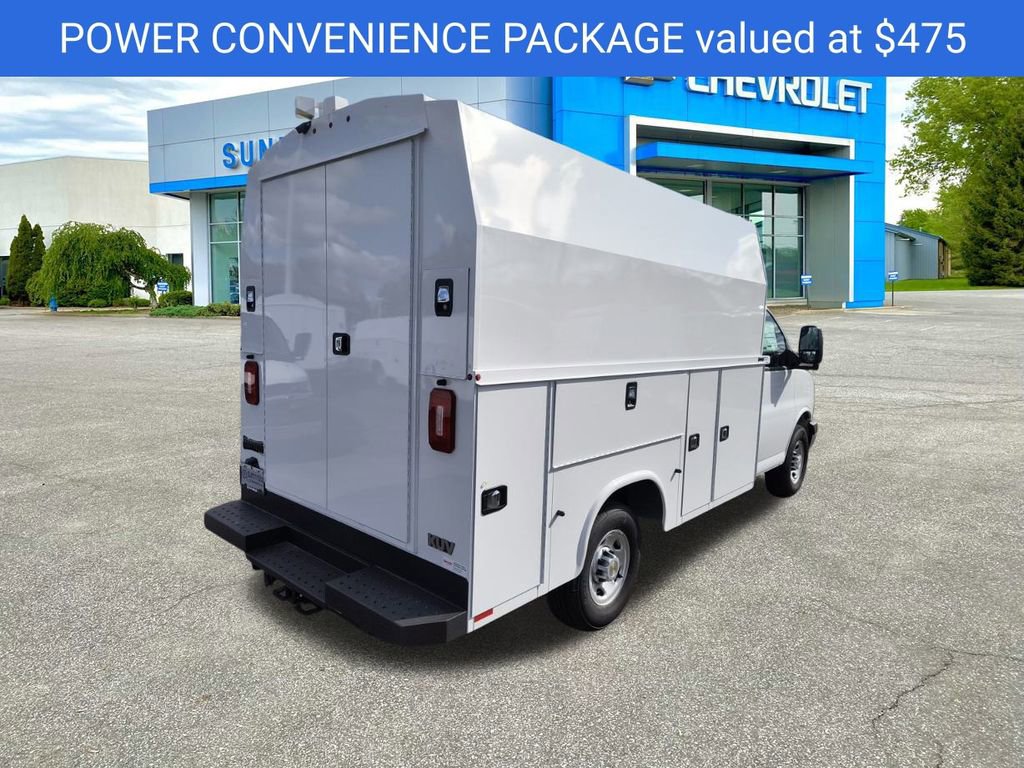 Summit White 2025 Chevrolet Express 3500 Work Van Cutaway RWD 8-Speed Automatic 6.6L V8 2 Speakers, 3.42 Rear Axle Ratio, 4-Wheel Disc Brakes, ABS brakes, Air Conditioning, AM/FM radio, Chrome Appearance Package, Chrome Grille, Cruise Control, Delay-off headlights, Driver & Front Passenger High-Back Bucket Seats, Driver & Front Passenger Vinyl Visors, Driver Convenience Package, Driver door bin, Driver's Seat Mounted Armrest, Dual front impact airbags, Dual front side impact airbags, Electronic Stability Control, Engine Cover Console w/Swing-Out Storage Bin, Exterior Parking Camera Rear, Front anti-roll bar, Front Bucket Seats, Front Chrome Bumper w/Step-Pad, Front wheel independent suspension, Fully automatic headlights, Heavy-Duty Locking Rear Differential, Inside Rearview Mirror w/Rr Vision Camera Display, Low tire pressure warning, Occupant sensing airbag, Outside Temperature Display, Overhead airbag, Passenger cancellable airbag, Passenger door bin, Passenger seat mounted armrest, Power Convenience Package, Power Door Locks w/Lock-Out Protection, Power steering, Power Windows, Preferred Equipment Group 1WT, Radio: AM/FM Stereo w/MP3 Player & Digital Clock, Reclining High-Back Bucket Seats w/Inboard Armrests, Remote Keyless Entry, Single Rear Wheel Configuration, Tachometer, Theft Alarm Notification, Tilt Steering Wheel, Traction control, Trailering Wire Harness, Trip computer, Variably intermittent wipers, Vinyl Seat Trim, Voltmeter, Wheels: 16 x 6.5 8-Lug Painted Steel HD (4).