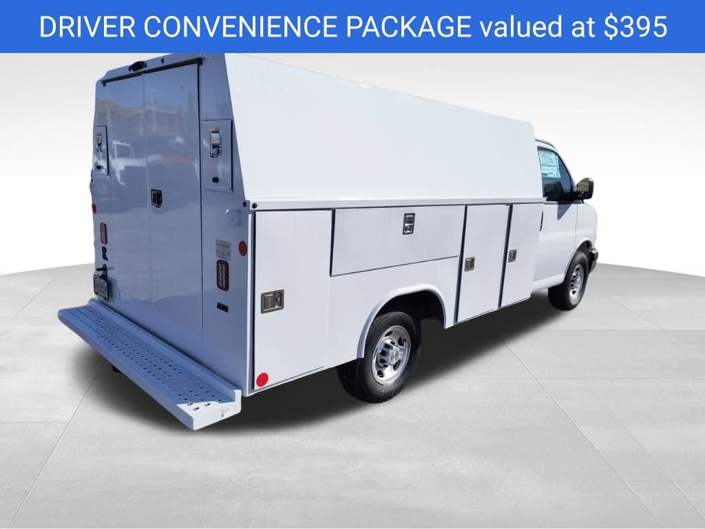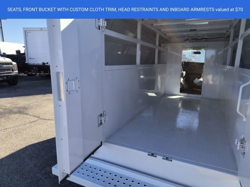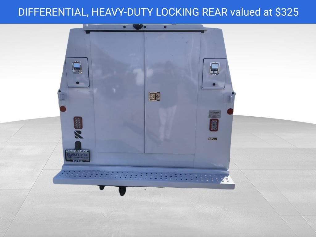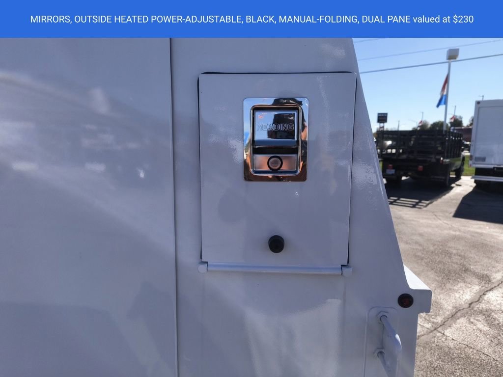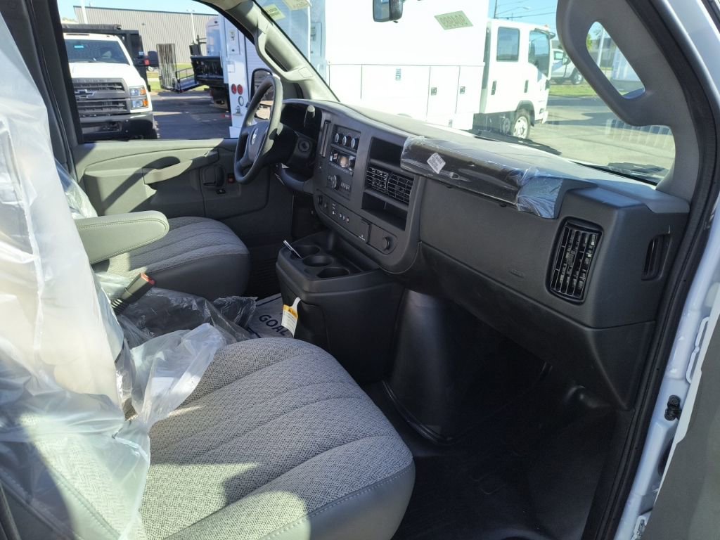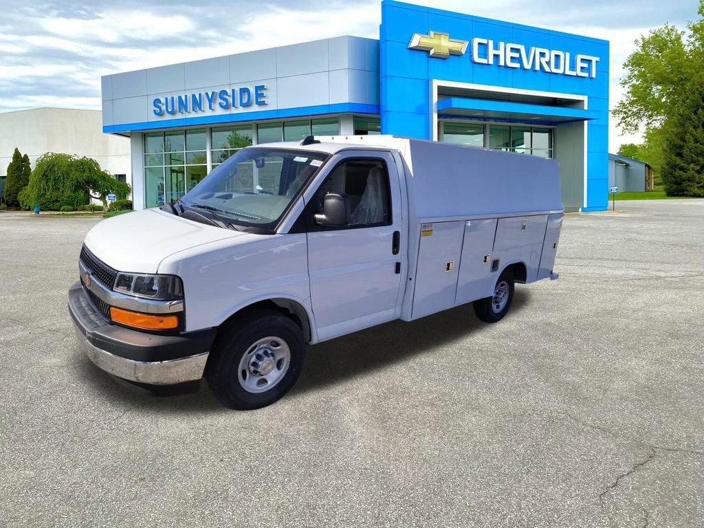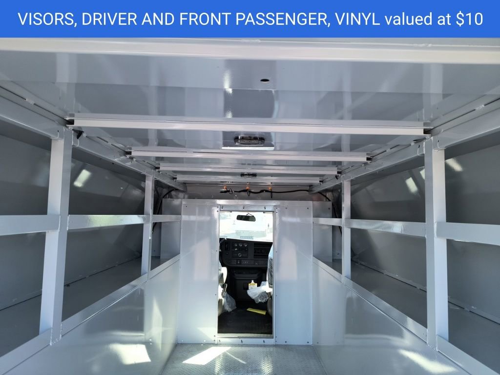 Summit White 2025 Chevrolet Express 3500 Work Van Cutaway Reading Aluminum Enclosed Service Body RWD 8-Speed Automatic 6.6L V8 3.42 Rear Axle Ratio, 4-Wheel Disc Brakes, ABS brakes, Air Conditioning, Black Power-Adjustable Heated Outside Mirrors, Bluetooth Phone Connection Kit (LPO), Chrome Appearance Package, Chrome Grille, Cruise Control, Delay-off headlights, Driver & Front Passenger High-Back Bucket Seats, Driver & Front Passenger Vinyl Visors, Driver Convenience Package, Driver door bin, Driver's Seat Mounted Armrest, Dual front impact airbags, Dual front side impact airbags, Electronic Stability Control, Engine Cover Console w/Swing-Out Storage Bin, Exterior Parking Camera Rear, Front anti-roll bar, Front Bucket Seats, Front Chrome Bumper w/Step-Pad, Front wheel independent suspension, Fully automatic headlights, Heavy-Duty Locking Rear Differential, Inside Rearview Mirror w/Rr Vision Camera Display, Low tire pressure warning, Occupant sensing airbag, Outside Temperature Display, Overhead airbag, Passenger door bin, Passenger seat mounted armrest, Power Convenience Package, Power Door Locks w/Lock-Out Protection, Power steering, Power Windows, Preferred Equipment Group 1WT, Radio: AM/FM Stereo w/MP3 Player & Digital Clock, Reclining High-Back Bucket Seats w/Inboard Armrests, Remote Keyless Entry, Single Rear Wheel Configuration, Theft Alarm Notification, Tilt Steering Wheel, Traction control, Trailering Wire Harness, Vinyl Seat Trim, Wheels: 16 x 6.5 8-Lug Painted Steel HD (4), 2 Speakers, AM/FM radio, Passenger cancellable airbag, Tachometer, Trip computer, Variably intermittent wipers, Voltmeter, 11'x57 High Aluminum Service Enclosed Body, 3.42 Rear Axle Ratio, 4-Wheel Disc Brakes, ABS brakes, Air Conditioning, Black Power-Adjustable Heated Outside Mirrors, Bluetooth Phone Connection Kit (LPO), Chrome Appearance Package, Chrome Grille, Cruise Control, Delay-off headlights, Driver & Front Passenger High-Back Bucket Seats, Driver & Front Passenger Vinyl Visors, Driver Convenience Package, Driver door bin, Driver's Seat Mounted Armrest, Dual front impact airbags, Dual front side impact airbags, Electronic Stability Control, Engine Cover Console w/Swing-Out Storage Bin, Exterior Parking Camera Rear, Front anti-roll bar, Front Bucket Seats, Front Chrome Bumper w/Step-Pad, Front wheel independent suspension, Fully automatic headlights, Heavy-Duty Locking Rear Differential, Inside Rearview Mirror w/Rr Vision Camera Display, Low tire pressure warning, Occupant sensing airbag, Outside Temperature Display, Overhead airbag, Passenger door bin, Passenger seat mounted armrest, Power Convenience Package, Power Door Locks w/Lock-Out Protection, Power steering, Power Windows, Preferred Equipment Group 1WT, Radio: AM/FM Stereo w/MP3 Player & Digital Clock, Reclining High-Back Bucket Seats w/Inboard Armrests, Remote Keyless Entry, Single Rear Wheel Configuration, Theft Alarm Notification, Tilt Steering Wheel, Traction control, Trailering Wire Harness, Vinyl Seat Trim, Wheels: 16 x 6.5 8-Lug Painted Steel HD (4).