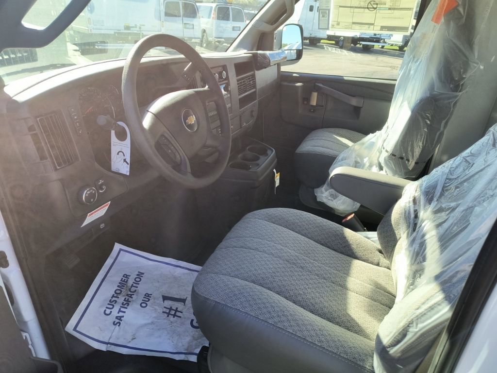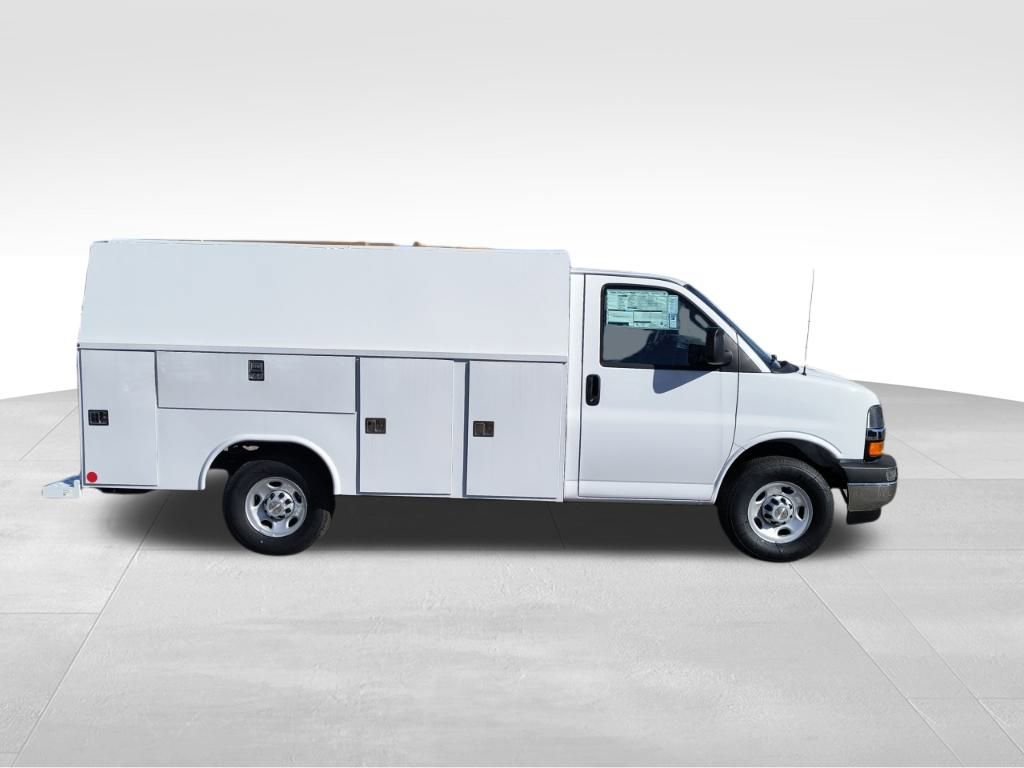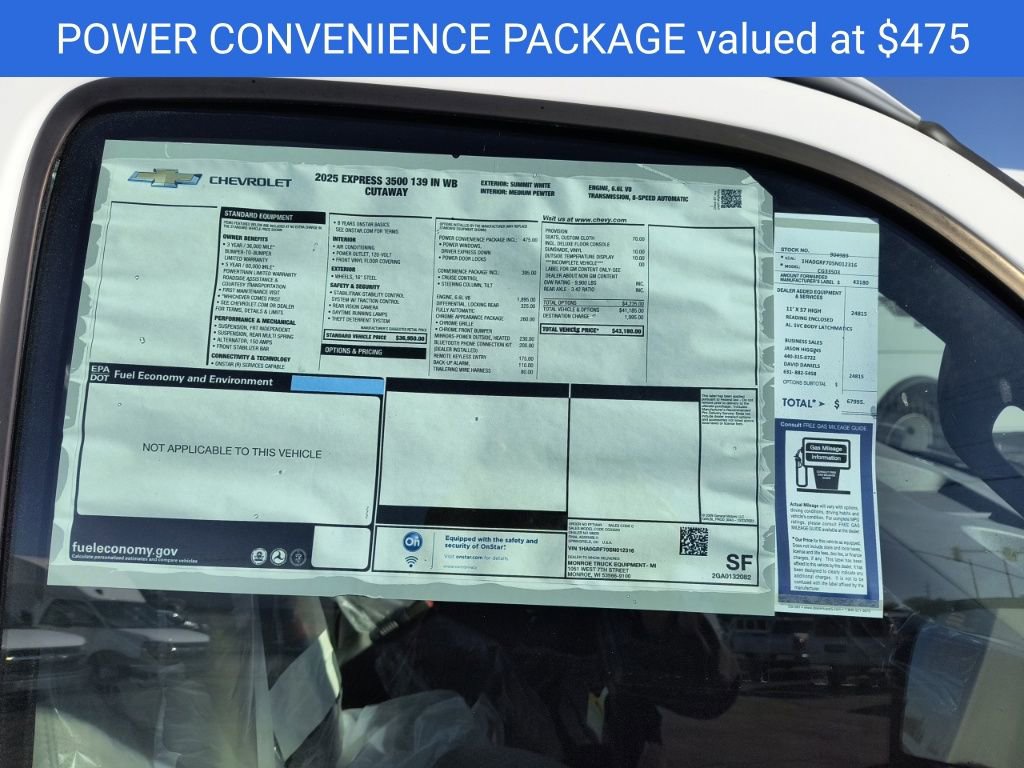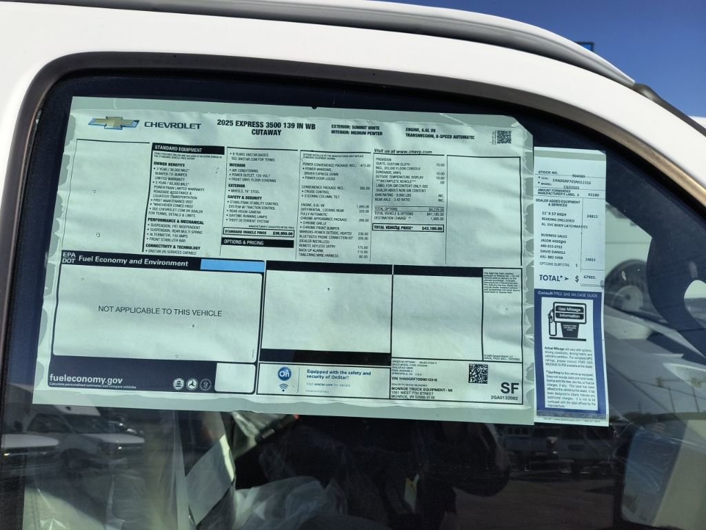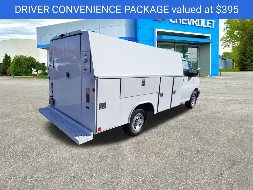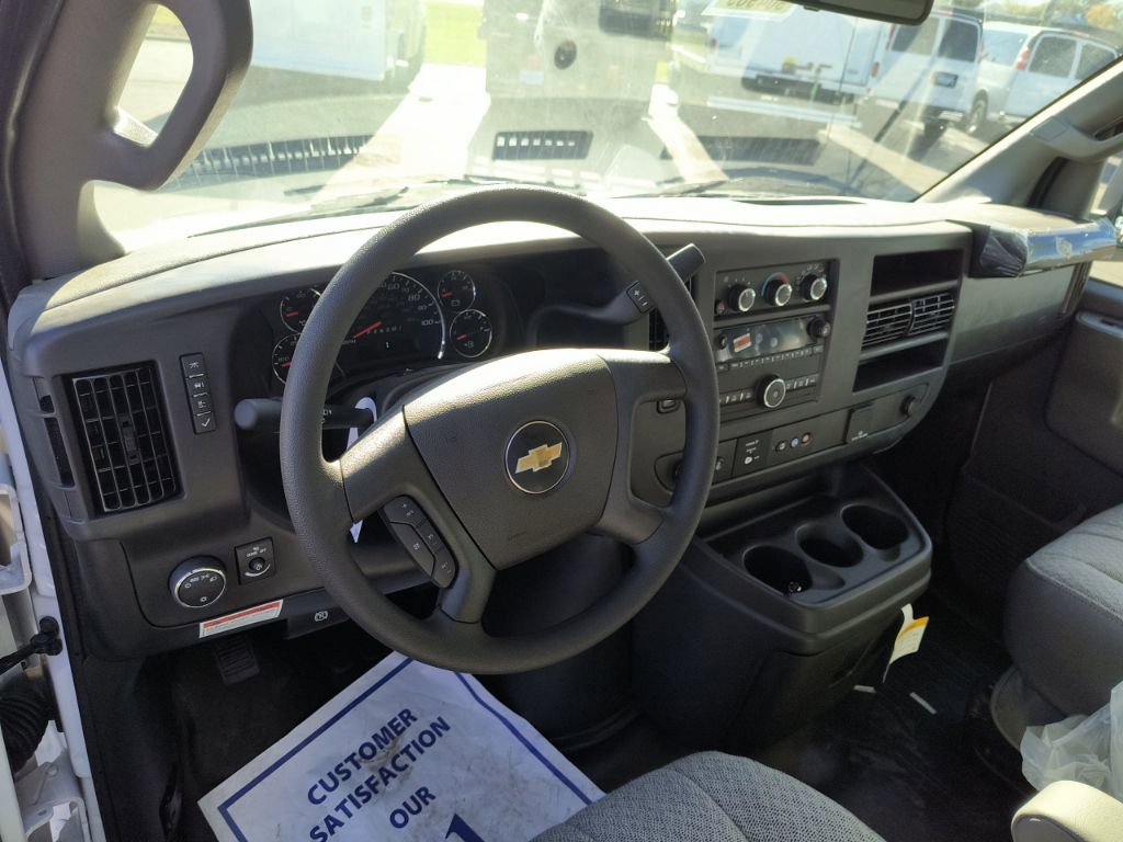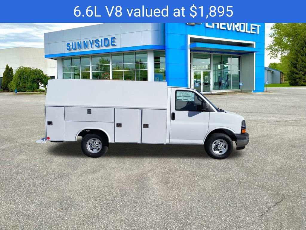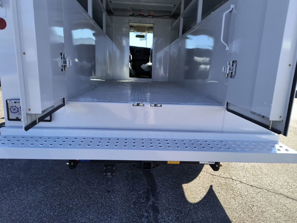 Summit White 2025 Chevrolet Express 3500 Work Van Cutaway Reading Aluminum Enclosed Service Body RWD 8-Speed Automatic 6.6L V8 3.42 Rear Axle Ratio, 4-Wheel Disc Brakes, ABS brakes, Air Conditioning, Black Power-Adjustable Heated Outside Mirrors, Bluetooth Phone Connection Kit (LPO), Chrome Appearance Package, Chrome Grille, Cruise Control, Delay-off headlights, Driver & Front Passenger High-Back Bucket Seats, Driver & Front Passenger Vinyl Visors, Driver Convenience Package, Driver door bin, Driver's Seat Mounted Armrest, Dual front impact airbags, Dual front side impact airbags, Electronic Stability Control, Engine Cover Console w/Swing-Out Storage Bin, Exterior Parking Camera Rear, Front anti-roll bar, Front Bucket Seats, Front Chrome Bumper w/Step-Pad, Front wheel independent suspension, Fully automatic headlights, Heavy-Duty Locking Rear Differential, Inside Rearview Mirror w/Rr Vision Camera Display, Low tire pressure warning, Occupant sensing airbag, Outside Temperature Display, Overhead airbag, Passenger door bin, Passenger seat mounted armrest, Power Convenience Package, Power Door Locks w/Lock-Out Protection, Power steering, Power Windows, Preferred Equipment Group 1WT, Radio: AM/FM Stereo w/MP3 Player & Digital Clock, Reclining High-Back Bucket Seats w/Inboard Armrests, Remote Keyless Entry, Single Rear Wheel Configuration, Theft Alarm Notification, Tilt Steering Wheel, Traction control, Trailering Wire Harness, Vinyl Seat Trim, Wheels: 16 x 6.5 8-Lug Painted Steel HD (4), 2 Speakers, AM/FM radio, Passenger cancellable airbag, Tachometer, Trip computer, Variably intermittent wipers, Voltmeter, 11'x57 High Aluminum Service Enclosed Body, 3.42 Rear Axle Ratio, 4-Wheel Disc Brakes, ABS brakes, Air Conditioning, Black Power-Adjustable Heated Outside Mirrors, Bluetooth Phone Connection Kit (LPO), Chrome Appearance Package, Chrome Grille, Cruise Control, Delay-off headlights, Driver & Front Passenger High-Back Bucket Seats, Driver & Front Passenger Vinyl Visors, Driver Convenience Package, Driver door bin, Driver's Seat Mounted Armrest, Dual front impact airbags, Dual front side impact airbags, Electronic Stability Control, Engine Cover Console w/Swing-Out Storage Bin, Exterior Parking Camera Rear, Front anti-roll bar, Front Bucket Seats, Front Chrome Bumper w/Step-Pad, Front wheel independent suspension, Fully automatic headlights, Heavy-Duty Locking Rear Differential, Inside Rearview Mirror w/Rr Vision Camera Display, Low tire pressure warning, Occupant sensing airbag, Outside Temperature Display, Overhead airbag, Passenger door bin, Passenger seat mounted armrest, Power Convenience Package, Power Door Locks w/Lock-Out Protection, Power steering, Power Windows, Preferred Equipment Group 1WT, Radio: AM/FM Stereo w/MP3 Player & Digital Clock, Reclining High-Back Bucket Seats w/Inboard Armrests, Remote Keyless Entry, Single Rear Wheel Configuration, Theft Alarm Notification, Tilt Steering Wheel, Traction control, Trailering Wire Harness, Vinyl Seat Trim, Wheels: 16 x 6.5 8-Lug Painted Steel HD (4).