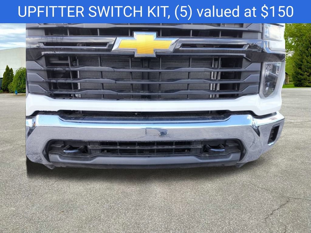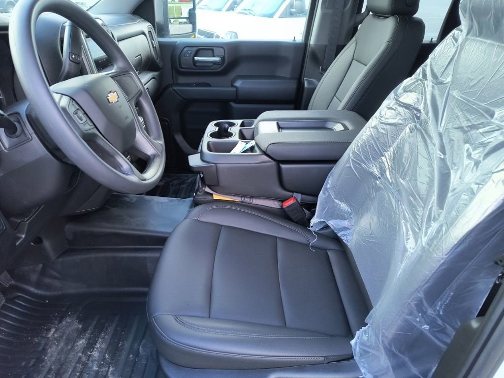 Summit White 2025 Chevrolet Silverado 2500HD Work Truck 4WD 10-Speed Automatic 6.6L V8 10-Speed Automatic, 4WD, Jet Black Vinyl, 120-Volt Interior Power Outlet, 17 Machined Aluminum Wheels, 170 Amp Alternator, 2-Speed Electronic Shift Transfer Case, 220 Amp Alternator, 3.5 Diagonal Monochromatic Display DIC, 3.73 Rear Axle Ratio, 4-Wheel Disc Brakes, 6 Speakers, 6-Speaker Audio System, 700 Cold-Cranking Amps/70 Amp-hr Auxiliary Battery, 720 Cold-Cranking Amps Heavy-Duty Battery, ABS brakes, Air Conditioning, AM/FM radio, Apple CarPlay/Android Auto, Auto High-beam Headlights, Auto-Dimming Inside Rear-View Mirror, Black Front Bumper, Black Mirror Caps, Black Rear Bumper, Bluetooth For Phone, Brake assist, Chevrolet Connected Access Capable, Chrome Front Bumper, Compass, Deep-Tinted Glass, Delay-off headlights, Driver door bin, Dual front impact airbags, Dual front side impact airbags, Durabed Pickup Bed, Electric Rear-Window Defogger, Electronic Cruise Control w/Set & Resume Speed, Electronic Stability Control, Emergency communication system: OnStar, EZ Lift Power Lock & Release Tailgate, Front 40/20/40 Split-Bench Seats w/Lockable Storage, Front anti-roll bar, Front Center Armrest w/Storage, Front License Plate Kit, Front reading lights, Front wheel independent suspension, Fully automatic headlights, HD Rear Vision Camera, Heated & Auto-Dimming Vertical Trailering Mirrors, Heated Vertical Trailering Mirrors, High-Visibility Vertical Trailering Mirrors, Illuminated entry, LED Smoked Amber Roof Marker Lamps, Locking Tailgate, Low tire pressure warning, Manual Tailgate Function w/No EZ Lift, Manual Tilt-Wheel Steering Column, Occupant sensing airbag, OnStar Services Capable, Outside temperature display, Overhead airbag, Overhead console, Panic alarm, Passenger door bin, Passenger vanity mirror, Power Door Locks, Power Front Windows w/Driver Express Up/Down, Power Rear Windows w/Express Down, Power steering, Power windows, Preferred Equipment Group 1WT, Premium audio system: Chevrolet Infotainment 3, Push Button Start, Radio: Chevrolet Infotainment 3 System, Rear 60/40 Folding Bench Seat (Folds Up), Rear reading lights, Rear step bumper, Remote Keyless Entry, Remote keyless entry, Rubberized-Vinyl Floor Covering, SiriusXM Trial Subscription, Snow Plow Prep/Camper Package, Solar Absorbing Tinted Glass, Speed control, Split folding rear seat, Standard Tailgate, Suspension Package, Tachometer, Tilt steering wheel, Traction control, Trip computer, Upfitter Switch Kit (5), Variably intermittent wipers, Vinyl Seat Trim, Voltmeter, Wheels: 17 Silver Painted Steel, Wi-Fi Hotspot Capable, Wireless Phone Projection, WT Convenience Package, 10-Speed Automatic, 4WD, Jet Black Vinyl.