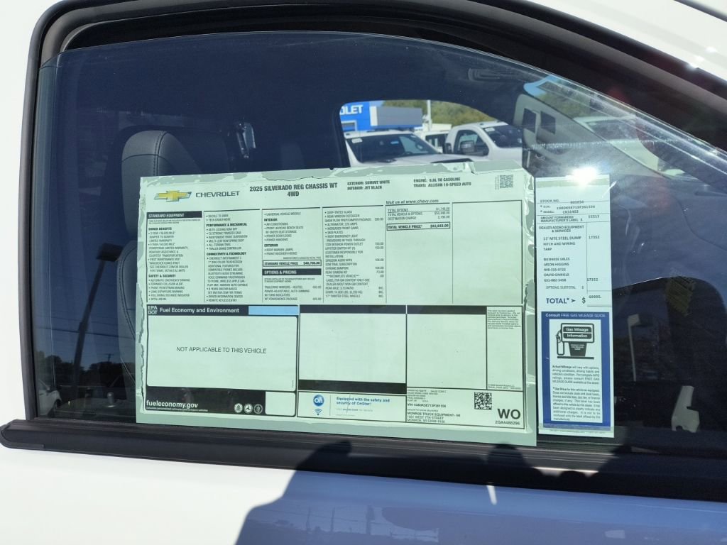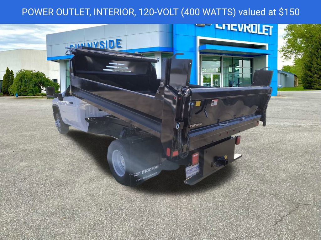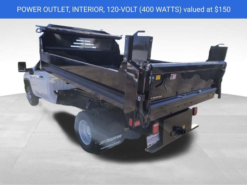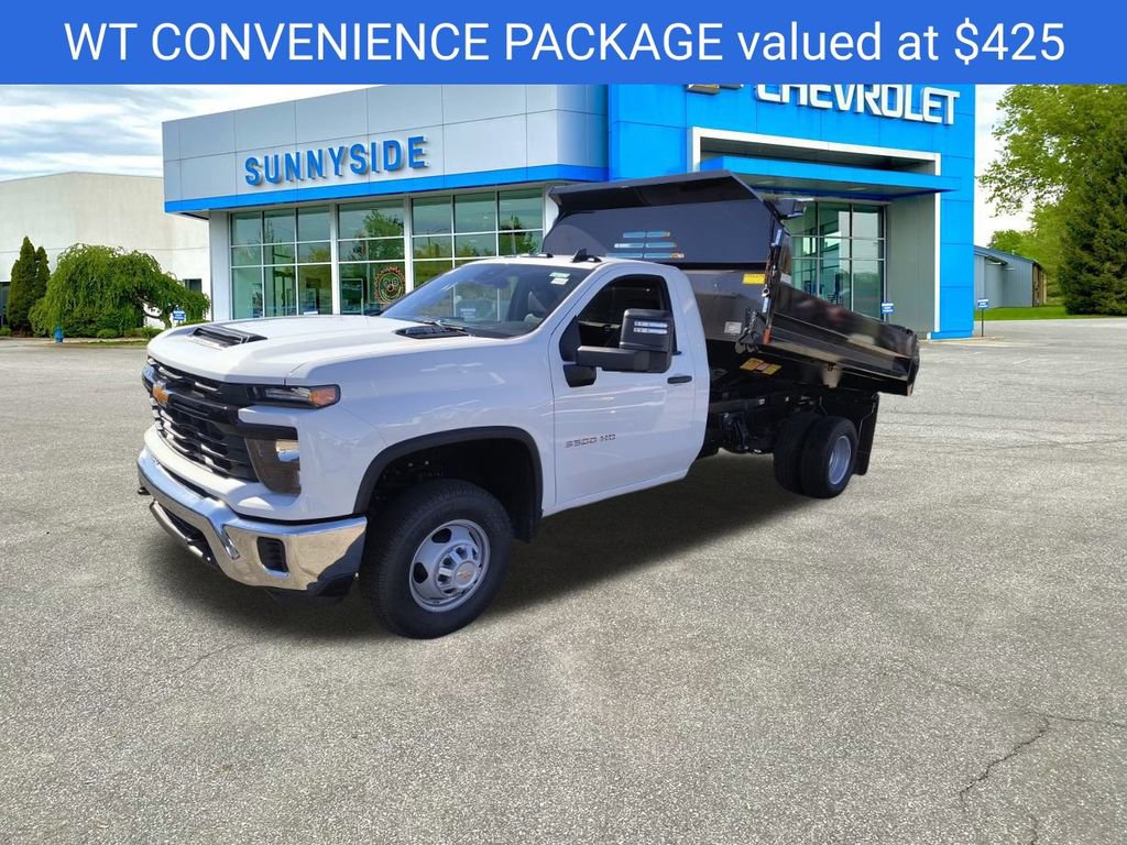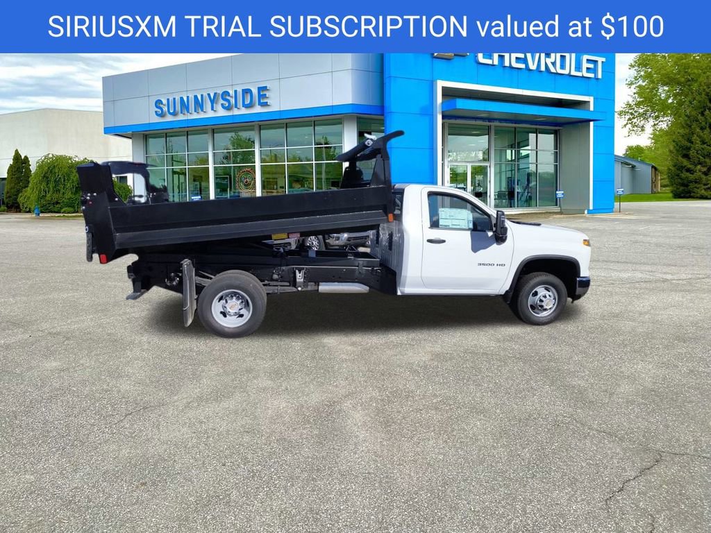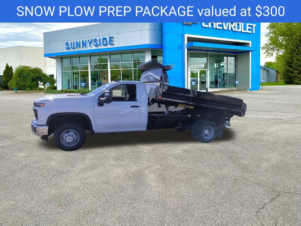 Summit White 2025 Chevrolet Silverado 3500HD 4WD Dump Truck 4WD 10-Speed Automatic 6.6L V8 10-Speed Automatic, 4WD, Jet Black Vinyl, ABS brakes, Compass, Electronic Stability Control, Illuminated entry, Low tire pressure warning, Remote keyless entry, Traction control.