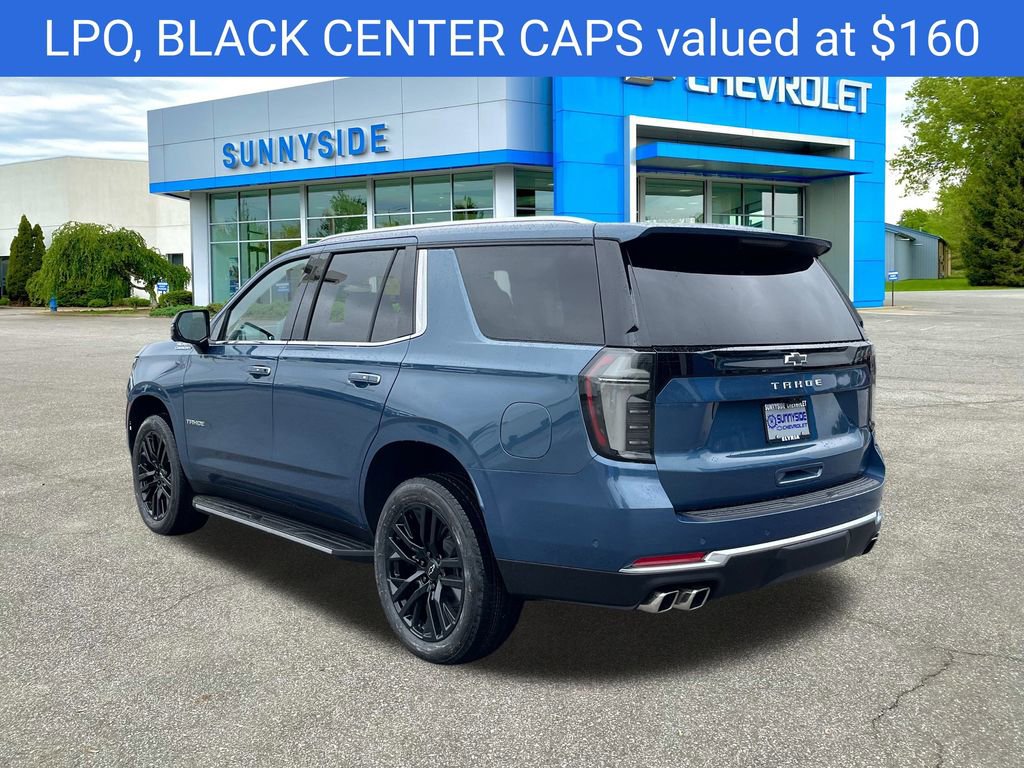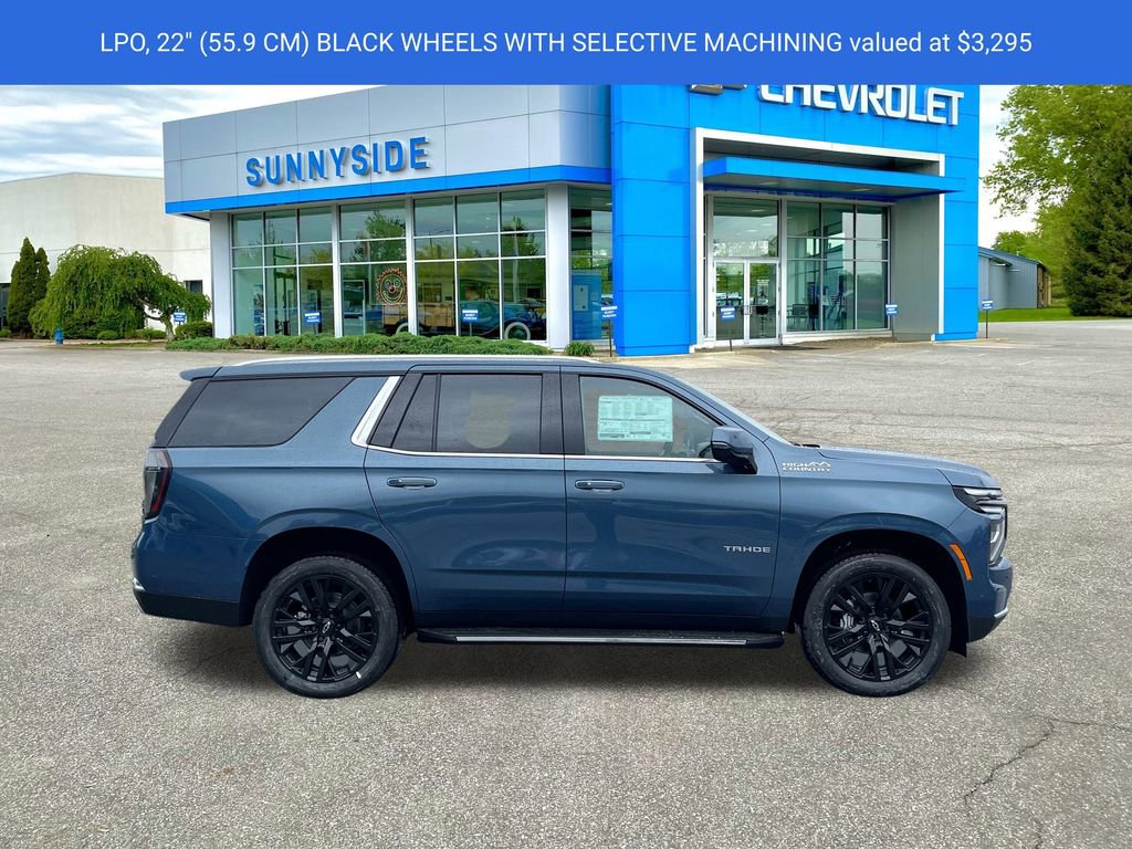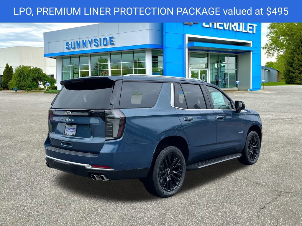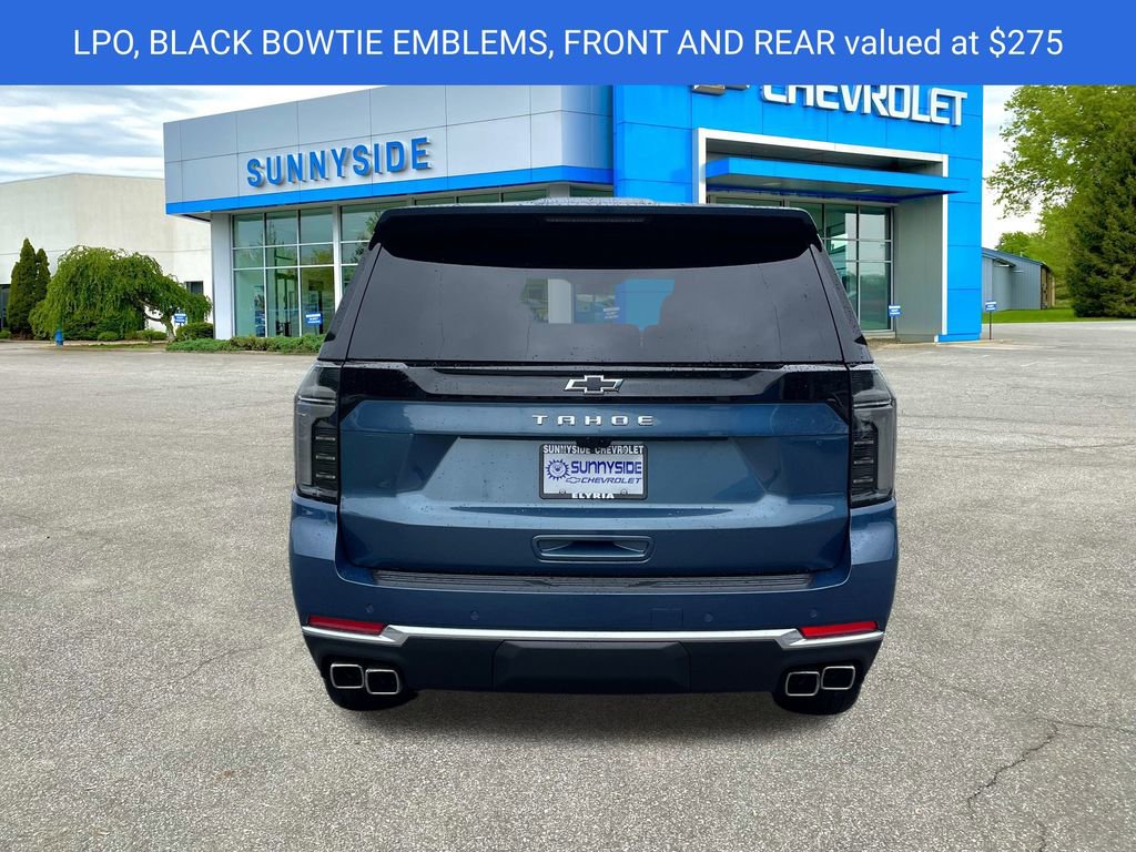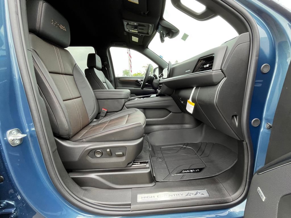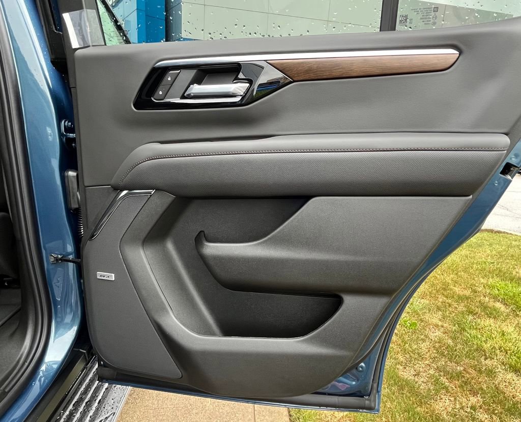 Lakeshore Blue Metallic 2025 Chevrolet Tahoe High Country 4WD 10-Speed Automatic with Overdrive EcoTec3 6.2L V8 4WD, Black Leather, 10 Speakers, 15 Diagonal Multi-Color Head-Up Display, 1st & 2nd Row Color-Keyed Carpeted Floor Mats, 1st & 2nd Rows Premium Floor Liners (LPO), 3-Spoke Wrapped Steering Wheel, 3.23 Rear Axle Ratio, 3rd Row 60/40 Power-Folding Split-Bench Seat, 3rd Row All-Weather Floor Liners (LPO), 3rd row seats: split-bench, 4-Way Power Driver Lumbar Seat Adjuster, 4-Way Power Front Passenger Lumbar Seat Adjuster, 4-Wheel Disc Brakes, 8-Way Power Driver Seat Adjuster, 8-Way Power Front Passenger Seat Adjuster, ABS brakes, Adaptive suspension, Air Conditioning, All-Weather Cargo Mat (LPO), Alloy wheels, AM/FM radio: SiriusXM with 360L, Apple CarPlay/Android Auto, Auto High-beam Headlights, Auto-dimming door mirrors, Auto-dimming Rear-View mirror, Auto-leveling suspension, Automatic temperature control, Black Center Caps (LPO), Bose 10-Speaker Centerpoint Surround Audio Sys Ft, Brake assist, Bright Front & Rear Door Sill Plates, Bumpers: body-color, Chrome Door Handles w/Body-Color Strip, Color-Keyed Carpeting Floor Covering, Compass, Delay-off headlights, Driver & Front Passenger Heated & Ventilated Seats, Driver door bin, Driver vanity mirror, Dual Exhaust System, Dual front impact airbags, Dual front side impact airbags, Electronic Stability Control, Emergency communication system: OnStar and Chevrolet connected services capable, Exterior Parking Camera Rear, Floor Console, Four wheel independent suspension, Front & Rear Black Bowtie Emblems (LPO), Front anti-roll bar, Front Bucket Seats, Front Center Armrest, Front dual zone A/C, Front fog lights, Front LED Fog Lamps, Front Pedestrian & Bicyclist Braking, Front reading lights, Frontal Driver & Outboard Passenger Airbags, Fully automatic headlights, Garage door transmitter, Heads-Up Display, Heated 2nd Row Outboard Seats, Heated door mirrors, Heated Driver & Front Passenger Seats, Heated front seats, Heated rear seats, Heated Steering Wheel, Heated steering wheel, Illuminated entry, Inside Rearview Auto-Dimming Rear Camera Mirror, LED Headlamps w/LED Daytime Running Lamps, LED Tail Lamps, Low tire pressure warning, Magnetic Ride Control Suspension, Memory seat, Memory Settings, Navigation system: Google built-in compatibility (select service plan required, terms and limitations apply), Occupant sensing airbag, Outside Heated Power-Adjustable Mirrors, Outside temperature display, Overhead airbag, Overhead console, Panic alarm, Passenger door bin, Passenger vanity mirror, Perforated Leather Seat Trim, Power door mirrors, Power driver seat, Power Liftgate, Power passenger seat, Power Release 2nd Row Bucket Seats, Power steering, Power Tilt & Telescopic Steering Column, Power windows, Preferred Equipment Group 3LZ, Premium audio system: Chevrolet Infotainment 3 Premium, Premium Liner Protection Package (LPO), Radio data system, Radio: 17.7 Diagonal Advanced Color LCD Display, Rain sensing wipers, Rear air conditioning, Rear anti-roll bar, Rear Power Liftgate, Rear reading lights, Rear window defroster, Rear window wiper, Remote keyless entry, Remote Start, Security system, Set of 4 Wheel Locks (LPO), SiriusXM w/360L Trial Subscription, Speed control, Speed-sensing steering, Split folding rear seat, Spoiler, Steering wheel memory, Steering wheel mounted audio controls, Tachometer, Telescoping steering wheel, Tilt steering wheel, Traction control, Trip computer, Turn signal indicator mirrors, Universal Home Remote, Variably intermittent wipers, Ventilated front seats, Voltmeter, Wheels: 22 Black w/Selective Machining (LPO) (DISC), Wheels: 22 x 9 Bright Machined Aluminum, Wheels: 22 x 9 Steel Interim (LPO), Wireless Phone Charging, 4WD, Black Leather.