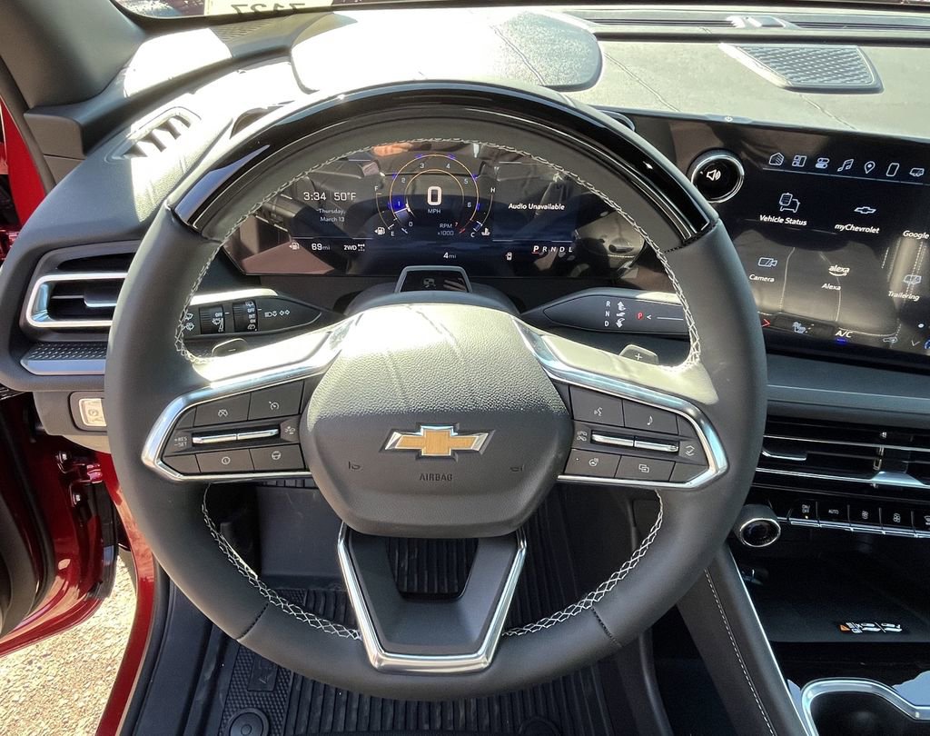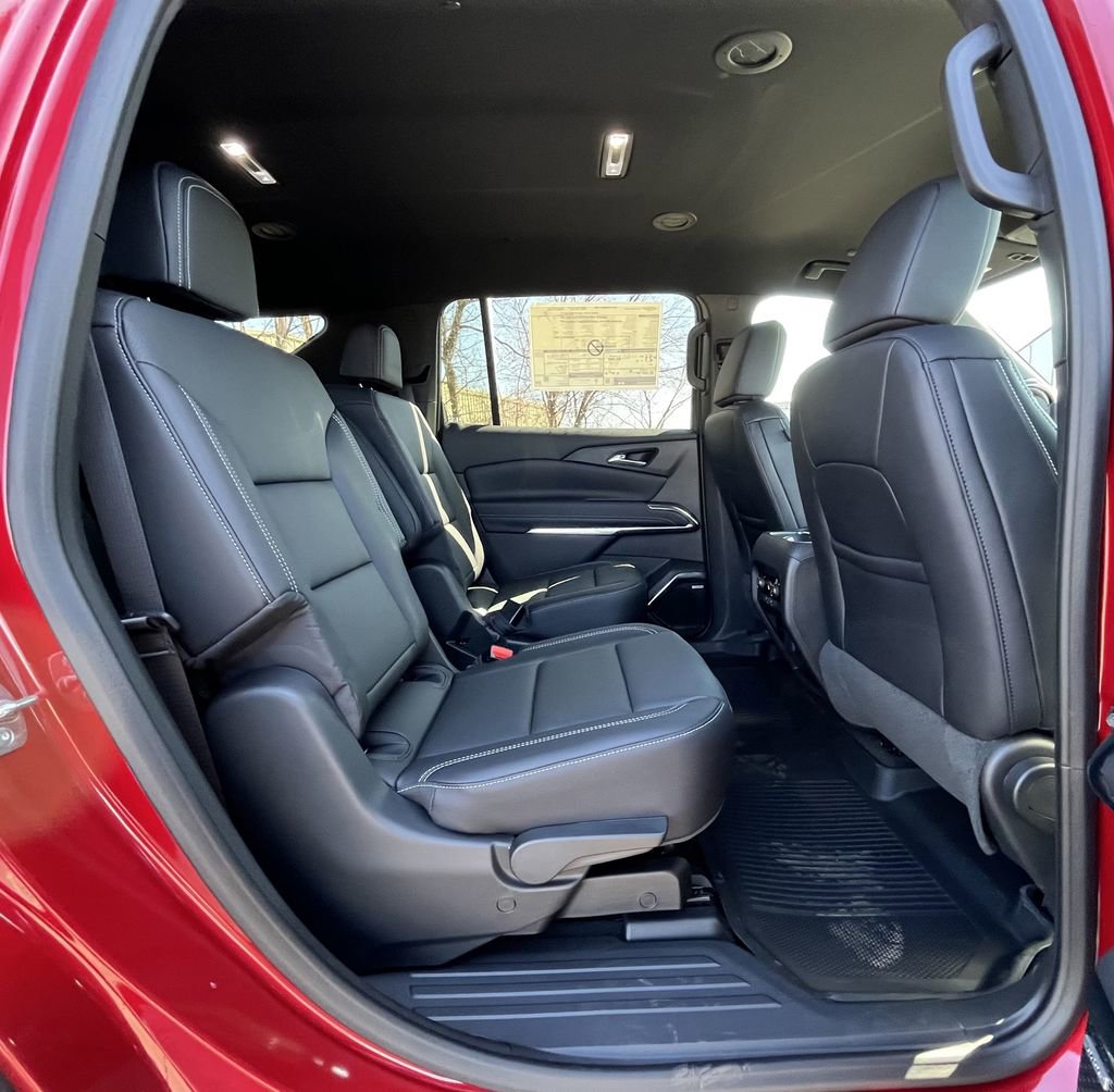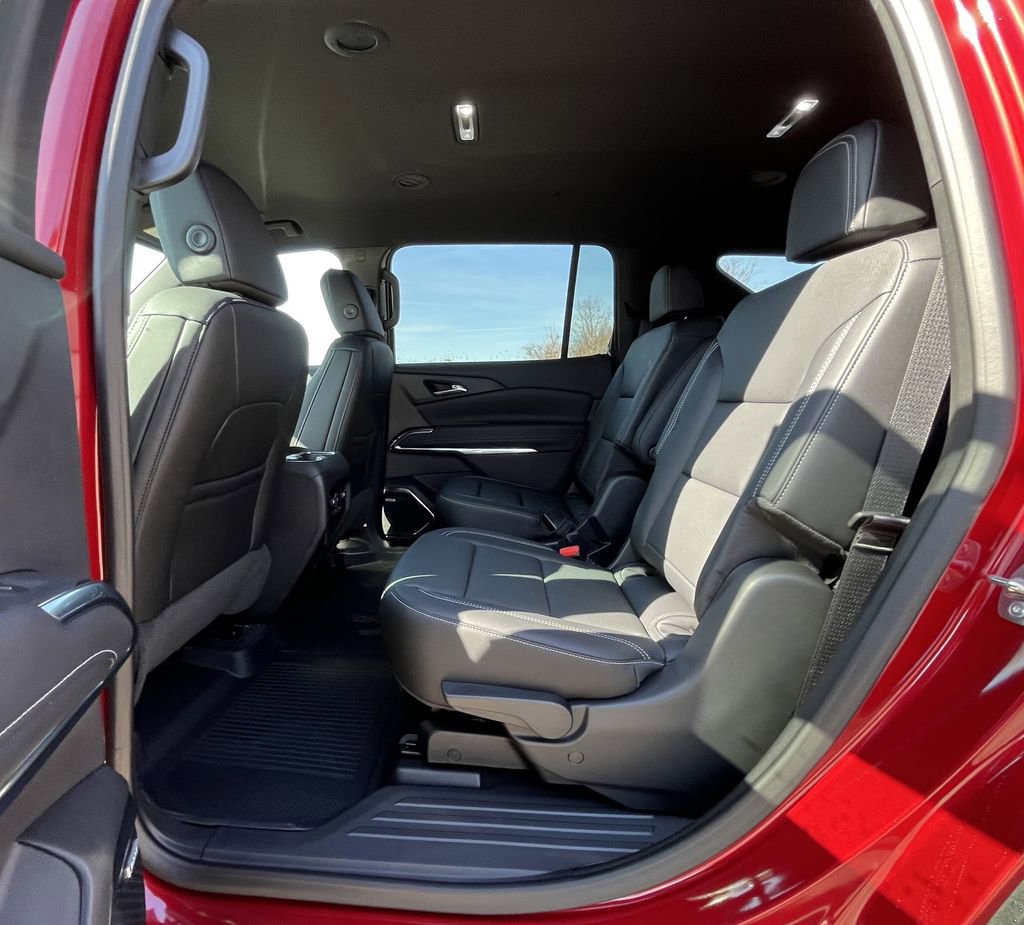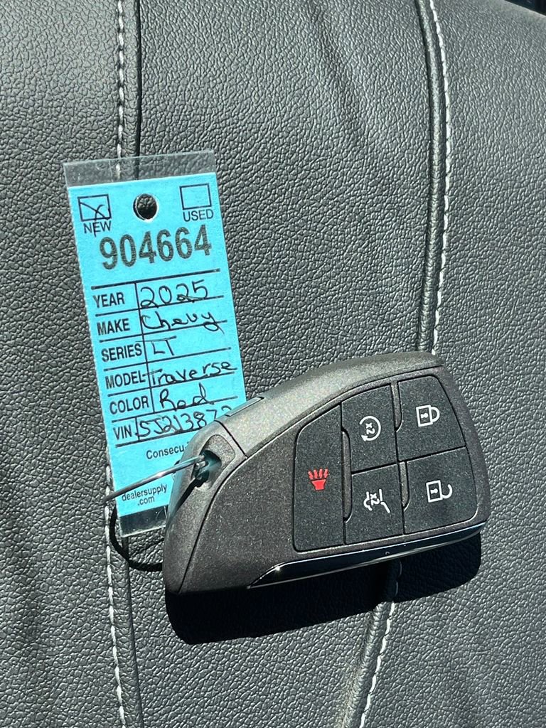 Radiant Red Tintcoat 2025 Chevrolet Traverse LT 2LT AWD 8-Speed Automatic 2.5L DOHC AWD, 1st & 2nd Row All-Weather Floor Liners (LPO), 3 Years of Super Cruise/Digital Services by OnStar, 3rd Row All-Weather Floor Liner (LPO), 3rd row seats: split-bench, 4-Way Manual Front Passenger Seat Adjuster, 4-Wheel Disc Brakes, 6 Speakers, 6-Speaker Audio System Feature, 8-Way Power Driver Seat Adjuster, ABS brakes, Air Conditioning, Alloy wheels, AM/FM radio: SiriusXM with 360L, Apple CarPlay/Android Auto, Auto High-beam Headlights, Automatic temperature control, Black Bowtie (LPO), Bose Premium 12-Speaker Audio System Feature, Brake assist, Bumpers: body-color, Child-Seat-Sensing Airbag, Compass, Delay-off headlights, Driver Attention Assist, Driver Confidence Package, Driver door bin, Driver vanity mirror, Dual front impact airbags, Dual front side impact airbags, Electronic Stability Control, Emergency communication system: OnStar, Enhanced Automatic Parking Assist, Enhanced Driving Package, Floor Liner Package (LPO), Four wheel independent suspension, Front anti-roll bar, Front Bucket Seats, Front Center Armrest, Front dual zone A/C, Front reading lights, Fully automatic headlights, HD Surround Vision, Heated door mirrors, Heated front seats, Heated steering wheel, Illuminated entry, Low tire pressure warning, Navigation System, Occupant sensing airbag, Outside temperature display, Overhead airbag, Overhead console, Panic alarm, Passenger door bin, Passenger vanity mirror, Power door mirrors, Power driver seat, Power Liftgate, Power Outlet, Power steering, Power windows, Preferred Equipment Group 2LT, Premium Cloth Seat Trim, Radio data system, Radio: Audio System w/17.7 Diagonal Display, Rear air conditioning, Rear anti-roll bar, Rear Pedestrian Alert, Rear reading lights, Rear window defroster, Rear window wiper, Remote keyless entry, Security system, SiriusXM w/360L Trial Subscription, Speed control, Speed-sensing steering, Spoiler, Steering wheel mounted audio controls, Super Cruise, Tachometer, Telescoping steering wheel, Tilt steering wheel, Traction control, Traffic Sign Recognition, Trip computer, Turn signal indicator mirrors, Variably intermittent wipers, Voltmeter, Wheels: 18 Grazen Metallic Machined-Face Aluminum, AWD.