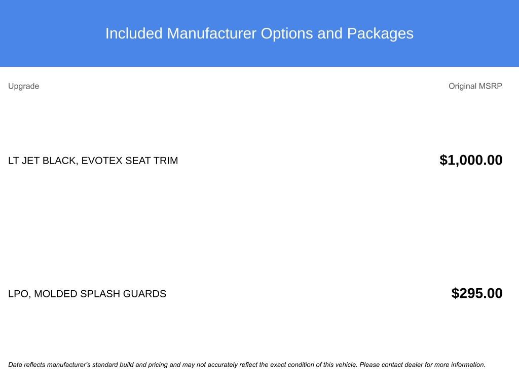 - LT PREFERRED EQUIPMENT GROUP Includes standard equipment