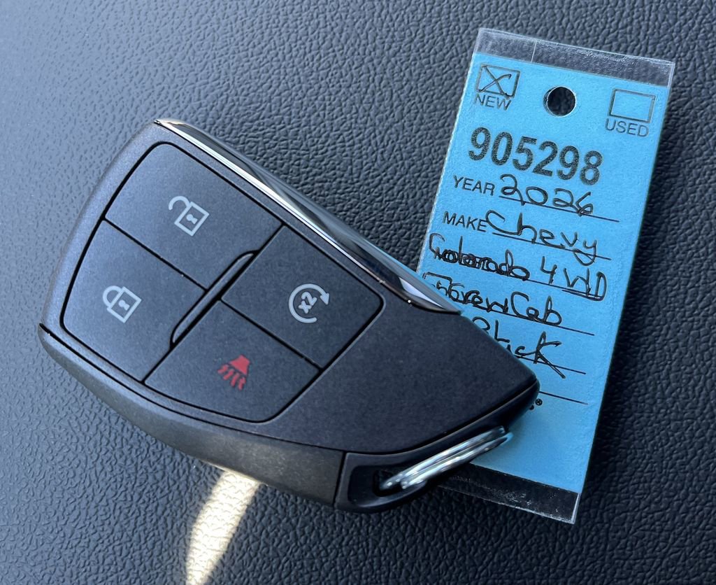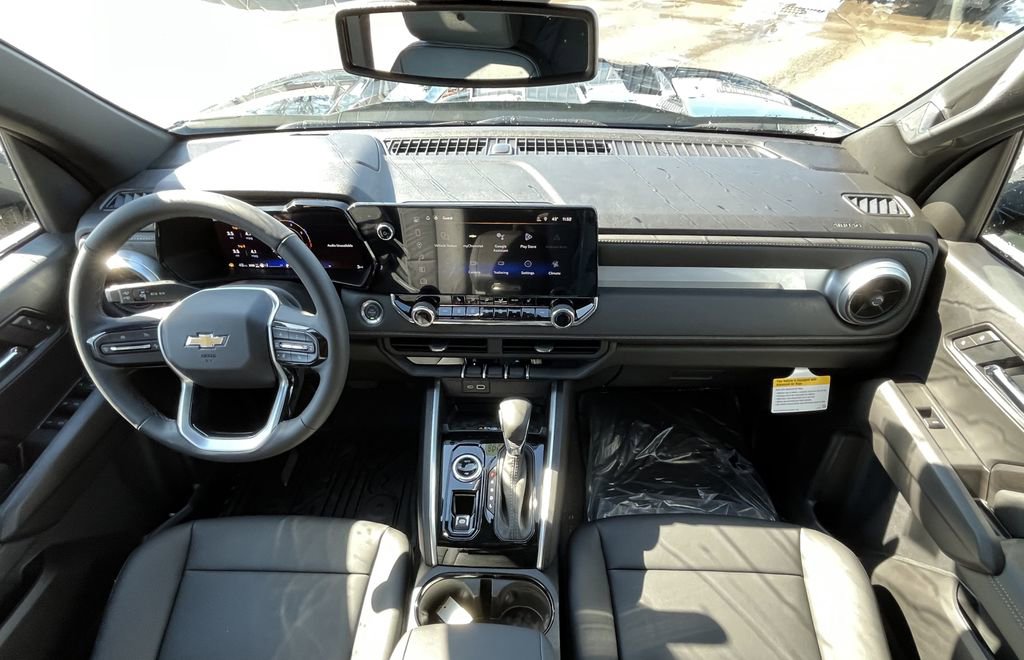 Black 2026 Chevrolet Colorado LT 4WD 8-Speed Automatic 2.7L I4 Turbocharged DOHC 16V LEV3-ULEV50 310hp 4WD, 120-Volt Bed-Mounted Power Outlet, 120-Volt Power Outlet, 1st and 2nd Row All-Weather Floor Liner, 220 Amp Alternator, 3.42 Rear Axle Ratio, 4-Way Manual Passenger Seat Adjuster, 4-Wheel Disc Brakes, 6 Speakers, 6-Speaker Audio System Feature, 8-Way Power Driver Seat Adjuster, ABS brakes, Adaptive Cruise Control, Advanced Trailering Package, Air Conditioning, Alloy wheels, AM/FM radio: SiriusXM with 360L, Apple CarPlay/Android Auto, Auto High-beam Headlights, Auto-dimming Rear-View mirror, Automatic Emergency Braking, Automatic Locking Rear Differential, Automatic temperature control, Bedliner with Integral Storage Compartments, Blind Zone Steering Assist with Trailering, Brake assist, Bumpers: body-color, Chevy Safety Assist, Cloth Seat Trim, Compass, Delay-off headlights, Driver and Front Passenger Heated Seats, Driver door bin, Driver Seatback Map Pocket, Driver vanity mirror, Dual front impact airbags, Dual front side impact airbags, Dual Rear USB Ports (charge Only), Electronic Stability Control, Emergency communication system: OnStar, Evotex Seat Trim, Following Distance Indicator, Forward Collision Alert, Front anti-roll bar, Front Bucket Seats, Front Center Armrest, Front dual zone A/C, Front LED Fog Lamps, Front Passenger Seatback Map Pocket, Front Pedestrian and Bicyclist Braking, Front reading lights, Front wheel independent suspension, HD Surround Vision, Heated door mirrors, Heated front seats, Heated Steering Wheel, Heavy-Duty Trailering Package, Illuminated entry, Integrated Trailer Brake Controller, IntelliBeam Automatic High Beam on/Off, Lane Keep Assist with Lane Departure Warning, LED Daytime Running Lamps, LED Headlamps, LED Stop Tail Lamp, Low tire pressure warning, LT Convenience Package, Navigation System, Occupant sensing airbag, Outside temperature display, Overhead airbag, Overhead console, Panic alarm, Passenger door bin, Passenger vanity mirror, Power door mirrors, Power Driver Lumbar Control Seat Adjuster, Power driver seat, Power steering, Power windows, Preferred Equipment Group 4LT, Radio data system, Radio: 11.3 Diagonal Advanced Color LCD Display, Rear Center Armrest, Rear Pedestrian Alert, Rear reading lights, Rear step bumper, Rear window defroster, Remote keyless entry, Security system, SiriusXM with 360L Trial Subscription, Speed control, Speed-sensing steering, Split folding rear seat, Steering Wheel Mounted Audio Controls, Steering wheel mounted audio controls, Tachometer, Technology Package, Telescoping steering wheel, Tilt steering wheel, Traction control, Trailering App, Trip computer, Variably intermittent wipers, Wheels: 17 x 8 Argent Metallic Aluminum, Wireless Phone Charging, Wireless Phone Projection, 4WD.