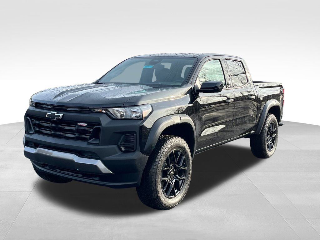 Black 2026 Chevrolet Colorado Trail Boss 4WD 8-Speed Automatic 2.7L I4 Turbocharged DOHC 16V LEV3-ULEV50 310hp 4WD, 3.42 Rear Axle Ratio, 4-Way Manual Passenger Seat Adjuster, 4-Wheel Disc Brakes, 6 Speakers, 6-Speaker Audio System Feature, 6-Way Manual Driver Seat Adjuster, ABS brakes, Air Conditioning, Alloy wheels, AM/FM radio: SiriusXM with 360L, Apple CarPlay/Android Auto, Auto High-beam Headlights, Automatic Emergency Braking, Automatic temperature control, Brake assist, Chevy Safety Assist, Cloth Seat Trim, Compass, Delay-off headlights, Driver door bin, Driver vanity mirror, Dual front impact airbags, Dual front side impact airbags, Electronic Stability Control, Emergency communication system: OnStar, Following Distance Indicator, Forward Collision Alert, Front anti-roll bar, Front Bucket Seats, Front Center Armrest, Front dual zone A/C, Front Pedestrian and Bicyclist Braking, Front wheel independent suspension, Heated door mirrors, Illuminated entry, IntelliBeam Automatic High Beam on/Off, Lane Keep Assist with Lane Departure Warning, Low tire pressure warning, Navigation System, Occupant sensing airbag, Outside temperature display, Overhead airbag, Overhead console, Panic alarm, Passenger door bin, Passenger vanity mirror, Power door mirrors, Power steering, Power windows, Radio data system, Radio: 11.3 Diagonal Advanced Color LCD Display, Rear reading lights, Rear step bumper, Rear window defroster, Remote keyless entry, Security system, SiriusXM with 360L Trial Subscription, Speed control, Speed-sensing steering, Split folding rear seat, Steering Wheel Mounted Audio Controls, Steering wheel mounted audio controls, Tachometer, Tilt steering wheel, Traction control, Trip computer, Variably intermittent wipers, Wheels: 18 x 8.5 Black High Gloss Aluminum, Wireless Phone Projection, 4WD.