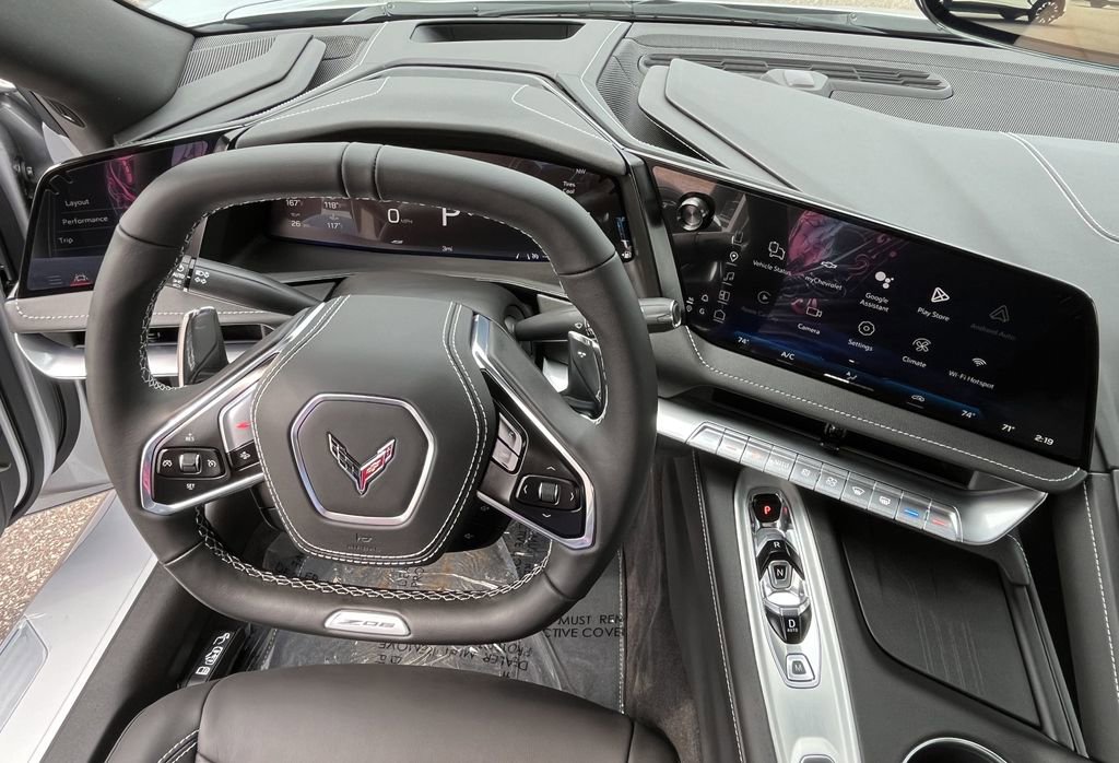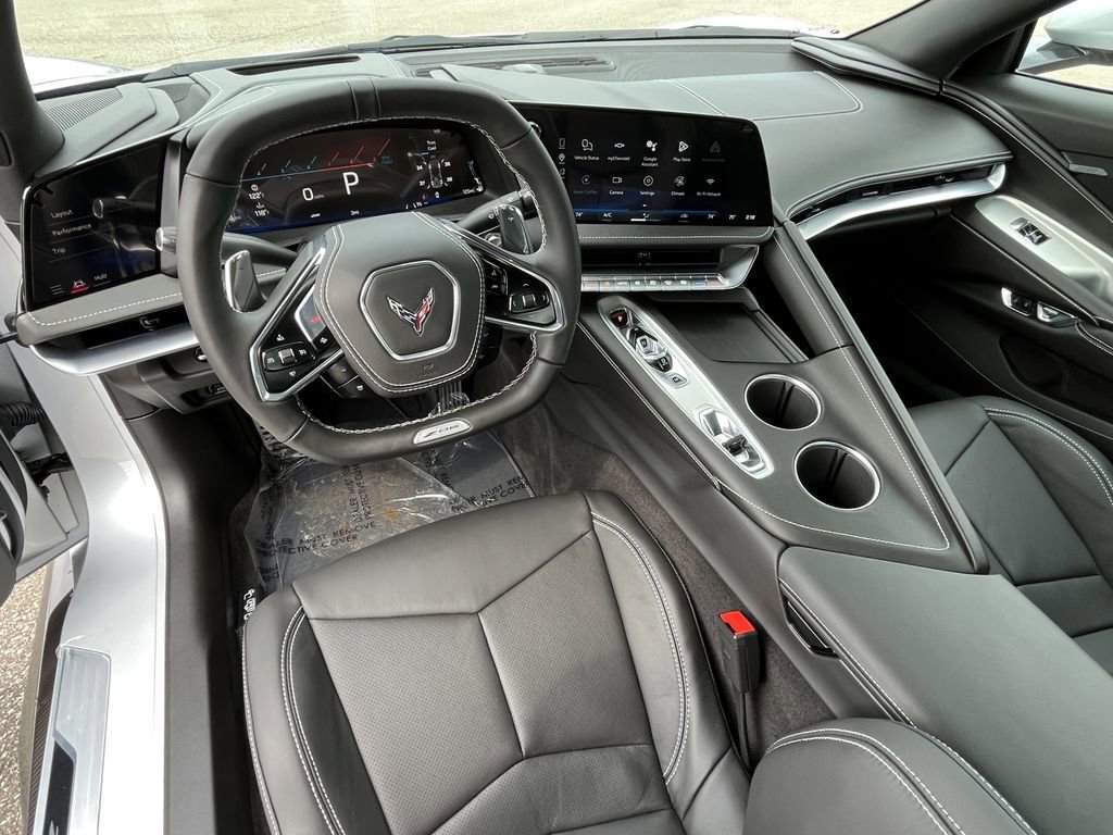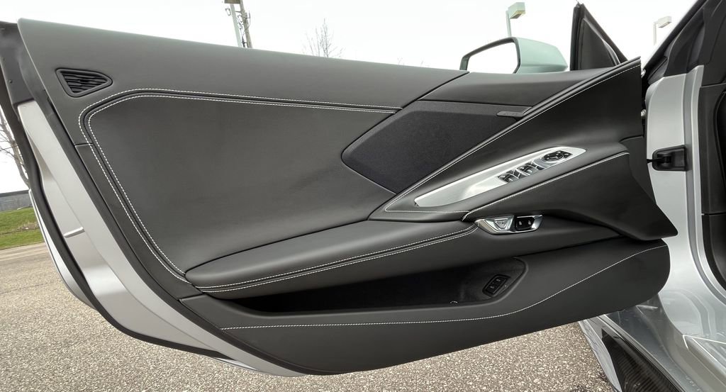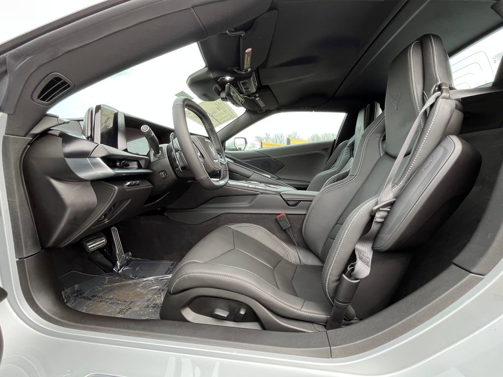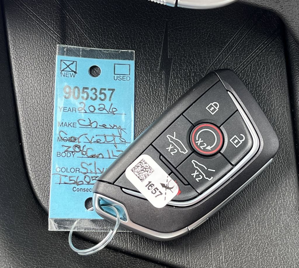 Silver Metallic 2026 Chevrolet Corvette Z06 1LZ RWD 8-Speed Dual Clutch 5.5L V8 10 Speakers, 4-Wheel Disc Brakes, 8-Way Power Driver Seat Adjuster, 8-Way Power Passenger Seat Adjuster, ABS brakes, Adaptive suspension, Air Conditioning, Alloy wheels, AM/FM radio: SiriusXM, Auto High-beam Headlights, Auto-dimming Rear-View mirror, Automatic temperature control, Brake assist, Bumpers: body-color, Compass, Convertible HardTop, Convertible roof lining, Delay-off headlights, Driver door bin, Driver vanity mirror, Dual front impact airbags, Dual front side impact airbags, Electronic Stability Control, Emergency communication system: OnStar and Chevrolet connected services capable, Four wheel independent suspension, Front anti-roll bar, Front Bucket Seats, Front Center Armrest, Front dual zone A/C, Front reading lights, Fully automatic headlights, Glass rear window, GT1 Bucket Seats, Heads-Up Display, Heated door mirrors, Illuminated entry, Integrated roll-over protection, Leather Shift Knob, Leather steering wheel, Low tire pressure warning, Mulan Leather Seating Surfaces with Perforated Inserts, Navigation System, Occupant sensing airbag, Outside temperature display, Overhead console, Panic alarm, Passenger door bin, Passenger vanity mirror, Power convertible roof, Power door mirrors, Power driver seat, Power passenger seat, Power steering, Power windows, Premium audio system: Chevrolet Infotainment 3 Plus, Radio data system, Radio: Infotainment System with Google Built-in, Rear anti-roll bar, Rear window defroster, Remote keyless entry, Speed control, Speed-sensing steering, Spoiler, Sport steering wheel, Steering wheel mounted audio controls, Tachometer, Telescoping steering wheel, Tilt steering wheel, Traction control, Trip computer, Turn signal indicator mirrors, Variably intermittent wipers, Voltmeter, Wheels: 20 x 10 Front and 21 x 13 Rear Titanium Satin.