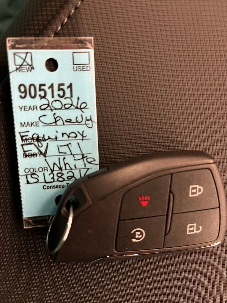 Summit White 2026 Chevrolet Equinox EV LT FWD 1-Speed Automatic Electric Motor 19 Wheels, 4-Wheel Disc Brakes, 6 Speakers, 6-Speaker Audio System Feature, ABS brakes, Air Conditioning, Alloy wheels, AM/FM radio: SiriusXM with 360L, Auto High-beam Headlights, Automatic temperature control, Brake assist, Bumpers: body-color, Cloth Seat Trim, Compass, Delay-off headlights, Driver 6-Way Manual Seat Adjuster, Driver door bin, Dual front impact airbags, Dual front side impact airbags, Electronic Stability Control, Emergency communication system: OnStar and Chevrolet connected services capable, Four wheel independent suspension, Front anti-roll bar, Front Bucket Seats, Front Center Armrest, Front Passenger 4-Way Manual Seat Adjuster, Front reading lights, Fully automatic headlights, Illuminated entry, Knee airbag, Low tire pressure warning, Navigation system: Google built-in compatibility (select service plan required, terms and limitations apply), Occupant sensing airbag, Outside temperature display, Overhead airbag, Overhead console, Panic alarm, Passenger door bin, Power door mirrors, Power steering, Power windows, Radio: 17.7 Diagonal Advanced Color LCD Display, Rear anti-roll bar, Rear reading lights, Rear seat center armrest, Rear window defroster, Rear window wiper, Remote keyless entry, Security system, SiriusXM with 360L Trial Subscription, Speed control, Split folding rear seat, Spoiler, Steering wheel mounted audio controls, Telescoping steering wheel, Tilt steering wheel, Traction control, Trip computer, Turn signal indicator mirrors, Variably intermittent wipers.
