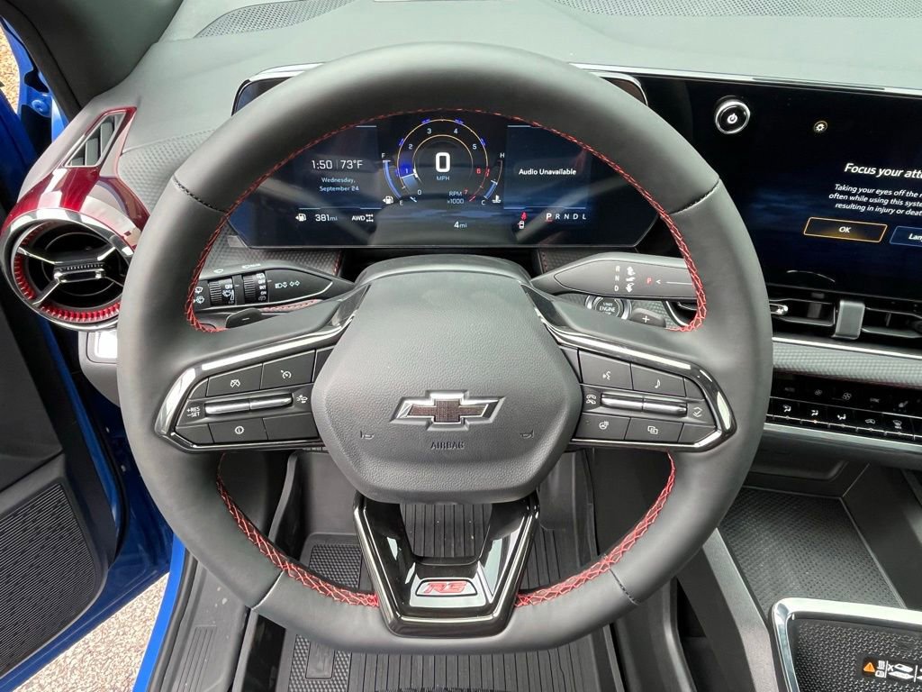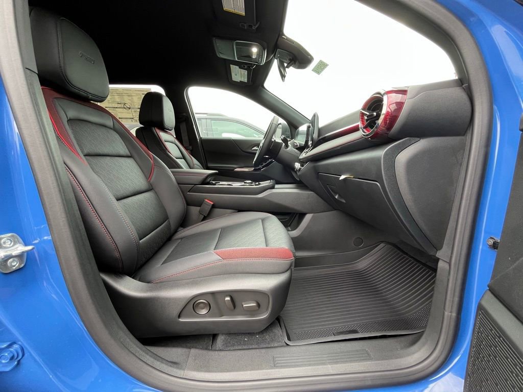 Reef Blue Metallic 2026 Chevrolet Equinox RS AWD 8-Speed Automatic 1.5L DOHC AWD, 2-Way Power Driver Lumbar Control Seat Adjuster, 3.47 Final Drive Axle Ratio, 4-Wheel Disc Brakes, 6 Speakers, ABS brakes, Air Conditioning, All-Weather Floor Liners (LPO), Alloy wheels, AM/FM radio: SiriusXM, Auto High-beam Headlights, Automatic temperature control, Brake assist, Bumpers: body-color, Cargo Mat, Compass, Convenience Package III, Delay-off headlights, Driver 8-Way Power Seat Adjuster, Driver door bin, Driver vanity mirror, Dual front impact airbags, Dual front side impact airbags, Electronic Stability Control, Emergency communication system: OnStar and Chevrolet connected services capable, Evotex Seat Trim, Floor Liner Package (LPO), Four wheel independent suspension, Front anti-roll bar, Front Bucket Seats, Front Center Armrest, Front dual zone A/C, Front Passenger 2-Way Power Lumbar Seat Adjuster, Front Passenger 4-Way Manual Seat Adjuster, Front Passenger 8-Way Power Seat Adjuster, Front reading lights, Fully automatic headlights, Garage door transmitter, Heated door mirrors, Heated Driver & Front Passenger Seats, Heated front seats, Heated Rear Outboard Seating Positions, Heated steering wheel, Illuminated entry, Low tire pressure warning, Memory Settings, Mosaic Black Metallic Roof, Navigation System, Occupant sensing airbag, Outside temperature display, Overhead airbag, Overhead console, Panic alarm, Passenger door bin, Passenger vanity mirror, Power door mirrors, Power driver seat, Power Liftgate, Power steering, Power windows, Preferred Equipment Group 2RS, Premium audio system: Chevrolet Infotainment 3, Radio data system, Radio: 11.3 Diagonal Advanced Color LCD Display, Rain sensing wipers, Rear anti-roll bar, Rear reading lights, Rear seat center armrest, Rear window defroster, Rear window wiper, Remote keyless entry, Second Row All-Weather Mat (LPO), Security system, SiriusXM w/360L Trial Subscription, Speed control, Speed-sensing steering, Split folding rear seat, Spoiler, Sport steering wheel, Steering wheel mounted audio controls, Tachometer, Telescoping steering wheel, Tilt steering wheel, Traction control, Trip computer, Variably intermittent wipers, Ventilated Driver Seat, Ventilated Front Passenger Seat, Wheels: 19 Carbon Flash Metallic Aluminum, AWD.