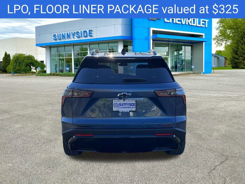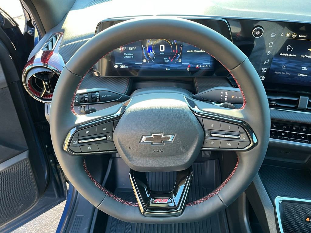 Lakeshore Blue Metallic 2026 Chevrolet Equinox RS FWD CVT 1.5L DOHC 2-Way Power Driver Lumbar Control Seat Adjuster, 4-Wheel Disc Brakes, 5.81 Final Drive Axle Ratio, 6 Speakers, ABS brakes, Air Conditioning, All-Weather Floor Liners (LPO), Alloy wheels, AM/FM radio: SiriusXM, Auto High-beam Headlights, Automatic temperature control, Brake assist, Bumpers: body-color, Cargo Mat, Compass, Delay-off headlights, Driver 8-Way Power Seat Adjuster, Driver door bin, Driver vanity mirror, Dual front impact airbags, Dual front side impact airbags, Electronic Stability Control, Emergency communication system: OnStar and Chevrolet connected services capable, Evotex Seat Trim, Floor Liner Package (LPO), Four wheel independent suspension, Front anti-roll bar, Front Bucket Seats, Front Center Armrest, Front dual zone A/C, Front Passenger 4-Way Manual Seat Adjuster, Front reading lights, Fully automatic headlights, Garage door transmitter, Heated door mirrors, Heated Driver & Front Passenger Seats, Heated front seats, Illuminated entry, Low tire pressure warning, Mosaic Black Metallic Roof, Navigation System, Occupant sensing airbag, Outside temperature display, Overhead airbag, Overhead console, Panic alarm, Passenger door bin, Passenger vanity mirror, Power door mirrors, Power driver seat, Power Liftgate, Power steering, Power windows, Preferred Equipment Group 1RS, Premium audio system: Chevrolet Infotainment 3, Radio data system, Radio: 11.3 Diagonal Advanced Color LCD Display, Rain sensing wipers, Rear anti-roll bar, Rear reading lights, Rear seat center armrest, Rear window defroster, Rear window wiper, Remote keyless entry, Second Row All-Weather Mat (LPO), Security system, SiriusXM w/360L Trial Subscription, Speed control, Speed-sensing steering, Split folding rear seat, Spoiler, Sport steering wheel, Steering wheel mounted audio controls, Tachometer, Telescoping steering wheel, Tilt steering wheel, Traction control, Trip computer, Variably intermittent wipers, Wheels: 19 Carbon Flash Metallic Aluminum, Wheels: 20 Black Machined-Face Aluminum.