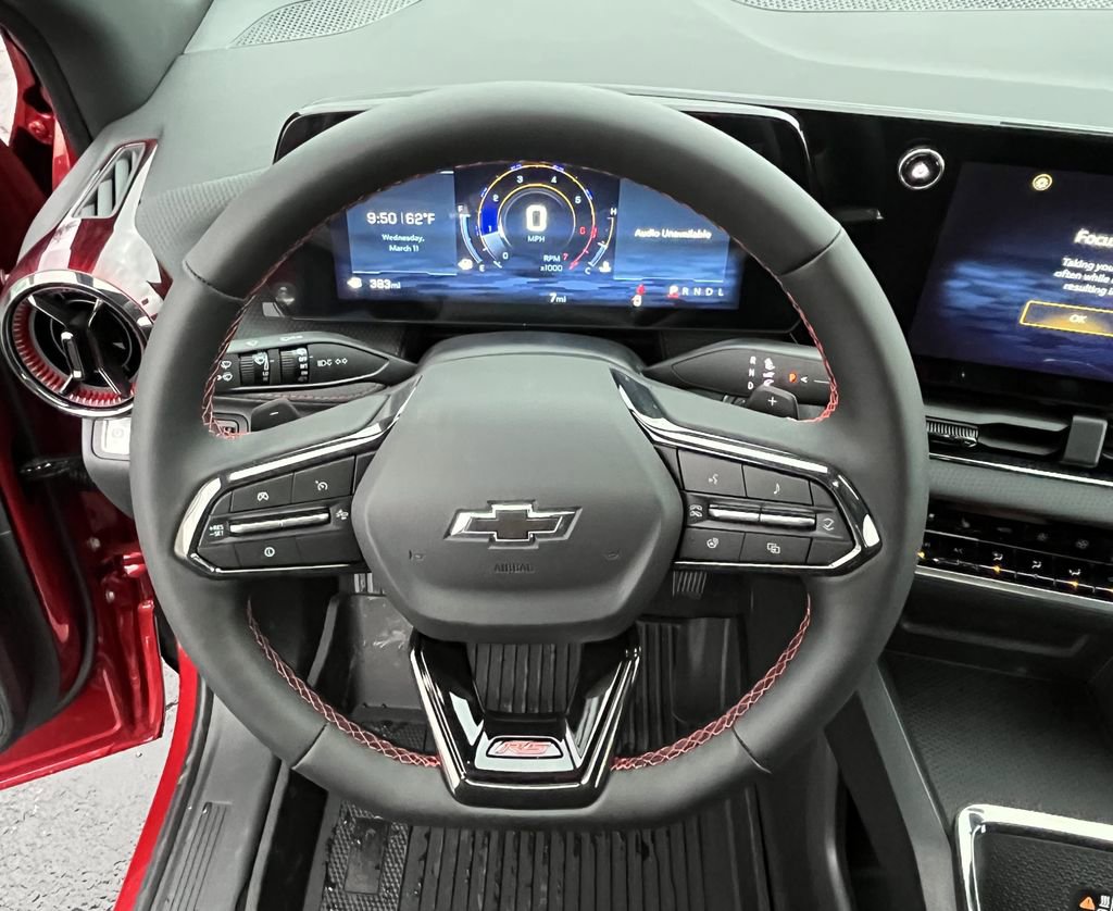 Radiant Red 2026 Chevrolet Equinox RS FWD CVT 1.5L DOHC 2-Way Power Driver Lumbar Control Seat Adjuster, 4-Wheel Disc Brakes, 5.81 Final Drive Axle Ratio, 6 Speakers, ABS brakes, Air Conditioning, Alloy wheels, AM/FM radio: SiriusXM, Auto High-beam Headlights, Automatic temperature control, Brake assist, Bumpers: body-color, Compass, Delay-off headlights, Driver 8-Way Power Seat Adjuster, Driver door bin, Driver vanity mirror, Dual front impact airbags, Dual front side impact airbags, Electronic Stability Control, Emergency communication system: OnStar and Chevrolet connected services capable, Evotex Seat Trim, Four wheel independent suspension, Front anti-roll bar, Front Bucket Seats, Front Center Armrest, Front dual zone A/C, Front Passenger 4-Way Manual Seat Adjuster, Front reading lights, Fully automatic headlights, Garage door transmitter, Heated door mirrors, Heated Driver and Front Passenger Seats, Heated front seats, Heated steering wheel, Illuminated entry, Low tire pressure warning, Navigation System, Occupant sensing airbag, Outside temperature display, Overhead airbag, Overhead console, Panic alarm, Passenger door bin, Passenger vanity mirror, Power door mirrors, Power driver seat, Power Liftgate, Power steering, Power windows, Premium audio system: Chevrolet Infotainment 3, Radio data system, Radio: 11.3 Diagonal Advanced Color LCD Display, Rain sensing wipers, Rear anti-roll bar, Rear reading lights, Rear seat center armrest, Rear window defroster, Rear window wiper, Remote keyless entry, Security system, SiriusXM with 360L Trial Subscription, Speed control, Speed-sensing steering, Split folding rear seat, Spoiler, Sport steering wheel, Steering wheel mounted audio controls, Tachometer, Telescoping steering wheel, Tilt steering wheel, Traction control, Trip computer, Variably intermittent wipers, Wheels: 19 Carbon Flash Metallic Aluminum.