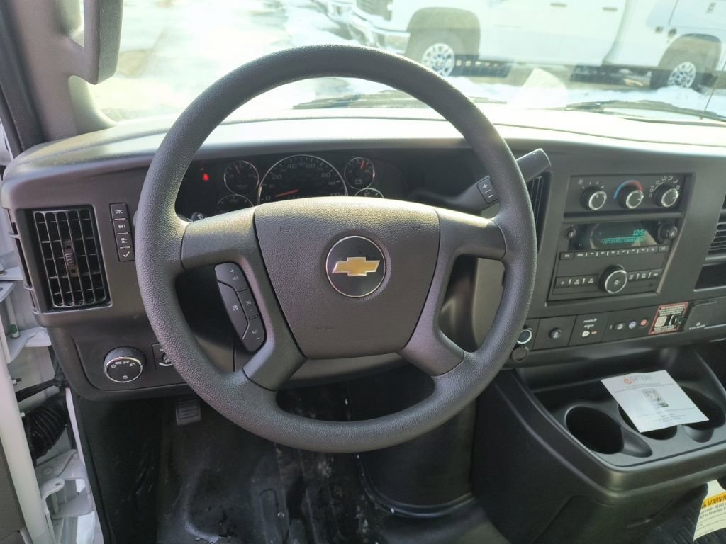 Summit White 2026 Chevrolet Express 3500 Work Van Cutaway 12' Unicell Box RWD 8-Speed Automatic 6.6L V8 2 Speakers, 3.42 Rear Axle Ratio, 4-Wheel Disc Brakes, ABS brakes, Air Conditioning, AM/FM radio, Bluetooth Phone Connection Kit, Chrome Appearance Package, Chrome Grille, Cruise Control, Delay-off headlights, Driver and Front Passenger High-Back Bucket Seats, Driver and Front Passenger Vinyl Visors, Driver Convenience Package, Driver door bin, Driver's Seat Mounted Armrest, Dual front impact airbags, Dual front side impact airbags, Electronic Stability Control, Emergency communication system, Engine Cover Console with Swing-Out Storage Bin, Exterior Parking Camera Rear, Front anti-roll bar, Front Bucket Seats, Front Chrome Bumper with Step-Pad, Front wheel independent suspension, Fully automatic headlights, Heavy-Duty Locking Rear Differential, Inside Rearview Mirror with Rear Vision Camera Display, Low tire pressure warning, Occupant sensing airbag, Overhead airbag, Passenger cancellable airbag, Passenger door bin, Passenger seat mounted armrest, Power Convenience Package, Power Door Locks with Lock-Out Protection, Power steering, Power Windows, Preferred Equipment Group 1WT, Radio: AM/FM Stereo with MP3 Player and Digital Clock, Remote Keyless Entry, Single Rear Wheel Configuration, Tachometer, Theft Alarm Notification, Tilt Steering Wheel, Traction control, Trip computer, Variably intermittent wipers, Vinyl Seat Trim, Voltmeter.