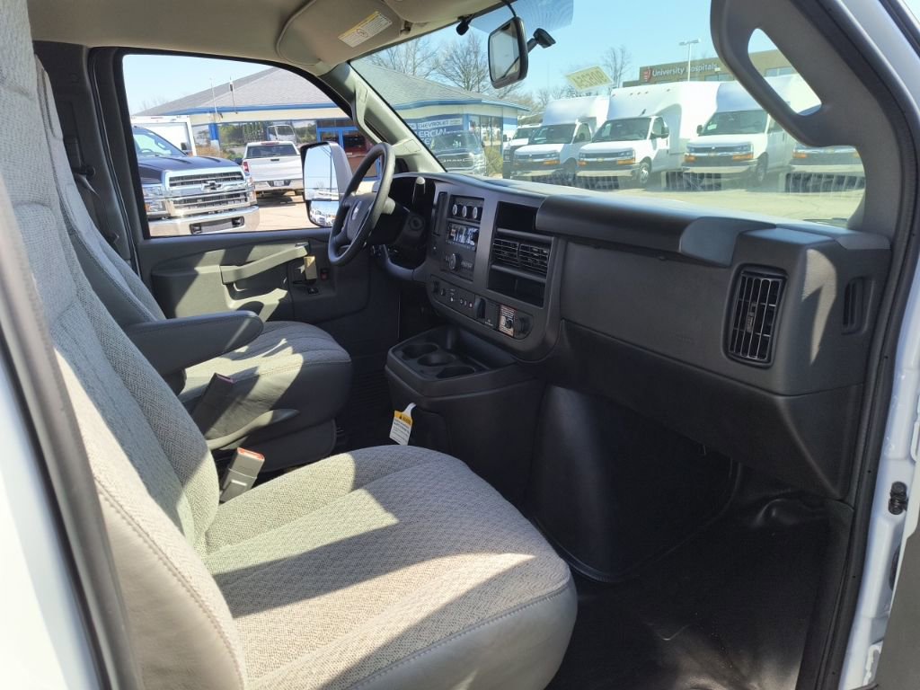 Summit White 2026 Chevrolet Express 3500 Work Van Cutaway RWD 8-Speed Automatic 6.6L V8 10K-14K GVW Emission System, 2 Speakers, 4-Wheel Disc Brakes, a 770 CCA Heavy-Duty Maintenance-Free Battery for those cold mornings, ABS brakes, Air Conditioning, AM/FM radio, Antenna Equipment, Bluetooth Phone Connection Kit, Chrome Appearance Package, Chrome Grille, Cruise Control, Delay-off headlights, Driver and Front Passenger High-Back Bucket Seats, Driver Convenience Package, Driver door bin, Driver's Seat Mounted Armrest, Dual front impact airbags, Dual front side impact airbags, Dual Rear Wheel Configuration, Electronic Stability Control, Emergency communication system, Engine Cover Console with Swing-Out Storage Bin, Exterior Parking Camera Rear, Front anti-roll bar, Front Bucket Seats, Front Chrome Bumper with Step-Pad, Front wheel independent suspension, Fuel Tank Capacity Approx. 57 Gallons (215.7L), Fully automatic headlights, Heavy-Duty Locking Rear Differential, Inside Rearview Mirror with Rear Vision Camera Display, Low tire pressure warning, Occupant sensing airbag, Overhead airbag, Passenger cancellable airbag, Passenger door bin, Passenger seat mounted armrest, Power Convenience Package, Power Door Locks with Lock-Out Protection, Power steering, Power Windows, Preferred Equipment Group 1WT, Radio: AM/FM Stereo with MP3 Player and Digital Clock, Reclining Front Bucket Seats with Inboard Armrests, Remote Keyless Entry, Single Rear Wheel Configuration, Tachometer, Theft Alarm Notification, Tilt Steering Wheel, Traction control, Trip computer, Variably intermittent wipers, Vinyl Seat Trim, Voltmeter, Wheels: 16 x 6.5 8-Lug Painted Steel Heavy Duty, Wide-Stance Sail Panel Mounted Outside Mirrors.
