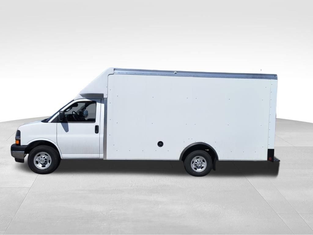 Summit White 2026 Chevrolet Express 3500 Work Van Cutaway Fed Ex Ready 14' RWD 8-Speed Automatic 6.6L V8 2 Speakers, 3.42 Rear Axle Ratio, 4-Wheel Disc Brakes, a 770 CCA Heavy-Duty Maintenance-Free Battery for those cold mornings, ABS brakes, Air Conditioning, AM/FM radio, Antenna Equipment, Black Power-Adjustable Heated Outside Mirrors, Bluetooth Phone Connection Kit, Chrome Appearance Package, Chrome Grille, Cruise Control, Delay-off headlights, Driver and Front Passenger High-Back Bucket Seats, Driver Convenience Package, Driver door bin, Driver's Seat Mounted Armrest, Dual front impact airbags, Dual front side impact airbags, Electronic Stability Control, Emergency communication system, Engine Cover Console with Swing-Out Storage Bin, Exterior Parking Camera Rear, Front anti-roll bar, Front Bucket Seats, Front Chrome Bumper with Step-Pad, Front wheel independent suspension, Fully automatic headlights, Heavy-Duty Locking Rear Differential, Inside Rearview Mirror with Rear Vision Camera Display, Low tire pressure warning, Occupant sensing airbag, Overhead airbag, Passenger cancellable airbag, Passenger door bin, Passenger seat mounted armrest, Power Convenience Package, Power Door Locks with Lock-Out Protection, Power steering, Power Windows, Preferred Equipment Group 1WT, Radio: AM/FM Stereo with MP3 Player and Digital Clock, Reclining Front Bucket Seats with Inboard Armrests, Remote Keyless Entry, Single Rear Wheel Configuration, Tachometer, Theft Alarm Notification, Tilt Steering Wheel, Traction control, Trip computer, Variably intermittent wipers, Vinyl Seat Trim, Voltmeter.