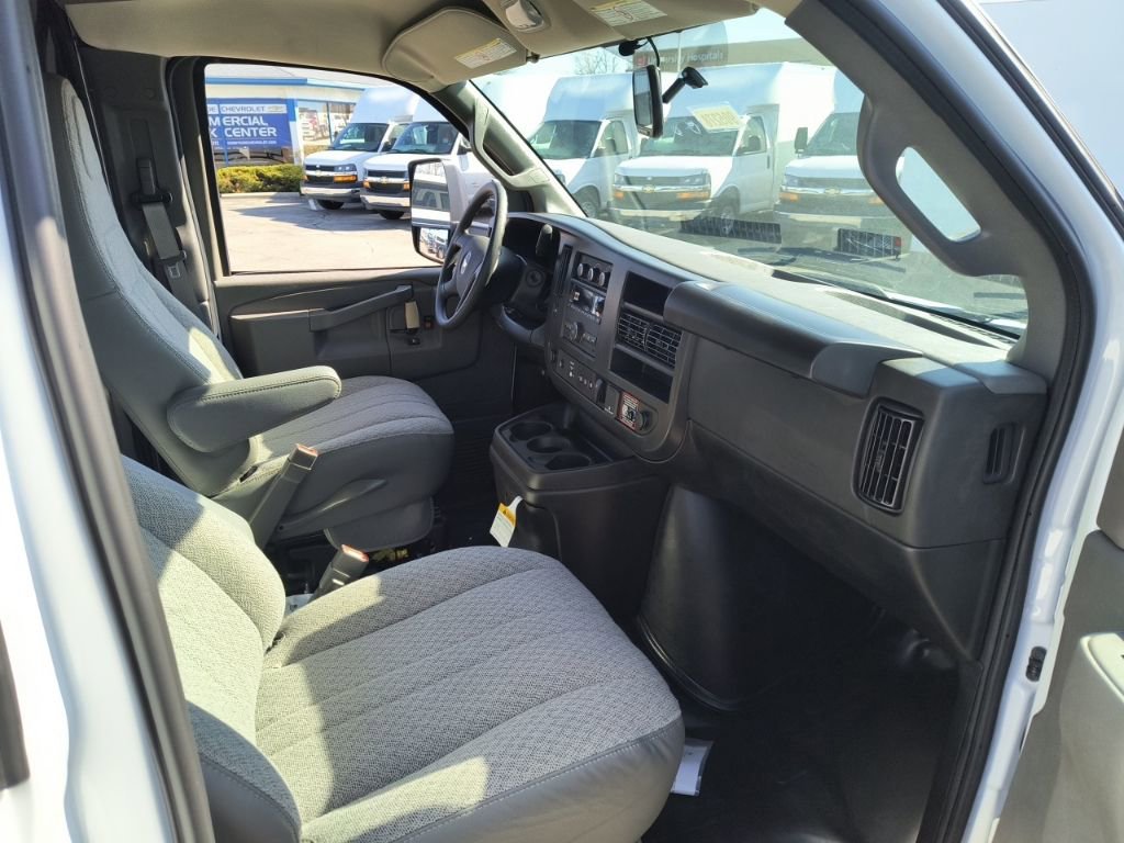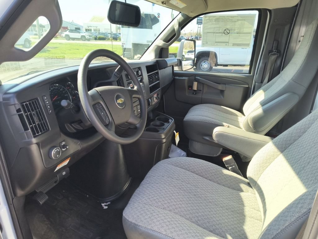 Summit White 2026 Chevrolet Express 3500 Work Van Cutaway RWD 8-Speed Automatic 6.6L V8 2 Speakers, 3.42 Rear Axle Ratio, 4-Wheel Disc Brakes, a 770 CCA Heavy-Duty Maintenance-Free Battery for those cold mornings, ABS brakes, Air Conditioning, AM/FM radio, Antenna Equipment, Black Power-Adjustable Heated Outside Mirrors, Bluetooth Phone Connection Kit, Chrome Appearance Package, Chrome Grille, Cruise Control, Delay-off headlights, Driver and Front Passenger High-Back Bucket Seats, Driver Convenience Package, Driver door bin, Driver's Seat Mounted Armrest, Dual front impact airbags, Dual front side impact airbags, Electronic Stability Control, Emergency communication system, Engine Cover Console with Swing-Out Storage Bin, Exterior Parking Camera Rear, Front anti-roll bar, Front Bucket Seats, Front Chrome Bumper with Step-Pad, Front wheel independent suspension, Fully automatic headlights, Heavy-Duty Locking Rear Differential, Inside Rearview Mirror with Rear Vision Camera Display, Low tire pressure warning, Occupant sensing airbag, Overhead airbag, Passenger cancellable airbag, Passenger door bin, Passenger seat mounted armrest, Power Convenience Package, Power Door Locks with Lock-Out Protection, Power steering, Power Windows, Preferred Equipment Group 1WT, Radio: AM/FM Stereo with MP3 Player and Digital Clock, Reclining Front Bucket Seats with Inboard Armrests, Remote Keyless Entry, Single Rear Wheel Configuration, Tachometer, Theft Alarm Notification, Tilt Steering Wheel, Traction control, Trip computer, Variably intermittent wipers, Vinyl Seat Trim, Voltmeter.