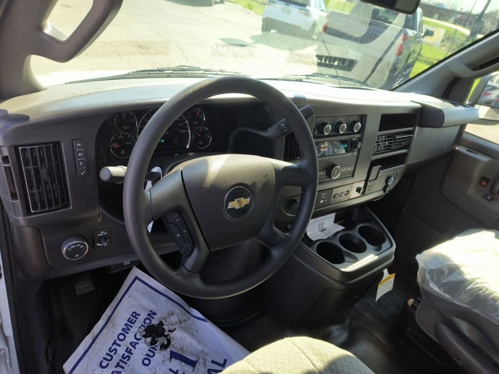 Summit White 2026 Chevrolet Express 3500 Work Van Cutaway RWD 8-Speed Automatic 6.6L V8 2 Speakers, 3.42 Rear Axle Ratio, 4-Wheel Disc Brakes, ABS brakes, Air Conditioning, AM/FM radio, Black Power-Adjustable Heated Outside Mirrors, Bluetooth Phone Connection Kit, Chrome Appearance Package, Chrome Grille, Cruise Control, Delay-off headlights, Driver and Front Passenger High-Back Bucket Seats, Driver and Front Passenger Vinyl Visors, Driver Convenience Package, Driver door bin, Driver's Seat Mounted Armrest, Dual front impact airbags, Dual front side impact airbags, Electronic Stability Control, Emergency communication system, Engine Cover Console with Swing-Out Storage Bin, Exterior Parking Camera Rear, Front anti-roll bar, Front Bucket Seats, Front Chrome Bumper with Step-Pad, Front wheel independent suspension, Fully automatic headlights, Heavy-Duty Locking Rear Differential, Inside Rearview Mirror with Rear Vision Camera Display, Low tire pressure warning, Occupant sensing airbag, Outside Temperature Display, Overhead airbag, Passenger cancellable airbag, Passenger door bin, Passenger seat mounted armrest, Power Convenience Package, Power Door Locks with Lock-Out Protection, Power steering, Power Windows, Preferred Equipment Group 1WT, Radio: AM/FM Stereo with MP3 Player and Digital Clock, Remote Keyless Entry, Single Rear Wheel Configuration, Tachometer, Theft Alarm Notification, Tilt Steering Wheel, Traction control, Trailering Wire Harness, Trip computer, Variably intermittent wipers, Vinyl Seat Trim, Voltmeter.