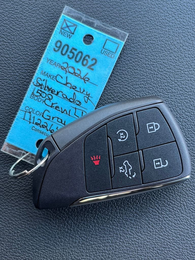 Sterling Gray Metallic 2026 Chevrolet Silverado 1500 LT LT1 4WD 10-Speed Automatic EcoTec3 5.3L V8 10-Speed Automatic, 4WD, Black Cloth, 10-Way Power Driver Seat w/Lumbar, 12.3 Multicolor Reconfigurable Digital Display, 120-Volt Bed Mounted Power Outlet, 120-Volt Interior Power Outlet, 170 Amp Alternator, 2 USB Data Ports, 220 Amp Alternator, 3.23 Rear Axle Ratio, 4-Wheel Disc Brakes, 40/20/40 Front Split-Bench Seat, 6 Speakers, 6-Speaker Audio System, 6 Rectangular Chrome Tubular Assist Steps (LPO), ABS brakes, Adaptive Cruise Control, Air Conditioning, All-Star Edition, All-Weather Floor Liner (LPO), Alloy wheels, AM/FM radio: SiriusXM with 360L, Apple CarPlay/Android Auto, Assist Step & Truck Bed Cover Value Pkg III (LPO), Auto High-beam Headlights, Auto-Locking Rear Differential, Automatic Emergency Braking, Automatic temperature control, Auxiliary External Transmission Oil Cooler, Bluetooth For Phone, Brake assist, Bumpers: chrome, Chevytec Spray-On Black Bedliner, Chrome Mirror Caps, Cloth Seat Trim, Color-Keyed Carpeting Floor Covering, Compass, Convenience Package, Convenience Package II, Deep-Tinted Glass, Delay-off headlights, Driver door bin, Driver vanity mirror, Dual front impact airbags, Dual front side impact airbags, Dual Rear USB Ports (Charge Only), Dual-Zone Automatic Climate Control, Electric Rear-Window Defogger, Electronic Cruise Control, Electronic Stability Control, Electronic Transmission Range Selector Shifter, Emergency communication system: OnStar, External Engine Oil Cooler, EZ Lift Power Lock & Release Tailgate, Floor Mounted Center Console, Following Distance Indicator, Forward Collision Alert, Front anti-roll bar, Front Bucket Seats, Front Center Armrest w/Storage, Front dual zone A/C, Front Frame-Mounted Black Recovery Hooks, Front Pedestrian Braking, Front reading lights, Front Rubberized Vinyl Floor Mats, Front wheel independent suspension, Fully automatic headlights, Hard Folding Truck Bed Cover (LPO), HD Rear Vision Camera, Heated door mirrors, Heated Driver & Front Outboard Passenger Seats, Heated front seats, Heated Power-Adjustable Outside Mirrors, Heated Steering Wheel, Heated steering wheel, High Capacity Suspension Package, Hitch Guidance, Hitch Guidance w/Hitch View, Illuminated entry, In-Vehicle Trailering System App, Inside Rear-View Mirror w/Tilt, Integrated Trailer Brake Controller, IntelliBeam Automatic High Beam On/Off, Keyless Open & Start, Lane Keep Assist w/Lane Departure Warning, LED Cargo Area Lighting, Low tire pressure warning, Manual Tilt/Telescoping Steering Column, Occupant sensing airbag, OnStar Services Capable, Outside temperature display, Overhead airbag, Overhead console, Panic alarm, Passenger door bin, Passenger vanity mirror, Power door mirrors, Power driver seat, Power Front Windows w/Driver Express Up/Down, Power Front Windows w/Passenger Express Down, Power Rear Windows w/Express Down, Power Sliding Rear Window w/Rear Defogger, Power steering, Power windows, Preferred Equipment Group 1LT, Premium audio system: Chevrolet Infotainment 3 Premium, Protection Package, Radio data system, Radio: Chevrolet Infotainment 3 Premium System, Rear 60/40 Folding Bench Seat (Folds Up), Rear reading lights, Rear Rubberized-Vinyl Floor Mats, Rear step bumper, Rear Wheelhouse Liners, Rear window defroster, Remote keyless entry, Remote Start Package, Remote Vehicle Starter System, Security system, SiriusXM w/360L Trial Subscription, Speed control, Speed-sensing steering, Split folding rear seat, Standard Suspension Package, Standard Tailgate, Steering Wheel Audio Controls, Steering wheel mounted audio controls, Tachometer, Teen Driver, Telescoping steering wheel, Theft Deterrent System (Unauthorized Entry), Tilt steering wheel, Tire Pressure Monitoring System, Traction control, Trailering Package, Trip computer, Universal Home Remote, Variably intermittent wipers, Voltmeter, Wheels: 17 x 8 Bright Silver Painted Aluminum, Wheels: 20 x 9 Painted Aluminum, Wi-Fi Hot S