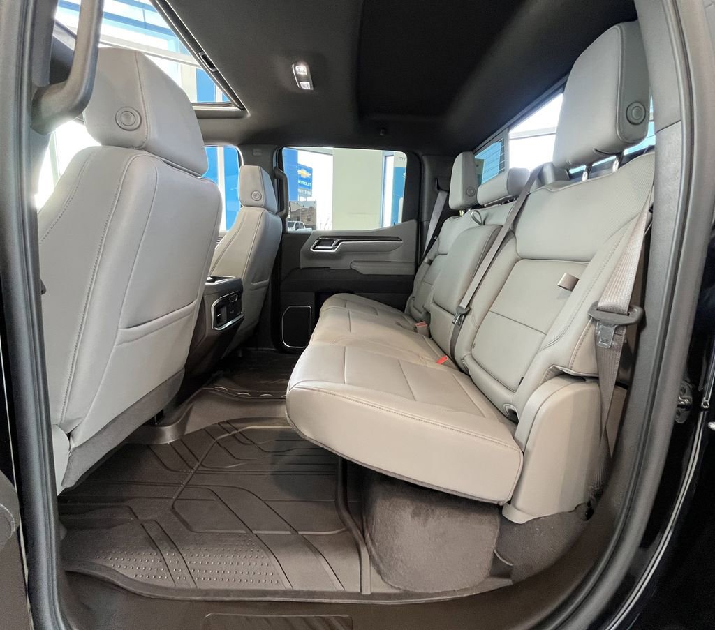 Black 2026 Chevrolet Silverado 1500 LTZ 4WD 10-Speed Automatic EcoTec3 6.2L V8 10-Speed Automatic, 4WD, Gideon/Very Dark Atmosphere Leather, 10-Way Power Driver Seat w/Lumbar, 10-Way Power Passenger Seat Adjuster w/Lumbar, 12.3 Multicolor Reconfigurable Digital Display, 120-Volt Bed Mounted Power Outlet, 120-Volt Interior Power Outlet, 15 Diagonal Multicolor Head-Up Display, 170 Amp Alternator, 2 USB Data Ports, 2nd Row Heated Outboard Seats, 3.23 Rear Axle Ratio, 4-Wheel Disc Brakes, 7 Speakers, ABS brakes, Adaptive Cruise Control, Air Conditioning, All-Weather Floor Liner (LPO), Alloy wheels, AM/FM radio: SiriusXM with 360L, Apple CarPlay/Android Auto, Auto High-beam Headlights, Auto-dimming door mirrors, Auto-Dimming Inside Rear-View Mirror, Auto-dimming Rear-View mirror, Auto-Locking Rear Differential, Automatic Emergency Braking, Automatic temperature control, Bed View Camera, Bluetooth For Phone, Brake assist, Bumpers: chrome, Chevytec Spray-On Black Bedliner, Chrome Mirror Caps, Color-Keyed Carpeting Floor Covering, Compass, Deep-Tinted Glass, Delay-off headlights, Driver door bin, Driver Memory, Driver vanity mirror, Dual Active Exhaust, Dual front impact airbags, Dual front side impact airbags, Dual Rear USB Ports (Charge Only), Electric Rear-Window Defogger, Electronic Cruise Control, Electronic Stability Control, Electronic Transmission Range Selector Shifter, Emergency communication system: OnStar, Floor Mounted Center Console, Following Distance Indicator, Forward Collision Alert, Front anti-roll bar, Front Black Bowtie Emblem (LPO), Front Bucket Seats, Front Center Armrest, Front dual zone A/C, Front fog lights, Front Frame-Mounted Black Recovery Hooks, Front LED Fog Lamps, Front Pedestrian Braking, Front Rain-Sensing Wipers, Front reading lights, Front Rubberized Vinyl Floor Mats, Front wheel independent suspension, Fully automatic headlights, Hard Folding Truck Bed Cover (LPO), HD Surround Vision, Heated door mirrors, Heated Driver & Front Outboard Passenger Seats, Heated front seats, Heated Steering Wheel, Heated steering wheel, High Capacity Suspension Package, Hitch Guidance, Hitch Guidance w/Hitch View, Illuminated entry, In-Vehicle Trailering System App, Integrated Trailer Brake Controller, IntelliBeam Automatic High Beam On/Off, Keyless Open & Start, Lane Keep Assist w/Lane Departure Warning, LED Cargo Area Lighting, Low tire pressure warning, LTZ Convenience Package, LTZ Convenience Package II, LTZ Plus Package, Memory seat, Occupant sensing airbag, OnStar Services Capable, Outside Heated Power-Adjustable Mirrors, Outside temperature display, Overhead airbag, Overhead console, Panic alarm, Passenger door bin, Passenger vanity mirror, Perforated Leather-Appointed Front Seat Trim, Perimeter Lighting, Power door mirrors, Power driver seat, Power Front Passenger Windows w/Express Up/Down, Power Front Windows w/Driver Express Up/Down, Power passenger seat, Power Rear Windows w/Express Down, Power Sliding Rear Window w/Rear Defogger, Power steering, Power Sunroof, Power Tailgate, Power Tilt & Telescoping Steering Column, Power windows, Power-Retractable Assist Steps, Preferred Equipment Group 1LZ, Premium audio system: Chevrolet Infotainment 3 Premium, Premium Bose 7-Speaker Sound System, Radio data system, Radio: Chevrolet Infotainment 3 Premium System, Rain sensing wipers, Rear Camera Mirror, Rear Cross Traffic Braking, Rear Pedestrian Alert, Rear reading lights, Rear Rubberized-Vinyl Floor Mats, Rear seat center armrest, Rear step bumper, Rear Wheelhouse Liners, Rear window defroster, Remote keyless entry, Remote Vehicle Starter System, Safety Alert Seat, Safety Package, Security system, SiriusXM w/360L Trial Subscription, Speed control, Speed-sensing steering, Split folding rear seat, Standard Tailgate, Steering Wheel Audio Controls, Steering wheel mounted audio controls, Tachometer, Technology Package, Teen Driver, Telescoping steering wheel, Theft Deterrent System (Unauthorized Entry), Tilt steer