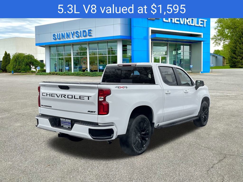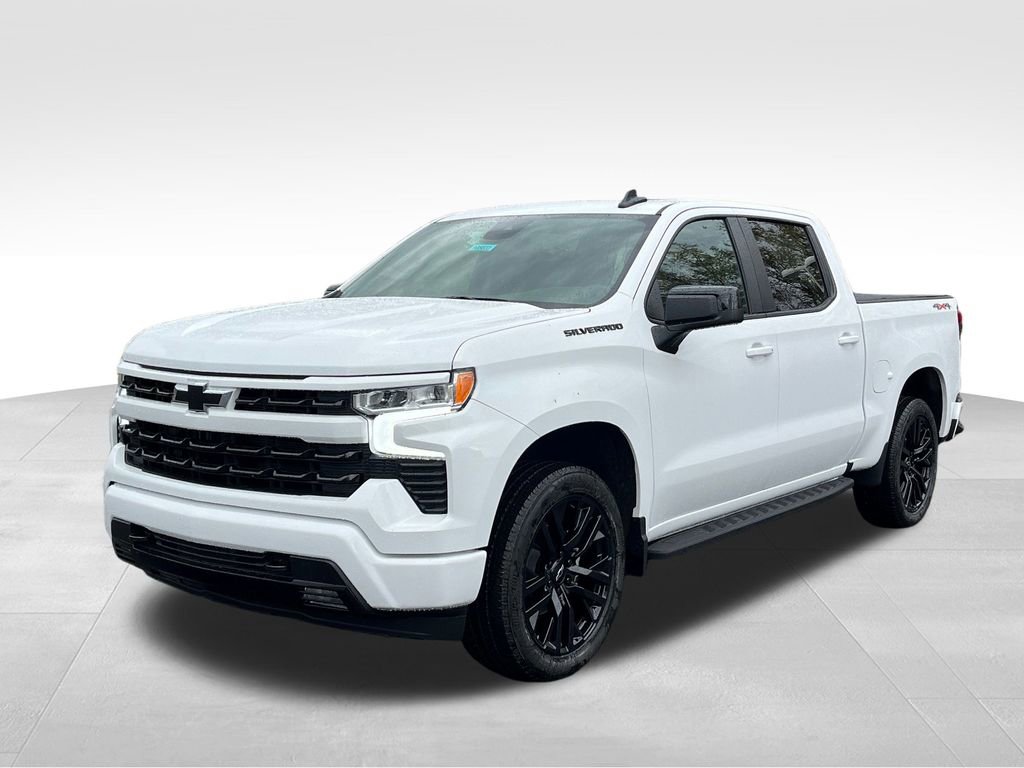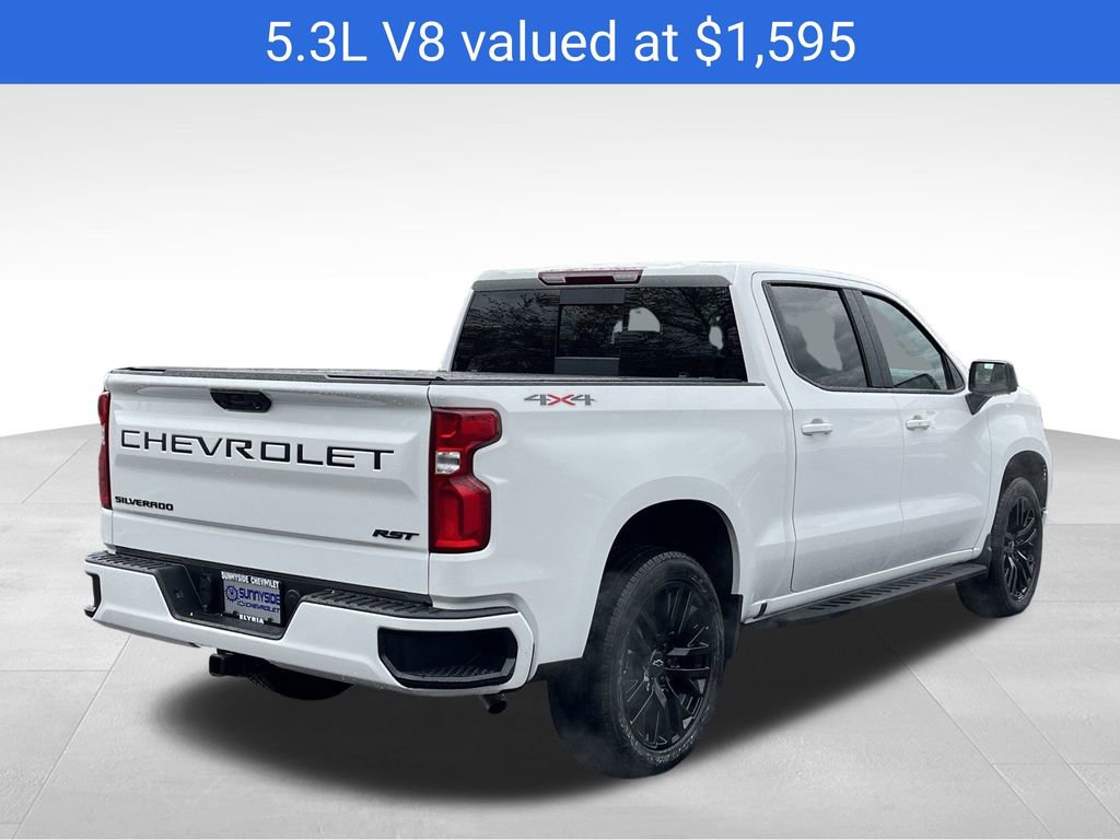 Summit White 2026 Chevrolet Silverado 1500 RST 4WD 10-Speed Automatic EcoTec3 5.3L V8 10-Speed Automatic, 4WD, Black Leather, 10-Way Power Driver Seat w/Lumbar, 12.3 Multicolor Reconfigurable Digital Display, 120-Volt Bed Mounted Power Outlet, 120-Volt Interior Power Outlet, 170 Amp Alternator, 2 USB Data Ports, 220 Amp Alternator, 3.23 Rear Axle Ratio, 4-Wheel Disc Brakes, 40/20/40 Front Split-Bench Seat, 6 Speakers, 6-Speaker Audio System, ABS brakes, Adaptive Cruise Control, Air Conditioning, All-Star Edition, All-Weather Floor Liner (LPO), Alloy wheels, AM/FM radio: SiriusXM with 360L, Apple CarPlay/Android Auto, Auto High-beam Headlights, Auto-Locking Rear Differential, Automatic Emergency Braking, Automatic temperature control, Auxiliary External Transmission Oil Cooler, Black Name Plates (LPO), Black Tailgate CHEVROLET Lettering (LPO), Bluetooth For Phone, Brake assist, Bumpers: body-color, Chevytec Spray-On Black Bedliner, Cloth Seat Trim, Color-Keyed Carpeting Floor Covering, Compass, Convenience Package, Convenience Package II, Dark Essentials Package (LPO), Deep-Tinted Glass, Delay-off headlights, Driver door bin, Driver vanity mirror, Dual front impact airbags, Dual front side impact airbags, Dual Rear USB Ports (Charge Only), Dual-Zone Automatic Climate Control, Electric Rear-Window Defogger, Electronic Cruise Control, Electronic Stability Control, Electronic Transmission Range Selector Shifter, Emergency communication system: OnStar, External Engine Oil Cooler, EZ Lift Power Lock & Release Tailgate, Floor Mounted Center Console, Following Distance Indicator, Forward Collision Alert, Front anti-roll bar, Front Bucket Seats, Front Center Armrest w/Storage, Front dual zone A/C, Front fog lights, Front Frame-Mounted Black Recovery Hooks, Front LED Fog Lamps, Front Pedestrian Braking, Front reading lights, Front Rubberized Vinyl Floor Mats, Front wheel independent suspension, Fully automatic headlights, Hard Folding Truck Bed Cover (LPO), HD Rear Vision Camera, Heated door mirrors, Heated Driver & Front Outboard Passenger Seats, Heated front seats, Heated Power-Adjustable Outside Mirrors, Heated Steering Wheel, Heated steering wheel, High Capacity Suspension Package, High Gloss Black Mirror Caps, Hitch Guidance, Hitch Guidance w/Hitch View, Illuminated entry, In-Vehicle Trailering System App, Inside Rear-View Mirror w/Tilt, Integrated Trailer Brake Controller, IntelliBeam Automatic High Beam On/Off, Keyless Open & Start, Lane Keep Assist w/Lane Departure Warning, Leather Package, Leather-Appointed Front Seat Trim, LED Cargo Area Lighting, Low tire pressure warning, Manual Tilt/Telescoping Steering Column, Occupant sensing airbag, Off-Road High Clearance Steps (LPO), OnStar Services Capable, Outside temperature display, Overhead airbag, Overhead console, Panic alarm, Passenger door bin, Passenger vanity mirror, Power door mirrors, Power driver seat, Power Front Windows w/Driver Express Up/Down, Power Front Windows w/Passenger Express Down, Power Rear Windows w/Express Down, Power Sliding Rear Window w/Rear Defogger, Power steering, Power Sunroof, Power windows, Preferred Equipment Group 1SP, Premium audio system: Chevrolet Infotainment 3 Premium, Premium Bose 7-Speaker Sound System, Protection Package, Radio data system, Radio: Chevrolet Infotainment 3 Premium System, Rear 60/40 Folding Bench Seat (Folds Up), Rear reading lights, Rear Rubberized-Vinyl Floor Mats, Rear step bumper, Rear Wheelhouse Liners, Rear window defroster, Remote keyless entry, Remote Vehicle Starter System, Security system, Single Outlet Exhaust, SiriusXM w/360L Trial Subscription, Speed control, Speed-sensing steering, Split folding rear seat, Standard Suspension Package, Standard Tailgate, Steering Wheel Audio Controls, Steering wheel mounted audio controls, Tachometer, Teen Driver, Telescoping steering wheel, Theft Deterrent System (Unauthorized Entry), Tilt steering wheel, Tire Pressure Monitoring System, Traction control, Trailering Pa