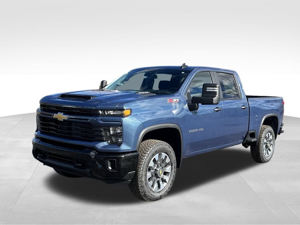 Lakeshore Blue Metallic 2026 Chevrolet Silverado 2500HD Custom 4WD 10-Speed Automatic 6.6L V8 10-Speed Automatic, 4WD, Jet Black Cloth, 10-Way Power Driver Seat Adjuster with Lumbar, 120-Volt Bed Mounted Power Outlet, 120-Volt Interior Power Outlet, 170 Amp Alternator, 2-Speed Electronic Shift Transfer Case, 220 Amp Alternator, 3.5 Diagonal Monochromatic Display DIC, 3.73 Rear Axle Ratio, 4-Wheel Disc Brakes, 6 Speakers, 6-Speaker Audio System, 720 Cold-Cranking Amps Heavy-Duty Battery, ABS brakes, Air Conditioning, Alloy wheels, AM/FM radio: SiriusXM with 360L, Apple CarPlay/Android Auto, Auto High-beam Headlights, Auto-Dimming Inside Rear-View Mirror, Black Chevytec Spray-on Bedliner, Black Mirror Caps, Bluetooth For Phone, Brake assist, Chevrolet Connected Access Capable, Cloth Seat Trim, Color-Keyed Carpeting Floor Covering, Compass, Custom Convenience Package, Custom Value Package, CX Safety Package, Deep-Tinted Glass, Delay-off headlights, Driver door bin, Dual front impact airbags, Dual front side impact airbags, Dual Rear USB Ports (charge Only), Durabed Pickup Bed, Electric Rear-Window Defogger, Electronic Cruise Control with Set and Resume Speed, Electronic Stability Control, Emergency communication system: OnStar, EZ Lift Power Lock and Release Tailgate, Front 40/20/40 Split-Bench Seats with Lockable Storage, Front anti-roll bar, Front Center Armrest w/Storage, Front reading lights, Front Rubberized Vinyl Floor Mats, Front wheel independent suspension, Fully automatic headlights, HD Rear Vision Camera, Heated and Auto-Dimming Vertical Trailering Mirrors, Heated door mirrors, Heated Vertical Trailering Mirrors, Hill Descent Control, Illuminated entry, Lane Change Alert with Side Blind Zone Alert, LED Cargo Area Lighting, Locking Tailgate, Low tire pressure warning, Manual Tailgate Function with No EZ Lift, Manual Tilt-Wheel Steering Column, Occupant sensing airbag, Off-Road Suspension, OnStar Services Capable, Outside temperature display, Overhead airbag, Overhead console, Panic alarm, Passenger door bin, Passenger vanity mirror, Power Door Locks, Power door mirrors, Power Front Windows with Driver Express Up/Down, Power Front Windows with Passenger Express Down, Power Rear Windows with Express Down, Power steering, Power windows, Preferred Equipment Group 1CX, Premium audio system: Chevrolet Infotainment 3, Push Button Start, Radio: Chevrolet Infotainment 3 System, Rear 60/40 Folding Bench Seat (folds Up), Rear Cross Traffic Alert, Rear reading lights, Rear Rubberized Vinyl Floor Mats, Rear step bumper, Remote Keyless Entry, Remote keyless entry, Remote Vehicle Starter System, SiriusXM with 360L Trial Subscription, Snow Plow Prep/Camper Package, Speed control, Split folding rear seat, Standard Tailgate, Suspension Package, Tachometer, Tilt steering wheel, Traction control, Trip computer, Turn signal indicator mirrors, Ultrasonic Front and Rear Park Assist, Unauthorized Entry Theft-Deterrent System, Variably intermittent wipers, Voltmeter, Wheels: 20 10-Spoke Machined Aluminum, Wi-Fi Hotspot Capable, Wireless Phone Projection, Z71 Off-Road Package, 10-Speed Automatic, 4WD, Jet Black Cloth.