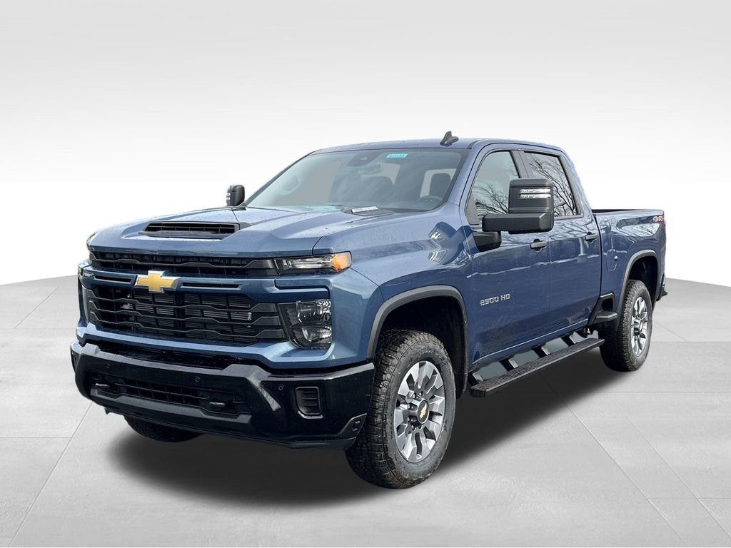 Lakeshore Blue 2026 Chevrolet Silverado 2500HD Custom 4WD 10-Speed Automatic Duramax 6.6L V8 Turbodiesel 10-Speed Automatic, 4WD, Cloth, 170 Amp Alternator, 2-Speed Electronic Shift Transfer Case, 3.5 Diagonal Monochromatic Display DIC, 3.73 Rear Axle Ratio, 4-Wheel Disc Brakes, 6 Speakers, 6-Speaker Audio System, 720 Cold-Cranking Amps Heavy-Duty Battery, ABS brakes, Air Conditioning, Alloy wheels, AM/FM radio: SiriusXM with 360L, Apple CarPlay/Android Auto, Auto High-beam Headlights, Black Mirror Caps, Bluetooth For Phone, Brake assist, Chevrolet Connected Access Capable, Cloth Seat Trim, Color-Keyed Carpeting Floor Covering, Compass, Deep-Tinted Glass, Delay-off headlights, Driver door bin, Dual front impact airbags, Dual front side impact airbags, Durabed Pickup Bed, Electronic Cruise Control with Set and Resume Speed, Electronic Stability Control, Emergency communication system: OnStar, Front 40/20/40 Split-Bench Seats with Lockable Storage, Front anti-roll bar, Front Center Armrest w/Storage, Front reading lights, Front Rubberized Vinyl Floor Mats, Front wheel independent suspension, Fully automatic headlights, HD Rear Vision Camera, Heated door mirrors, Heated Vertical Trailering Mirrors, Illuminated entry, Locking Tailgate, Low tire pressure warning, Manual Tailgate Function with No EZ Lift, Manual Tilt-Wheel Steering Column, Occupant sensing airbag, OnStar Services Capable, Outside temperature display, Overhead airbag, Overhead console, Panic alarm, Passenger door bin, Passenger vanity mirror, Power Door Locks, Power door mirrors, Power Front Windows with Driver Express Up/Down, Power Front Windows with Passenger Express Down, Power Rear Windows with Express Down, Power steering, Power windows, Premium audio system: Chevrolet Infotainment 3, Push Button Start, Radio: Chevrolet Infotainment 3 System, Rear 60/40 Folding Bench Seat (folds Up), Rear reading lights, Rear Rubberized Vinyl Floor Mats, Rear step bumper, Remote Keyless Entry, Remote keyless entry, SiriusXM with 360L Trial Subscription, Speed control, Split folding rear seat, Standard Tailgate, Suspension Package, Tachometer, Tilt steering wheel, Traction control, Trip computer, Turn signal indicator mirrors, Variably intermittent wipers, Voltmeter, Wheels: 20 10-Spoke Machined Aluminum, Wi-Fi Hotspot Capable, Wireless Phone Projection, 10-Speed Automatic, 4WD, Cloth.