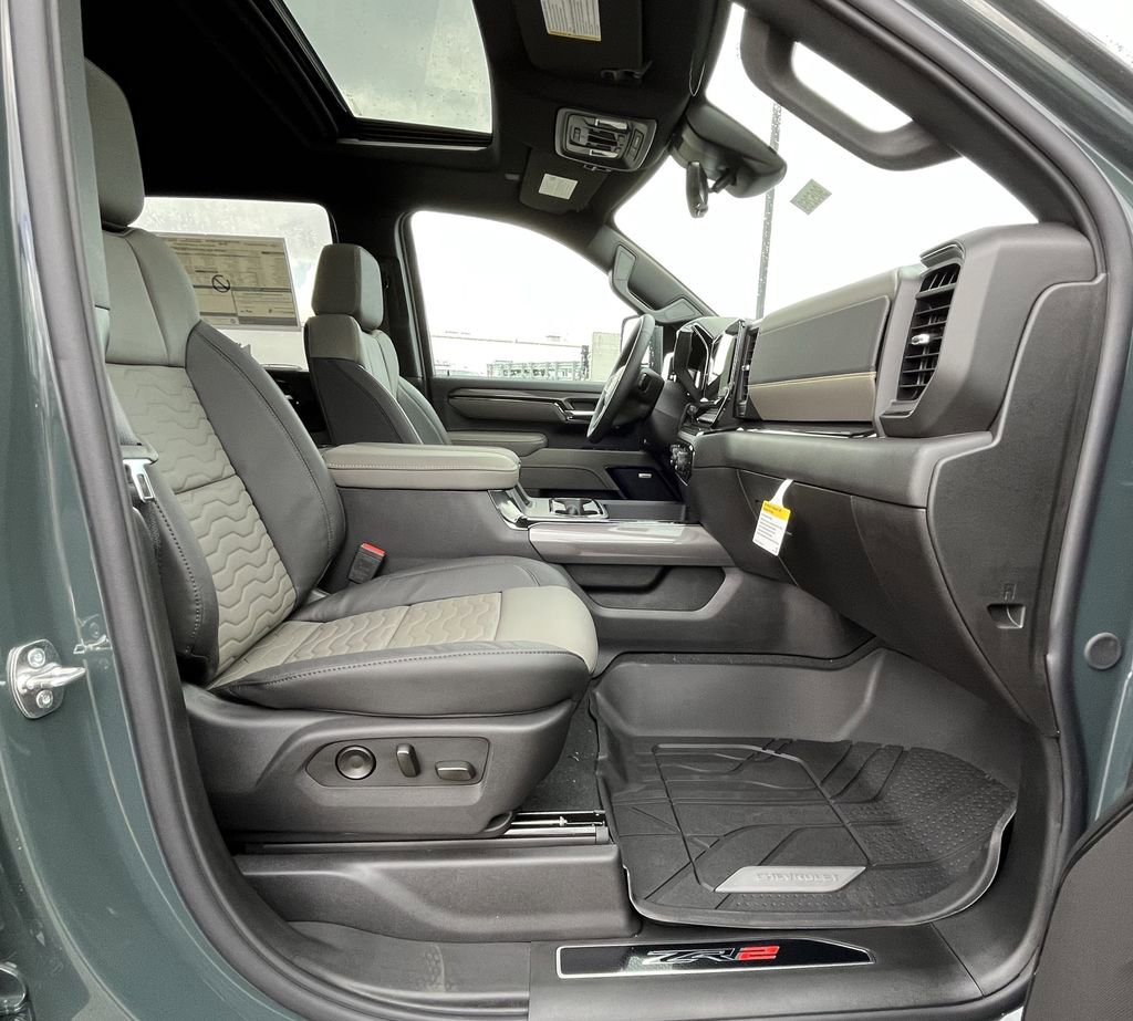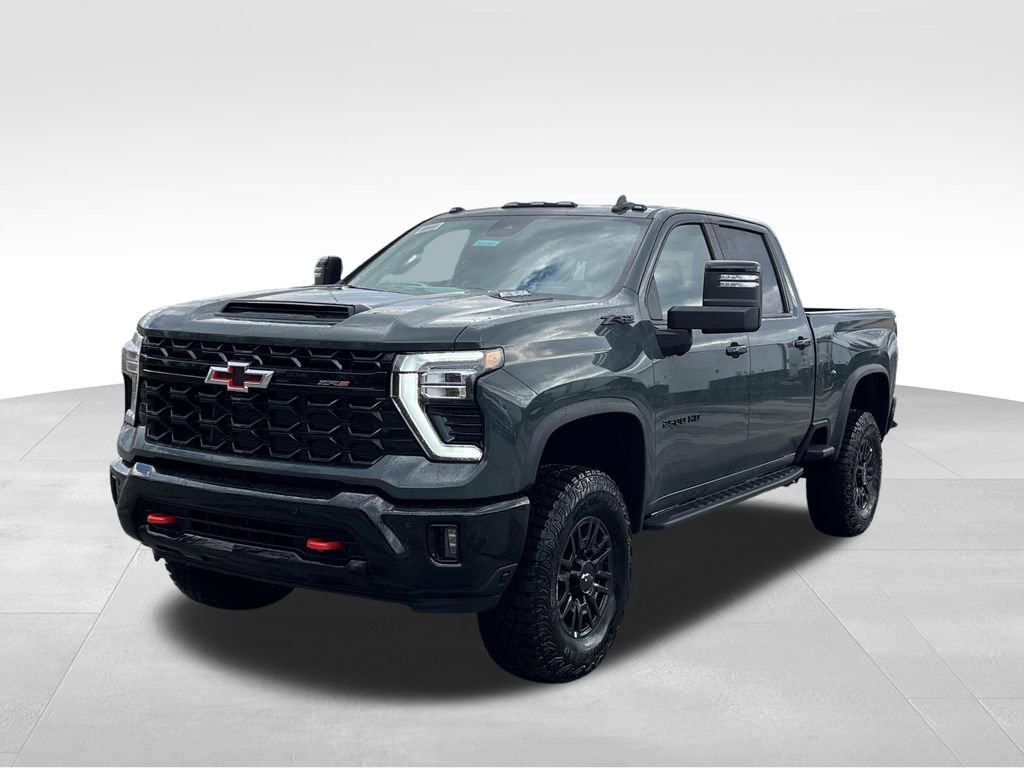 Cypress Gray 2026 Chevrolet Silverado 2500HD ZR2 4WD 10-Speed Automatic 6.6L V8 10-Speed Automatic, 4WD, Jet Black/Graystone Leather, 10-Way Power Driver Seat Adjuster with Lumbar, 10-Way Power Passenger Seat Adjuster with Lumbar, 120-Volt Bed Mounted Power Outlet, 120-Volt Interior Power Outlet, 15 Diagonal Multicolor Head-Up Display, 170 Amp Alternator, 220 Amp Alternator, 3.73 Rear Axle Ratio, 4-Wheel Disc Brakes, 7 Speakers, 720 Cold-Cranking Amps Heavy-Duty Battery, ABS brakes, Adaptive Cruise Control, Air Conditioning, All-Weather Floor Liners, Alloy wheels, AM/FM radio: SiriusXM with 360L, Apple CarPlay/Android Auto, Auto High-beam Headlights, Auto-dimming door mirrors, Auto-dimming Rear-View mirror, Automatic temperature control, Bed View Camera with Two Trailer Camera Provisions, Black Chevytec Spray-on Bedliner, Black Name Plates, Bluetooth For Phone, BOSE Premium 7-Speaker Sound System, Brake assist, Bumpers: chrome, Chevrolet Connected Access Capable, Color-Keyed Carpeting Floor Covering, Compass, Dark Essentials Package, Deep-Tinted Glass, Delay-off headlights, Driver door bin, Driver Memory, Driver vanity mirror, Dual front impact airbags, Dual front side impact airbags, Durabed Pickup Bed, Electric Rear-Window Defogger, Electronic Stability Control, Emergency communication system: OnStar, Engine Block Heater, EZ Lift Power Lock and Release Tailgate, Floor-Mounted Center Console, Front anti-roll bar, Front Bucket Seats, Front Center Armrest, Front dual zone A/C, Front fog lights, Front LED Fog Lamps, Front Rain-Sensing Wipers, Front reading lights, Front wheel independent suspension, Fully automatic headlights, Garage door transmitter, Heads-Up Display, Heated 2nd Row Outboard Seats, Heated door mirrors, Heated Driver and Front Outboard Passenger Seating, Heated front seats, Heated rear seats, Heated Steering Wheel, Heated steering wheel, High Gloss Black Mirror Caps, Hitch Guidance with Hitch View, Illuminated entry, in-Vehicle Trailering App System, Keyless Open and Start, LED Cargo Area Lighting, LED Smoked Amber Roof Marker Lamps, Low tire pressure warning, Manual Tilt and Telescoping Steering Column, Memory seat, Multi-Flex Tailgate, Occupant sensing airbag, Off-Road High Clearance Step, OnStar Services Capable, Outside temperature display, Overhead airbag, Overhead console, Panic alarm, Passenger door bin, Passenger vanity mirror, Perforated Leather Seat Trim, Power Door Locks, Power door mirrors, Power driver seat, Power Front Windows with Driver Express Up/Down, Power Front Windows with Passenger Express Up/Down, Power passenger seat, Power Rear Windows with Express Down, Power Sliding Rear Window with Defogger, Power steering, Power Sunroof, Power windows, Preferred Equipment Group 3LT, Premium audio system: Chevrolet Infotainment 3 Premium, Push Button Start, Radio: Chevrolet Infotainment 3 Premium System, Rain sensing wipers, Rear Camera Mirror, Rear Cross Traffic Alert, Rear reading lights, Rear seat center armrest, Rear step bumper, Rear Wheelhouse Liners, Rear window defroster, Remote keyless entry, Remote Vehicle Starter System, Security system, SiriusXM with 360L Trial Subscription, Snow Plow Prep/Camper Package, Speed control, Speed-sensing steering, Split folding rear seat, Steering Wheel Audio Controls, Steering wheel mounted audio controls, Tachometer, Technology Package, Telescoping steering wheel, Tilt steering wheel, Traction control, Trailer Camera Provisions, Trip computer, Turn signal indicator mirrors, Ultrasonic Front and Rear Park Assist, Unauthorized Entry Theft-Deterrent System, Universal Home Remote, Up-Level Rear Seat with Storage Package, Variably intermittent wipers, Ventilated Driver and Front Passenger Seats, Ventilated front seats, Voltmeter, Wheels: 18 Gloss Black with Etched ZR2 Logo, Wi-Fi Hotspot Capable, Wireless Charging, Wireless Phone Projection, Wrapped Steering Wheel, ZR2 Suspension Package, 10-Speed Automatic, 4WD, Jet Black/Graystone Leather.
