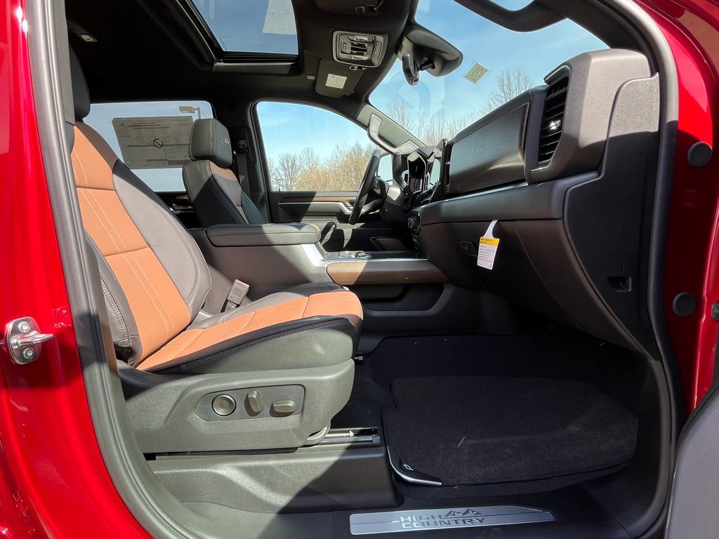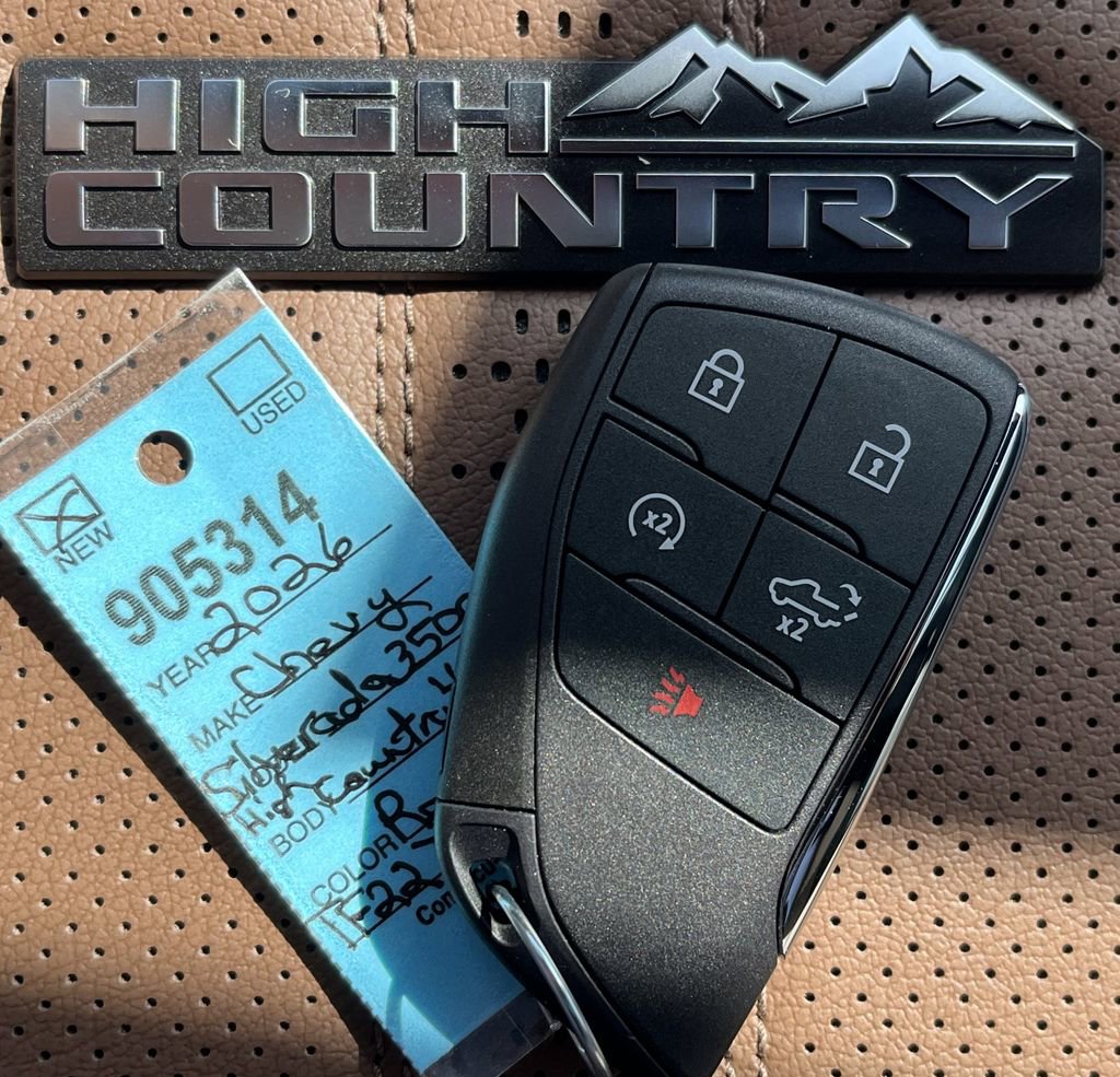 Radiant Red Tintcoat 2026 Chevrolet Silverado 3500HD High Country 4WD 10-Speed Automatic Duramax 6.6L V8 Turbodiesel 10-Speed Automatic, 4WD, Jet Black/Umber Leather, 10-Way Power Driver Seat Adjuster with Lumbar, 10-Way Power Passenger Seat Adjuster with Lumbar, 120-Volt Bed Mounted Power Outlet, 120-Volt Interior Power Outlet, 170 Amp Alternator, 220 Amp Alternator, 4-Wheel Disc Brakes, 6 Rectangular Chromed Tubular Assist Steps, 7 Speakers, ABS brakes, Air Conditioning, Alloy wheels, AM/FM radio: SiriusXM with 360L, Apple CarPlay/Android Auto, Auto High-beam Headlights, Auto-dimming door mirrors, Auto-Dimming Inside Rear-View Mirror, Auto-Dimming Inside Rearview Mirror with Camera, Auto-dimming Rear-View mirror, Automatic temperature control, Bed View Camera with Two Trailer Camera Provisions, Bluetooth For Phone, Bodyside moldings, Bose Premium 7-Speaker Sound System, Brake assist, Bumpers: body-color, Chevrolet Connected Access Capable, Chevytec Spray-on Black Bedliner, Chrome Door Handles, Chrome Mirror Caps, Color-Keyed Carpeting Floor Covering, Compass, Compass Located in Instrument Cluster, Deep-Tinted Glass, Delay-off headlights, Driver door bin, Driver Memory, Driver vanity mirror, Dual front impact airbags, Dual front side impact airbags, Durabed Pickup Bed, Electric Rear-Window Defogger, Electronic Stability Control, Emergency communication system, Engine Block Heater, Exhaust Brake, Floor-Mounted Center Console, Front anti-roll bar, Front Bucket Seats, Front Carpeted Floor Mats, Front Center Armrest, Front Chrome Recovery Hooks, Front dual zone A/C, Front fog lights, Front LED Fog Lamps, Front Rain-Sensing Wipers, Front reading lights, Front wheel independent suspension, Fully automatic headlights, Garage door transmitter, Genuine wood console insert, Genuine wood dashboard insert, Genuine wood door panel insert, Gooseneck/5th Wheel Prep Package, Heated 2nd Row Outboard Seats, Heated door mirrors, Heated Driver and Front Outboard Passenger Seats, Heated front seats, Heated rear seats, Heated Steering Wheel, Heated steering wheel, Heavy-Duty 80 Amp-Hour Battery, High Country Premium Package, Hill Descent Control, Hitch Guidance with Hitch View, Illuminated entry, in-Vehicle Trailering App System, Keyless Open and Start, LED Cargo Area Lighting, LED Smoked Amber Roof Marker Lamps, Low tire pressure warning, Manual Tilt-Wheel/Telescoping Steering Column, Memory seat, Multicolor 15 Diagonal Head-Up Display, Occupant sensing airbag, OnStar Services Capable, Outside temperature display, Overhead airbag, Overhead console, Panic alarm, Passenger door bin, Passenger vanity mirror, Perforated Leather Seating Surfaces, Polished Exhaust Tip, Power Door Locks, Power door mirrors, Power driver seat, Power Front Windows with Driver Express Up/Down, Power Front Windows with Passenger Express Up/Down, Power passenger seat, Power Rear Windows with Express Down, Power Sliding Rear Window with Defogger, Power steering, Power Sunroof, Power Tailgate, Power windows, Preferred Equipment Group 3LZ, Premium audio system: Chevrolet Infotainment 3 Premium, Push Button Start, Radio: Chevrolet Infotainment 3 Premium System, Rain sensing wipers, Rear Carpeted Floor Mats, Rear Cross Traffic Alert, Rear reading lights, Rear seat center armrest, Rear step bumper, Rear Wheelhouse Liners, Rear window defroster, Remote keyless entry, Remote Vehicle Starter System, Security system, SiriusXM with 360L Trial Subscription, Snow Plow Prep/Camper Package, Speed control, Speed-sensing steering, Split folding rear seat, Standard Tailgate, Steering Wheel Audio Controls, Steering wheel mounted audio controls, Suspension Package, Tachometer, Technology Package, Telescoping steering wheel, Tilt steering wheel, Traction control, Trailer Camera Provisions, Trailer Side Blind Zone Alert, Trip computer, Turn signal indicator mirrors, Ultrasonic Front and Rear Park Assist, Unauthorized Entry Theft-Deterrent System, Universal Home Remote, Up-Level Rear Seat