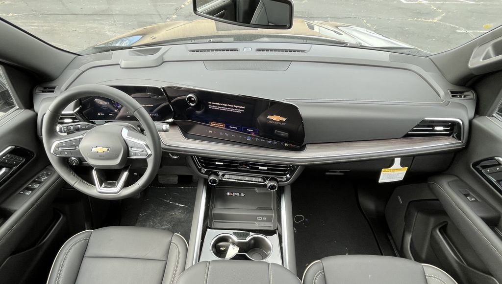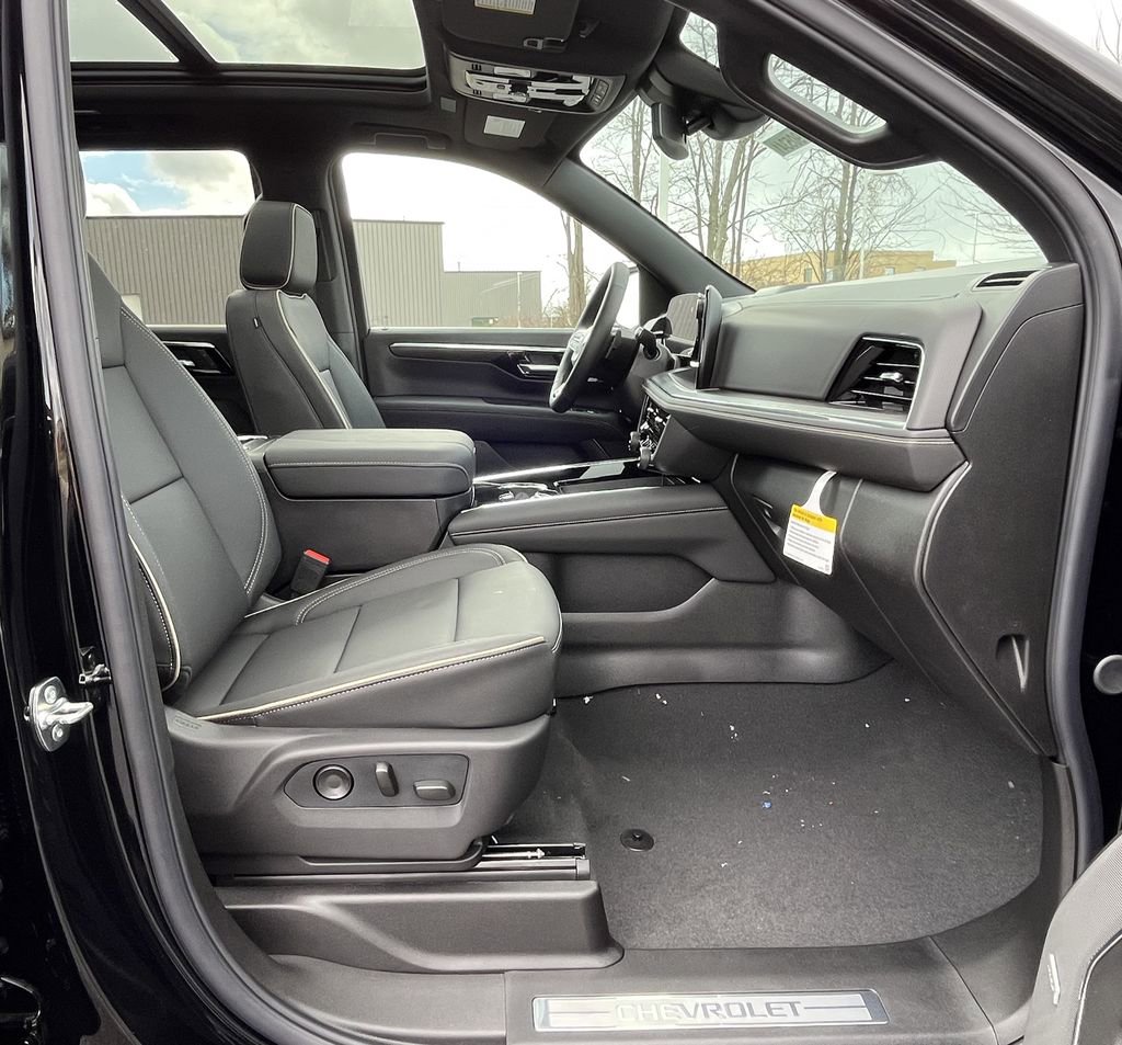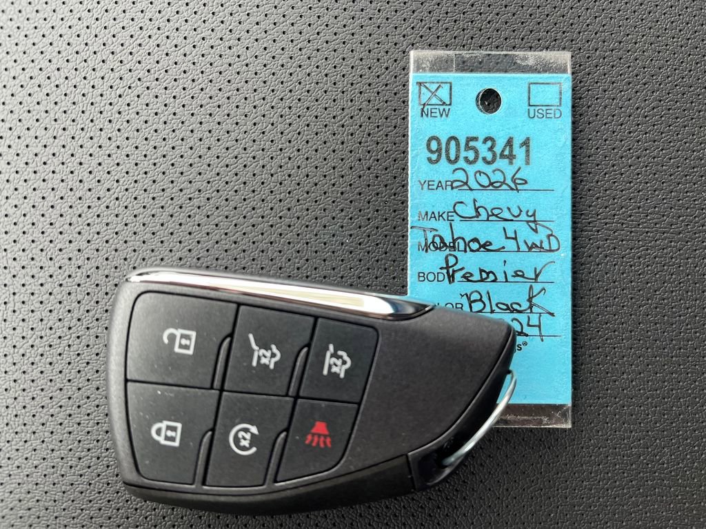 Black 2026 Chevrolet Tahoe Premier 4WD 10-Speed Automatic with Overdrive EcoTec3 5.3L V8 4WD, Leather, 10 Speakers, 1st and 2nd Row Color-Keyed Carpeted Floor Mats, 20 x 9 Polished Aluminum Wheels, 3-Spoke Wrapped Steering Wheel, 3.23 Rear Axle Ratio, 3rd Row 60/40 Power-Folding Split-Bench Seat, 3rd row seats: split-bench, 4-Way Power Driver Lumbar Seat Adjuster, 4-Way Power Front Passenger Lumbar Seat Adjuster, 4-Wheel Disc Brakes, 8-Way Power Driver Seat Adjuster, 8-Way Power Front Passenger Seat Adjuster, ABS brakes, Adaptive suspension, Air Conditioning, Alloy wheels, AM/FM radio: SiriusXM with 360L, Apple CarPlay/Android Auto, Auto High-beam Headlights, Auto-dimming door mirrors, Auto-Dimming Inside Rear-View Mirror, Auto-dimming Rear-View mirror, Auto-leveling suspension, Automatic temperature control, Bose 10-Speaker Centerpoint Surround Audio System Feature, Brake assist, Bright Front and Rear Door Sill Plates, Bumpers: body-color, Chrome Door Handles with Body-Color Strip, Chrome Mirror Caps, Color-Keyed Carpeting Floor Covering, Compass, Delay-off headlights, Driver and Front Passenger Heated and Ventilated Seats, Driver door bin, Driver vanity mirror, Dual Exhaust System, Dual front impact airbags, Dual front side impact airbags, Electronic Stability Control, Emergency communication system: OnStar and Chevrolet connected services capable, Exterior Parking Camera Rear, Floor Console, Four wheel independent suspension, Front anti-roll bar, Front Bucket Seats, Front Center Armrest, Front dual zone A/C, Front fog lights, Front LED Fog Lamps, Front reading lights, Frontal Driver and Outboard Passenger Airbags, Fully automatic headlights, Garage door transmitter, Heated 2nd Row Outboard Seats, Heated door mirrors, Heated Driver and Front Passenger Seats, Heated front seats, Heated rear seats, Heated Steering Wheel, Heated steering wheel, Illuminated entry, Interior Camera, Key Card, LED Headlamps with LED Daytime Running Lamps, LED Tail Lamps, Low tire pressure warning, Magnetic Ride Control Suspension, Memory seat, Memory Settings, Navigation system: Google built-in compatibility (select service plan required, terms and limitations apply), Occupant sensing airbag, Outside Heated Power-Adjustable Mirrors, Outside temperature display, Overhead airbag, Overhead console, Panic alarm, Passenger door bin, Passenger vanity mirror, Perforated Leather Seat Trim, Power door mirrors, Power driver seat, Power Liftgate, Power passenger seat, Power Release 2nd Row Bucket Seats, Power steering, Power Tilt and Telescopic Steering Column, Power windows, Premium audio system: Chevrolet Infotainment 3 Premium, Radio data system, Radio: 17.7 Diagonal Advanced Color LCD Display, Rain sensing wipers, Rear air conditioning, Rear anti-roll bar, Rear Power Liftgate, Rear reading lights, Rear window defroster, Rear window wiper, Remote keyless entry, Remote Start, Security system, SiriusXM with 360L Trial Subscription, Speed control, Speed-sensing steering, Split folding rear seat, Spoiler, Steering wheel memory, Steering wheel mounted audio controls, Tachometer, Telescoping steering wheel, Tilt steering wheel, Traction control, Trip computer, Turn signal indicator mirrors, Universal Home Remote, Variably intermittent wipers, Ventilated front seats, Voltmeter, Wireless Phone Charging, 4WD, Leather.