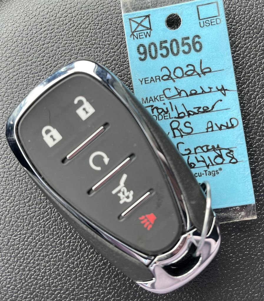 Sterling Gray Metallic 2026 Chevrolet TrailBlazer RS AWD 9-Speed Automatic 1.3L I3 Turbocharged DOHC 12V LEV3-SULEV30 155hp 1 Type-A and 1 Type-C USB Charging-Only Ports, 1 Type-A and 1 Type-C USB Ports, 120-Volt Power Outlet, 2-Way Power Driver Lumbar Seat Adjuster, 3.17 Final Drive Axle Ratio, 4-Way Manual Front Passenger Seat Adjuster, 4-Wheel Disc Brakes, 6 Speakers, 6-Speaker Audio System Feature with Amplifier, 8-Way Power Driver Seat Adjuster, ABS brakes, Adaptive Cruise and Sound Package, Adaptive Cruise Control, Air Conditioning, Alloy wheels, AM/FM radio: SiriusXM, Auto High-beam Headlights, Bose Premium 7-Speaker Audio System Feature, Brake assist, Bumpers: body-color, Cabin Humidity Sensor, Compass, Convenience Package, Delay-off headlights, Driver and Front Passenger Illuminated Vanity Mirrors, Driver Confidence Package, Driver door bin, Driver vanity mirror, Dual front impact airbags, Dual front side impact airbags, Dual-Pane Panoramic Power Sunroof, Electronic Stability Control, Emergency communication system: OnStar and Chevrolet connected services capable, Evotex Seat Trim, Exterior Parking Camera Rear, Flat-Folding Front Passenger Seatback, Front and Rear All-Weather Floor Liners, Front anti-roll bar, Front Bucket Seats, Front Center Armrest, Front reading lights, Front wheel independent suspension, Fully automatic headlights, Hands Free Power Programmable Liftgate, Heated door mirrors, Heated Driver and Front Passenger Seats, Heated front seats, Heated steering wheel, Illuminated entry, Inside Rear-View Auto-Dimming Mirror, Knee airbag, Lane Change Alert with Side Blind Zone Alert, Low tire pressure warning, Mosaic Black Metallic Two-Tone Roof, Occupant sensing airbag, Overhead airbag, Overhead console, Panic alarm, Passenger door bin, Passenger vanity mirror, Power door mirrors, Power driver seat, Power steering, Power windows, Preferred Equipment Group 1RS, Radio data system, Radio: AM/FM Stereo Audio System, Rear Cross Traffic Alert, Rear Park Assist, Rear seat center armrest, Rear side impact airbag, Rear window defroster, Rear window wiper, Remote keyless entry, Ride and Handling Suspension, Security system, Single-Zone Automatic Climate Control, SiriusXM Trial Subscription, Speed control, Split folding rear seat, Spoiler, Steering wheel mounted audio controls, Tachometer, Telescoping steering wheel, Tilt steering wheel, Traction control, Trailer Hitch, Trailer Hitch Bezel, Trailer Hitch Harness, Trailering Package, Trip computer, Variably intermittent wipers, Wheels: 19 High Gloss Black Machined Aluminum, Wireless Apple CarPlay/Android Auto, Wireless Charging.