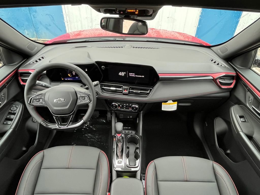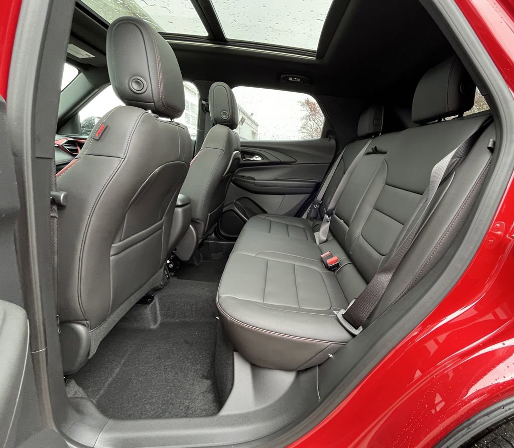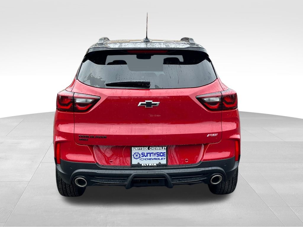 Red 2026 Chevrolet TrailBlazer RS AWD 9-Speed Automatic 1.3L I3 Turbocharged DOHC 12V LEV3-SULEV30 155hp 1 Type-A and 1 Type-C USB Charging-Only Ports, 1 Type-A and 1 Type-C USB Ports, 120-Volt Power Outlet, 2-Way Power Driver Lumbar Seat Adjuster, 3.17 Final Drive Axle Ratio, 4-Way Manual Front Passenger Seat Adjuster, 4-Wheel Disc Brakes, 6 Speakers, 6-Speaker Audio System Feature with Amplifier, 8-Way Power Driver Seat Adjuster, ABS brakes, Adaptive Cruise and Sound Package, Adaptive Cruise Control, Air Conditioning, Alloy wheels, AM/FM radio: SiriusXM, Auto High-beam Headlights, Bose Premium 7-Speaker Audio System Feature, Brake assist, Bumpers: body-color, Cabin Humidity Sensor, Compass, Convenience Package, Delay-off headlights, Driver and Front Passenger Illuminated Vanity Mirrors, Driver Confidence Package, Driver door bin, Driver vanity mirror, Dual front impact airbags, Dual front side impact airbags, Dual-Pane Panoramic Power Sunroof, Electronic Stability Control, Emergency communication system: OnStar and Chevrolet connected services capable, Evotex Seat Trim, Exterior Parking Camera Rear, Flat-Folding Front Passenger Seatback, Front anti-roll bar, Front Bucket Seats, Front Center Armrest, Front reading lights, Front wheel independent suspension, Fully automatic headlights, Hands Free Power Programmable Liftgate, Heated door mirrors, Heated Driver and Front Passenger Seats, Heated front seats, Heated steering wheel, Illuminated entry, Inside Rear-View Auto-Dimming Mirror, Knee airbag, Lane Change Alert with Side Blind Zone Alert, Low tire pressure warning, Mechanical Jack with Tools, Mosaic Black Metallic Two-Tone Roof, Occupant sensing airbag, Overhead airbag, Overhead console, Panic alarm, Passenger door bin, Passenger vanity mirror, Power door mirrors, Power driver seat, Power steering, Power windows, Preferred Equipment Group 1RS, Radio data system, Radio: AM/FM Stereo Audio System, Rear Cross Traffic Alert, Rear Park Assist, Rear seat center armrest, Rear side impact airbag, Rear window defroster, Rear window wiper, Remote keyless entry, Ride and Handling Suspension, Security system, Single-Zone Automatic Climate Control, SiriusXM Trial Subscription, Speed control, Split folding rear seat, Spoiler, Steering wheel mounted audio controls, Tachometer, Telescoping steering wheel, Tilt steering wheel, Traction control, Trailer Hitch, Trailer Hitch Bezel, Trailer Hitch Harness, Trailering Package, Trip computer, Variably intermittent wipers, Wheels: 19 High Gloss Black Machined Aluminum, Wireless Apple CarPlay/Android Auto, Wireless Charging.