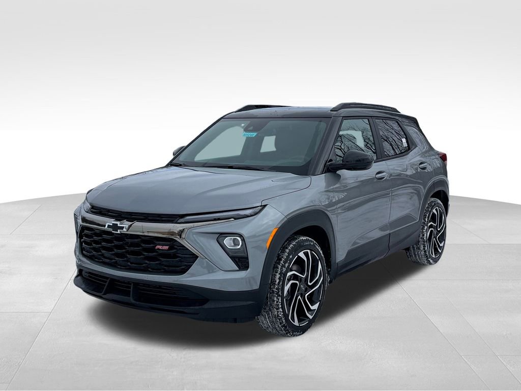 Sterling Gray 2026 Chevrolet TrailBlazer RS FWD CVT 1.3L I3 Turbocharged DOHC 12V LEV3-SULEV30 155hp 1 Type-A and 1 Type-C USB Ports, 2-Way Power Driver Lumbar Seat Adjuster, 4-Way Manual Front Passenger Seat Adjuster, 4-Wheel Disc Brakes, 5.45 Final Drive Axle Ratio, 6 Speakers, 8-Way Power Driver Seat Adjuster, ABS brakes, Air Conditioning, Alloy wheels, AM/FM radio: SiriusXM, Auto High-beam Headlights, Brake assist, Bumpers: body-color, Compass, Delay-off headlights, Driver door bin, Driver vanity mirror, Dual front impact airbags, Dual front side impact airbags, Electronic Stability Control, Emergency communication system: OnStar and Chevrolet connected services capable, Enhanced Performance 6-Speaker Audio System, Evotex Seat Trim, Exterior Parking Camera Rear, Flat-Folding Front Passenger Seatback, Front anti-roll bar, Front Bucket Seats, Front Center Armrest, Front reading lights, Front wheel independent suspension, Fully automatic headlights, Heated door mirrors, Heated Driver and Front Passenger Seats, Heated front seats, Heated steering wheel, Illuminated entry, Knee airbag, Low tire pressure warning, Occupant sensing airbag, Overhead airbag, Overhead console, Panic alarm, Passenger door bin, Passenger vanity mirror, Power door mirrors, Power driver seat, Power steering, Power windows, Radio data system, Radio: AM/FM Stereo Audio System, Rear seat center armrest, Rear side impact airbag, Rear window defroster, Rear window wiper, Remote keyless entry, Ride and Handling Suspension, Security system, SiriusXM Trial Subscription, Speed control, Split folding rear seat, Spoiler, Steering wheel mounted audio controls, Tachometer, Telescoping steering wheel, Tilt steering wheel, Traction control, Trip computer, Variably intermittent wipers, Wheels: 19 High Gloss Black Machined Aluminum, Wireless Apple CarPlay/Android Auto.