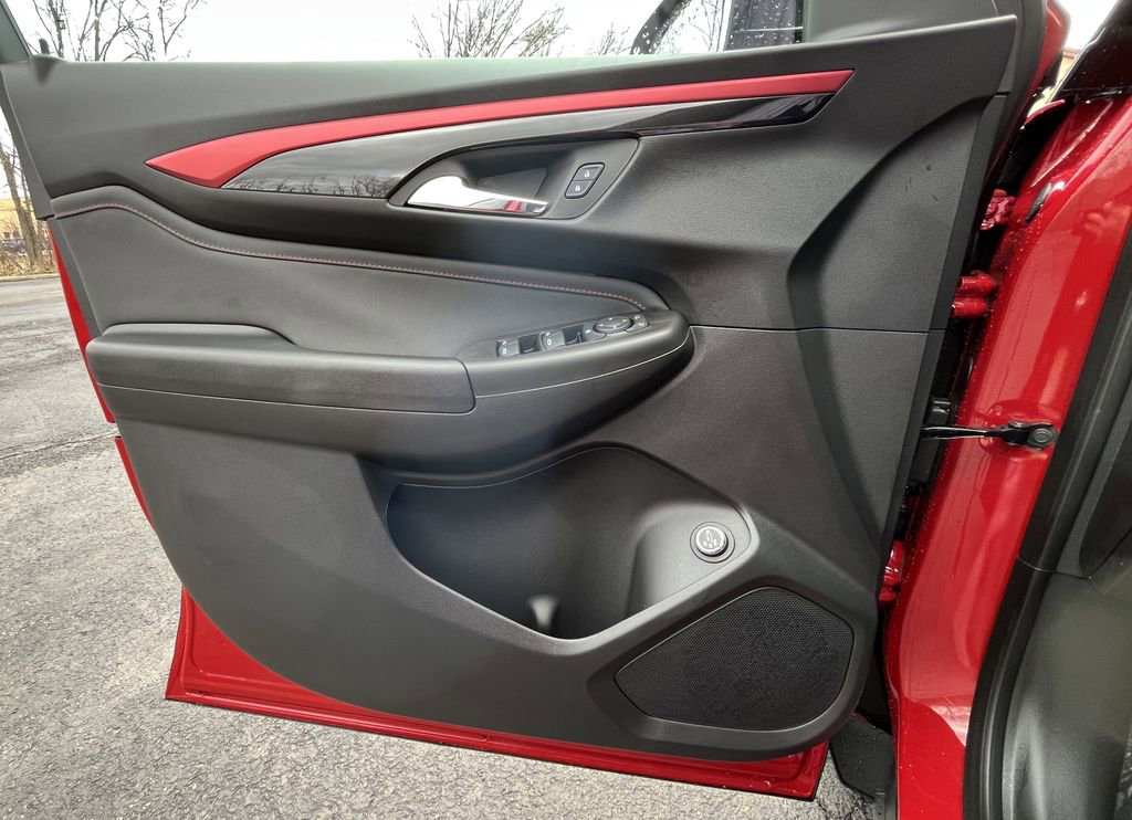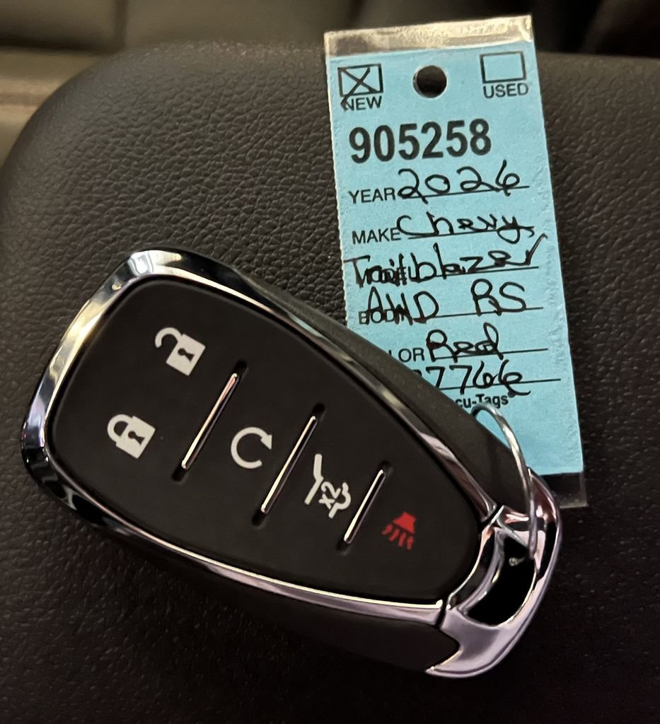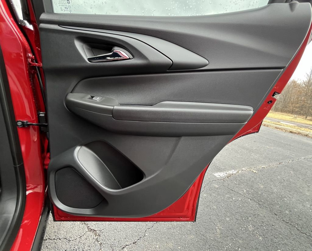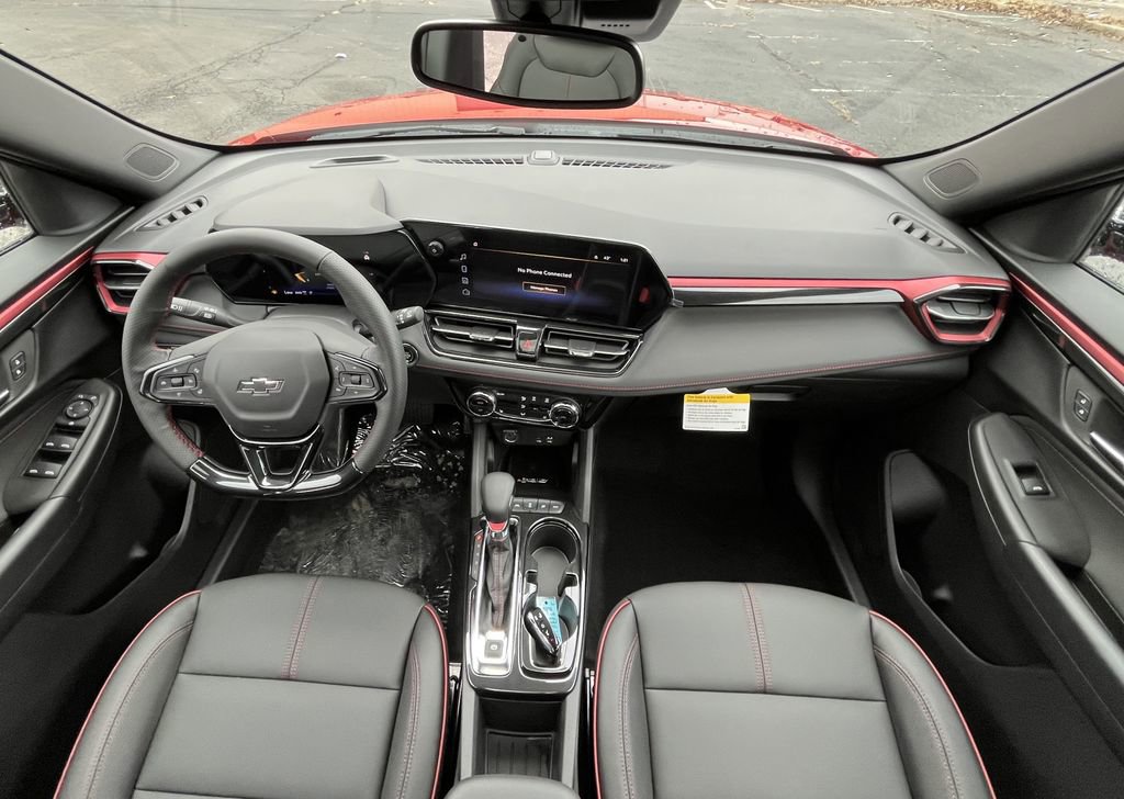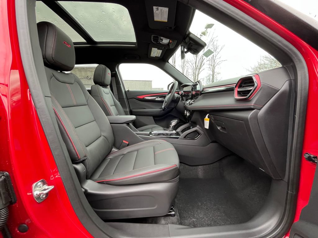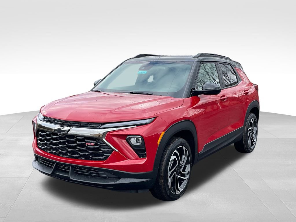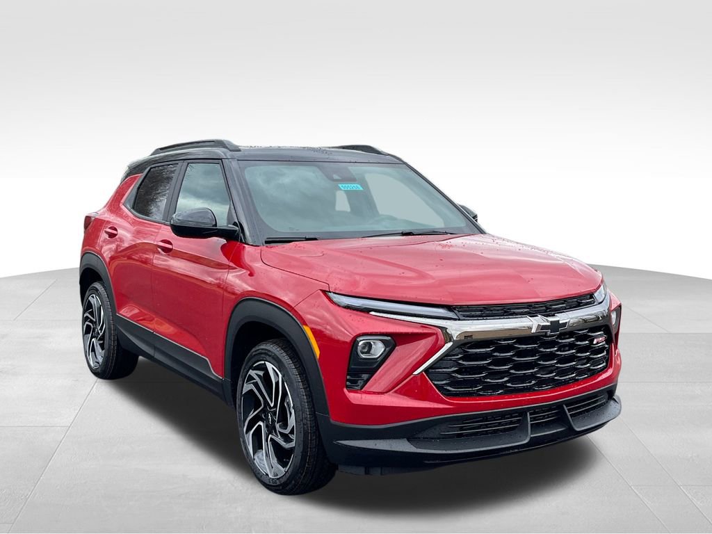 Apex Red 2026 Chevrolet TrailBlazer RS AWD 9-Speed Automatic 1.3L I3 Turbocharged DOHC 12V LEV3-SULEV30 155hp 1 Type-A and 1 Type-C USB Charging-Only Ports, 1 Type-A and 1 Type-C USB Ports, 120-Volt Power Outlet, 2-Way Power Driver Lumbar Seat Adjuster, 3.17 Final Drive Axle Ratio, 4-Way Manual Front Passenger Seat Adjuster, 4-Wheel Disc Brakes, 6 Speakers, 6-Speaker Audio System Feature with Amplifier, 8-Way Power Driver Seat Adjuster, ABS brakes, Air Conditioning, Alloy wheels, AM/FM radio: SiriusXM, Auto High-beam Headlights, Brake assist, Bumpers: body-color, Cabin Humidity Sensor, Compass, Convenience Package, Delay-off headlights, Driver and Front Passenger Illuminated Vanity Mirrors, Driver Confidence Package, Driver door bin, Driver vanity mirror, Dual front impact airbags, Dual front side impact airbags, Dual-Pane Panoramic Power Sunroof, Electronic Stability Control, Emergency communication system: OnStar and Chevrolet connected services capable, Evotex Seat Trim, Exterior Parking Camera Rear, Flat-Folding Front Passenger Seatback, Front anti-roll bar, Front Bucket Seats, Front Center Armrest, Front reading lights, Front wheel independent suspension, Fully automatic headlights, Hands Free Power Programmable Liftgate, Heated door mirrors, Heated Driver and Front Passenger Seats, Heated front seats, Heated steering wheel, Illuminated entry, Inside Rear-View Auto-Dimming Mirror, Knee airbag, Lane Change Alert with Side Blind Zone Alert, Low tire pressure warning, Mosaic Black Metallic Two-Tone Roof, Occupant sensing airbag, Overhead airbag, Overhead console, Panic alarm, Passenger door bin, Passenger vanity mirror, Power door mirrors, Power driver seat, Power steering, Power windows, Preferred Equipment Group 1RS, Radio data system, Radio: AM/FM Stereo Audio System, Rear Cross Traffic Alert, Rear Park Assist, Rear seat center armrest, Rear side impact airbag, Rear window defroster, Rear window wiper, Remote keyless entry, Ride and Handling Suspension, Security system, Single-Zone Automatic Climate Control, SiriusXM Trial Subscription, Speed control, Split folding rear seat, Spoiler, Steering wheel mounted audio controls, Tachometer, Telescoping steering wheel, Tilt steering wheel, Traction control, Trailer Hitch, Trailer Hitch Bezel, Trailer Hitch Harness, Trailering Package, Trip computer, Variably intermittent wipers, Wheels: 19 High Gloss Black Machined Aluminum, Wireless Apple CarPlay/Android Auto, Wireless Charging.