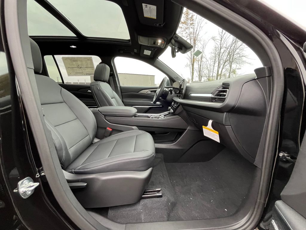 Black 2026 Chevrolet Traverse LT 1LT FWD 8-Speed Automatic 2.5L DOHC 3rd row seats: split-bench, 4-Way Manual Front Passenger Seat Adjuster, 4-Wheel Disc Brakes, 6 Speakers, 6-Speaker Audio System Feature, 8-Way Power Driver Seat Adjuster, ABS brakes, Air Conditioning, Alloy wheels, AM/FM radio: SiriusXM with 360L, Apple CarPlay/Android Auto, Auto High-beam Headlights, Automatic temperature control, Brake assist, Bumpers: body-color, Child-Seat-Sensing Airbag, Compass, Delay-off headlights, Driver door bin, Driver vanity mirror, Dual front impact airbags, Dual front side impact airbags, Electronic Stability Control, Emergency communication system: OnStar, Four wheel independent suspension, Front anti-roll bar, Front Bucket Seats, Front Center Armrest, Front dual zone A/C, Front reading lights, Fully automatic headlights, Heated door mirrors, Heated Driver & Front Passenger Seats, Heated front seats, Heated steering wheel, Illuminated entry, Low tire pressure warning, Navigation System, Occupant sensing airbag, Outside temperature display, Overhead airbag, Overhead console, Panic alarm, Passenger door bin, Passenger vanity mirror, Power door mirrors, Power driver seat, Power Liftgate, Power steering, Power windows, Premium Cloth Seat Trim, Radio data system, Radio: Audio System w/17.7 Diagonal Display, Rear air conditioning, Rear anti-roll bar, Rear reading lights, Rear window defroster, Rear window wiper, Remote keyless entry, Security system, SiriusXM w/360L Trial Subscription, Speed control, Speed-sensing steering, Spoiler, Steering wheel mounted audio controls, Tachometer, Telescoping steering wheel, Tilt steering wheel, Traction control, Trip computer, Turn signal indicator mirrors, Variably intermittent wipers, Voltmeter, Wheels: 18 Grazen Metallic Machined-Face Aluminum.
