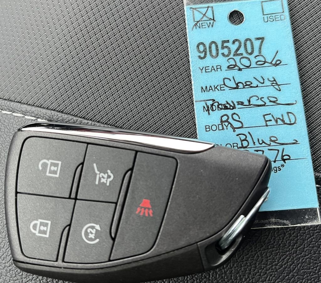 Lakeshore Blue 2026 Chevrolet Traverse RS FWD 8-Speed Automatic 2.5L DOHC 12 Speakers, 1st and 2nd Row All-Weather Floor Liners, 3rd Row All-Weather Floor Liner, 3rd row seats: split-bench, 4-Wheel Disc Brakes, 6-Way Power Front Passenger Seat Adjuster, 8-Way Power Driver Seat Adjuster, ABS brakes, Air Conditioning, Alloy wheels, AM/FM radio: SiriusXM with 360L, Apple CarPlay/Android Auto, Auto High-beam Headlights, Auto tilt-away steering wheel, Auto-dimming door mirrors, Automatic temperature control, Bose Premium 12-Speaker Audio System Feature, Brake assist, Bumpers: body-color, Child-Seat-Sensing Airbag, Compass, Delay-off headlights, Driver 4-Way Power Lumbar Seat Adjuster, Driver door bin, Driver vanity mirror, Dual front impact airbags, Dual front side impact airbags, Electronic Stability Control, Emergency communication system: OnStar, Exterior Parking Camera Rear, Floor Liner Package, Four wheel independent suspension, Front anti-roll bar, Front Bucket Seats, Front Center Armrest, Front dual zone A/C, Front Passenger 4-Way Power Lumbar Seat Adjuster, Front reading lights, Fully automatic headlights, Garage door transmitter, Heated door mirrors, Heated Driver and Front Passenger Seats, Heated front seats, Heated rear seats, Heated steering wheel, Illuminated entry, Integrated Cargo Liner, Low tire pressure warning, Memory seat, Navigation System, Occupant sensing airbag, Outside temperature display, Overhead airbag, Overhead console, Panic alarm, Passenger door bin, Passenger vanity mirror, Perforated Leather-Appointed Seat Trim, Power door mirrors, Power driver seat, Power Liftgate, Power passenger seat, Power steering, Power windows, Preferred Equipment Group 1RS, Radio data system, Radio: : Audio System w/17.7 Diagonal Display, Rain sensing wipers, Rear air conditioning, Rear anti-roll bar, Rear reading lights, Rear window defroster, Rear window wiper, Remote keyless entry, Security system, SiriusXM with 360L Trial Subscription, Speed control, Speed-sensing steering, Spoiler, Sport steering wheel, Steering wheel memory, Steering wheel mounted audio controls, Tachometer, Telescoping steering wheel, Tilt steering wheel, Traction control, Trip computer, Turn signal indicator mirrors, Variably intermittent wipers, Ventilated Driver and Front Passenger Seats, Ventilated front seats, Voltmeter, Wheels: 22 High Gloss Black Painted Aluminum.