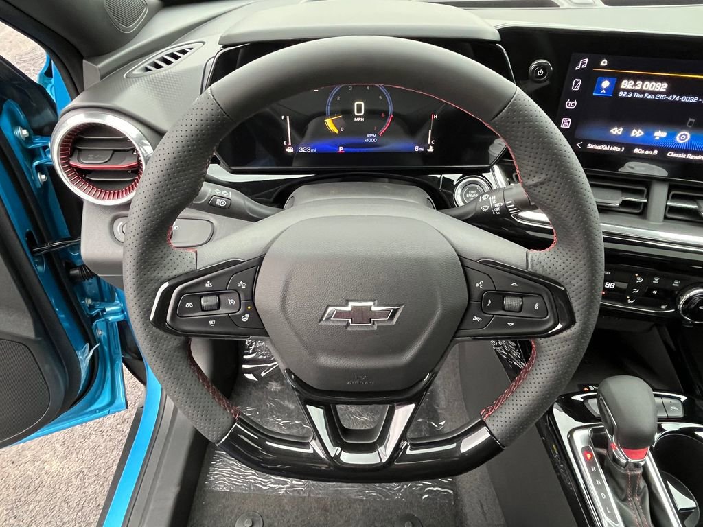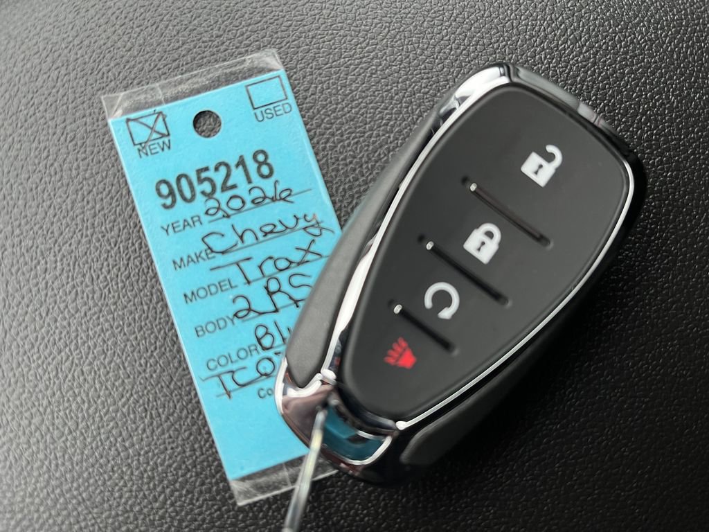 Marina Blue 2026 Chevrolet Trax 2RS FWD 6-Speed Automatic ECOTEC 1.2L Turbo 2-Way Adjustable Front Head Restraints, 2-Way Power Driver Lumbar Seat Adjuster, 3.50 Final Drive Axle Ratio, 4-Way Manual Front Passenger Seat Adjuster, 4-Wheel Disc Brakes, 6 Speakers, 6-Speaker Audio System Feature, 8-Way Power Driver Seat Adjuster, ABS brakes, Air Conditioning, Alloy wheels, AM/FM radio: SiriusXM, Auto High-beam Headlights, Automatic temperature control, Brake assist, Bumpers: body-color, Compass, Delay-off headlights, Driver door bin, Driver vanity mirror, Dual front impact airbags, Dual front side impact airbags, Electronic Stability Control, Emergency communication system: OnStar One Essentials, Evotex Seat Trim, Exterior Parking Camera Rear, Front anti-roll bar, Front Bucket Seats, Front Center Armrest, Front reading lights, Front wheel independent suspension, Fully automatic headlights, Heated door mirrors, Heated Driver and Front Passenger Seats, Heated front seats, Heated steering wheel, Illuminated entry, Leather steering wheel, Low tire pressure warning, Occupant sensing airbag, Outside temperature display, Overhead airbag, Overhead console, Panic alarm, Passenger door bin, Passenger vanity mirror, Power door mirrors, Power driver seat, Power steering, Power windows, Premium audio system: Chevrolet Infotainment 3, Radio data system, Radio: AM/FM Stereo Audio System, Rear window defroster, Rear window wiper, Remote keyless entry, Security system, SiriusXM Trial Subscription, Speed control, Split folding rear seat, Spoiler, Sport steering wheel, Steering wheel mounted audio controls, Tachometer, Telescoping steering wheel, Tilt steering wheel, Traction control, Trip computer, Variably intermittent wipers, Wheels: 19 Black-Painted Machined Aluminum, Wireless Apple CarPlay/Wireless Android Auto.