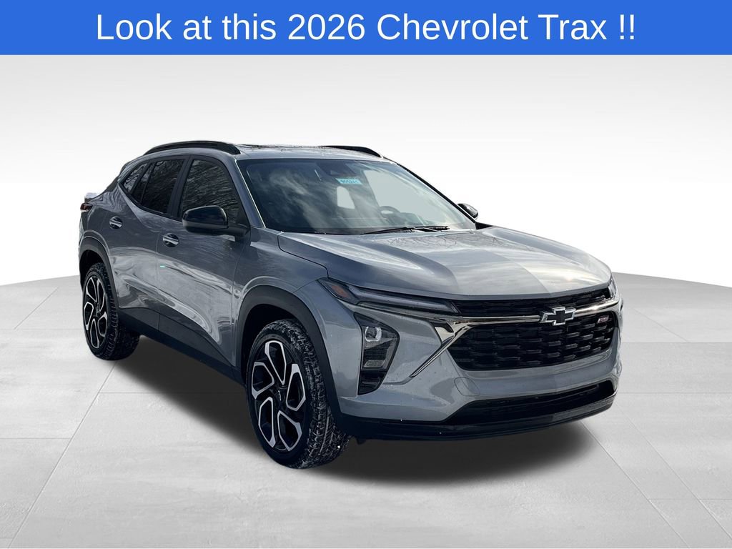 Sterling Gray 2026 Chevrolet Trax 2RS FWD 6-Speed Automatic ECOTEC 1.2L Turbo 2-Way Adjustable Front Head Restraints, 2-Way Power Driver Lumbar Seat Adjuster, 3.50 Final Drive Axle Ratio, 4-Way Manual Front Passenger Seat Adjuster, 4-Wheel Disc Brakes, 6 Speakers, 6-Speaker Audio System Feature, 8-Way Power Driver Seat Adjuster, ABS brakes, Air Conditioning, Alloy wheels, AM/FM radio: SiriusXM, Auto High-beam Headlights, Automatic temperature control, Brake assist, Bumpers: body-color, Compass, Delay-off headlights, Driver door bin, Driver vanity mirror, Dual front impact airbags, Dual front side impact airbags, Electronic Stability Control, Emergency communication system: OnStar One Essentials, Evotex Seat Trim, Exterior Parking Camera Rear, Front anti-roll bar, Front Bucket Seats, Front Center Armrest, Front reading lights, Front wheel independent suspension, Fully automatic headlights, Heated door mirrors, Heated Driver and Front Passenger Seats, Heated front seats, Heated steering wheel, Illuminated entry, Leather steering wheel, Low tire pressure warning, Occupant sensing airbag, Outside temperature display, Overhead airbag, Overhead console, Panic alarm, Passenger door bin, Passenger vanity mirror, Power door mirrors, Power driver seat, Power steering, Power windows, Premium audio system: Chevrolet Infotainment 3, Radio data system, Radio: AM/FM Stereo Audio System, Rear window defroster, Rear window wiper, Remote keyless entry, Security system, SiriusXM Trial Subscription, Speed control, Split folding rear seat, Spoiler, Sport steering wheel, Steering wheel mounted audio controls, Tachometer, Telescoping steering wheel, Tilt steering wheel, Traction control, Trip computer, Variably intermittent wipers, Wheels: 19 Black-Painted Machined Aluminum, Wireless Apple CarPlay/Wireless Android Auto.