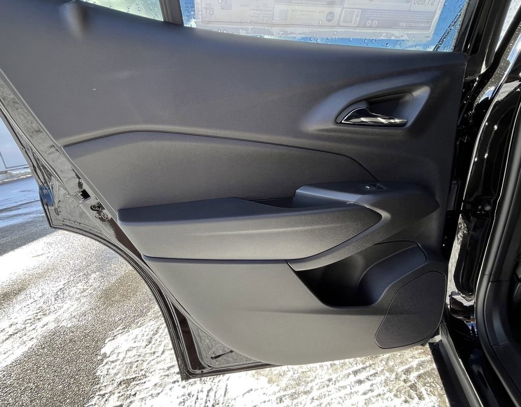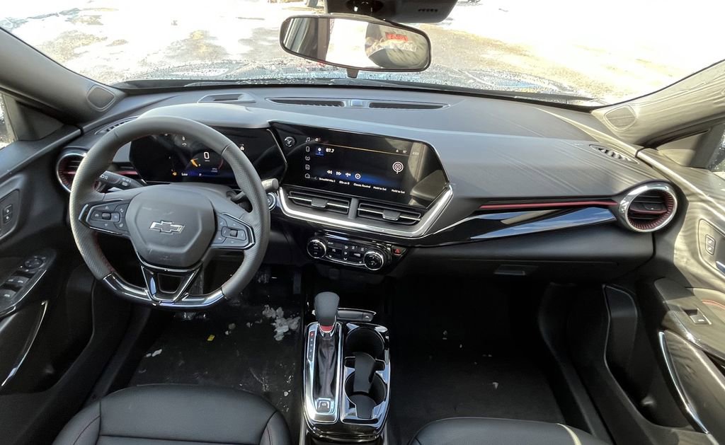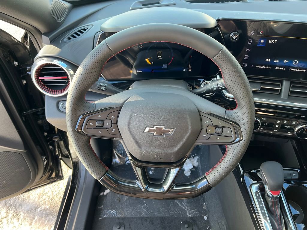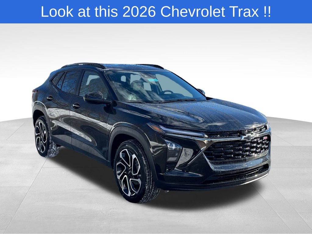 Black 2026 Chevrolet Trax 2RS FWD 6-Speed Automatic ECOTEC 1.2L Turbo 2-Way Adjustable Front Head Restraints, 2-Way Power Driver Lumbar Seat Adjuster, 3.50 Final Drive Axle Ratio, 4-Way Manual Front Passenger Seat Adjuster, 4-Wheel Disc Brakes, 6 Speakers, 6-Speaker Audio System Feature, 8-Way Power Driver Seat Adjuster, ABS brakes, Air Conditioning, Alloy wheels, AM/FM radio: SiriusXM, Auto High-beam Headlights, Automatic temperature control, Brake assist, Bumpers: body-color, Compass, Delay-off headlights, Driver door bin, Driver vanity mirror, Dual front impact airbags, Dual front side impact airbags, Electronic Stability Control, Emergency communication system: OnStar One Essentials, Evotex Seat Trim, Exterior Parking Camera Rear, Front anti-roll bar, Front Bucket Seats, Front Center Armrest, Front reading lights, Front wheel independent suspension, Fully automatic headlights, Heated door mirrors, Heated Driver and Front Passenger Seats, Heated front seats, Heated steering wheel, Illuminated entry, Leather steering wheel, Low tire pressure warning, Occupant sensing airbag, Outside temperature display, Overhead airbag, Overhead console, Panic alarm, Passenger door bin, Passenger vanity mirror, Power door mirrors, Power driver seat, Power steering, Power windows, Premium audio system: Chevrolet Infotainment 3, Radio data system, Radio: AM/FM Stereo Audio System, Rear window defroster, Rear window wiper, Remote keyless entry, Security system, SiriusXM Trial Subscription, Speed control, Split folding rear seat, Spoiler, Sport steering wheel, Steering wheel mounted audio controls, Tachometer, Telescoping steering wheel, Tilt steering wheel, Traction control, Trip computer, Variably intermittent wipers, Wheels: 19 Black-Painted Machined Aluminum, Wireless Apple CarPlay/Wireless Android Auto.