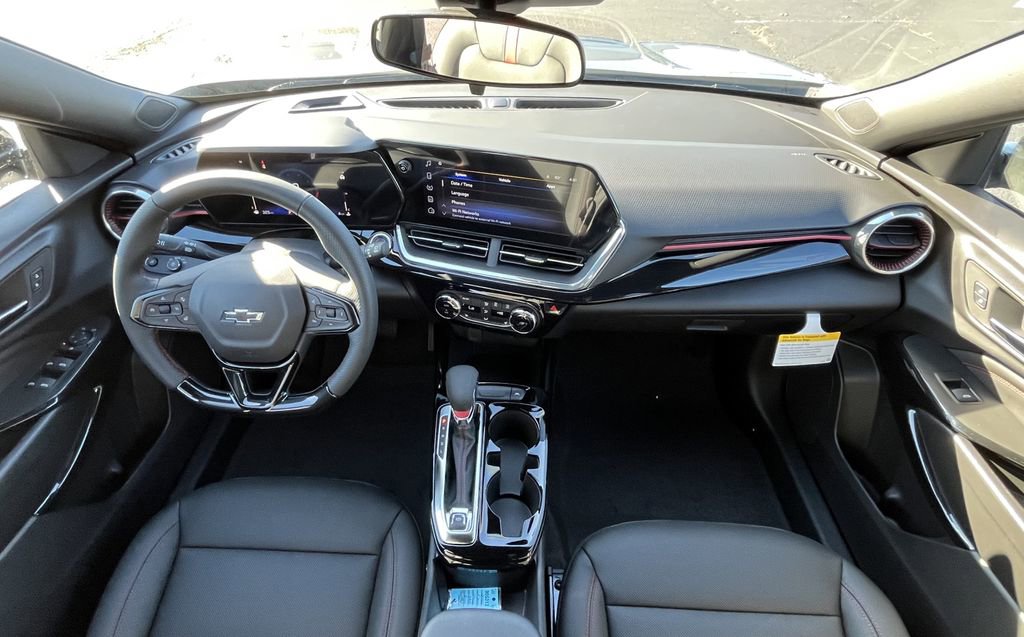 Sterling Gray 2026 Chevrolet Trax 2RS FWD 6-Speed Automatic ECOTEC 1.2L Turbo 2-Way Adjustable Front Head Restraints, 2-Way Power Driver Lumbar Seat Adjuster, 3.50 Final Drive Axle Ratio, 4-Way Manual Front Passenger Seat Adjuster, 4-Wheel Disc Brakes, 6 Speakers, 6-Speaker Audio System Feature, 8-Way Power Driver Seat Adjuster, ABS brakes, Air Conditioning, Alloy wheels, AM/FM radio: SiriusXM, Auto High-beam Headlights, Automatic temperature control, Brake assist, Bumpers: body-color, Compass, Delay-off headlights, Driver door bin, Driver vanity mirror, Dual front impact airbags, Dual front side impact airbags, Electronic Stability Control, Emergency communication system: OnStar One Essentials, Evotex Seat Trim, Exterior Parking Camera Rear, Front anti-roll bar, Front Bucket Seats, Front Center Armrest, Front reading lights, Front wheel independent suspension, Fully automatic headlights, Heated door mirrors, Heated Driver and Front Passenger Seats, Heated front seats, Heated steering wheel, Illuminated entry, Leather steering wheel, Low tire pressure warning, Occupant sensing airbag, Outside temperature display, Overhead airbag, Overhead console, Panic alarm, Passenger door bin, Passenger vanity mirror, Power door mirrors, Power driver seat, Power steering, Power windows, Premium audio system: Chevrolet Infotainment 3, Radio data system, Radio: AM/FM Stereo Audio System, Rear window defroster, Rear window wiper, Remote keyless entry, Security system, SiriusXM Trial Subscription, Speed control, Split folding rear seat, Spoiler, Sport steering wheel, Steering wheel mounted audio controls, Tachometer, Telescoping steering wheel, Tilt steering wheel, Traction control, Trip computer, Variably intermittent wipers, Wheels: 19 Black-Painted Machined Aluminum, Wireless Apple CarPlay/Wireless Android Auto.