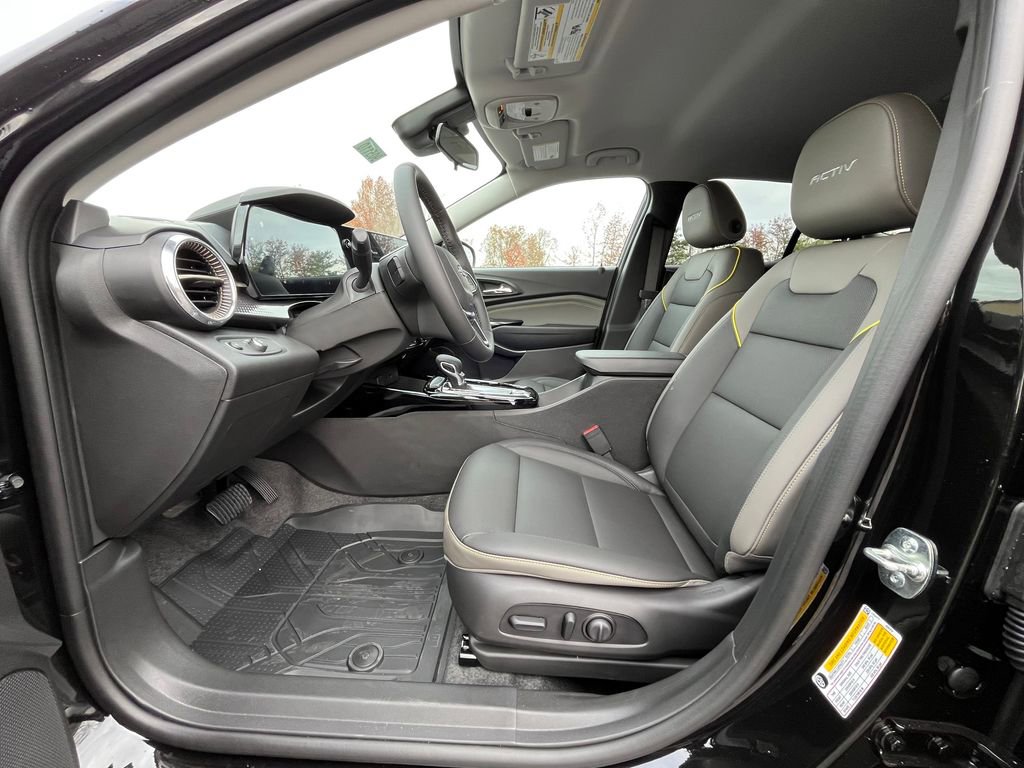 Black 2026 Chevrolet Trax ACTIV FWD 6-Speed Automatic ECOTEC 1.2L Turbo 2-Way Adjustable Front Head Restraints, 2-Way Power Driver Lumbar Seat Adjuster, 3.50 Final Drive Axle Ratio, 4-Way Manual Front Passenger Seat Adjuster, 4-Wheel Disc Brakes, 6 Speakers, 6-Speaker Audio System Feature, 8-Way Power Driver Seat Adjuster, ABS brakes, Air Conditioning, Alloy wheels, AM/FM radio: SiriusXM, Auto High-beam Headlights, Automatic temperature control, Brake assist, Bumpers: body-color, Compass, Delay-off headlights, Driver door bin, Driver vanity mirror, Dual front impact airbags, Dual front side impact airbags, Electronic Stability Control, Emergency communication system: OnStar One Essentials, Evotex Seat Trim, Exterior Parking Camera Rear, Front anti-roll bar, Front Bucket Seats, Front Center Armrest, Front reading lights, Front wheel independent suspension, Fully automatic headlights, Heated door mirrors, Heated Driver & Front Passenger Seats, Heated front seats, Heated steering wheel, Illuminated entry, Leather steering wheel, Low tire pressure warning, Occupant sensing airbag, Outside temperature display, Overhead airbag, Overhead console, Panic alarm, Passenger door bin, Passenger vanity mirror, Power door mirrors, Power driver seat, Power steering, Power windows, Premium audio system: Chevrolet Infotainment 3, Radio data system, Radio: AM/FM Stereo Audio System, Rear window defroster, Rear window wiper, Remote keyless entry, Security system, SiriusXM Trial Subscription, Speed control, Split folding rear seat, Spoiler, Steering wheel mounted audio controls, Tachometer, Telescoping steering wheel, Tilt steering wheel, Traction control, Trip computer, Variably intermittent wipers, Wheels: 18 Black-Painted Aluminum, Wireless Apple CarPlay/Wireless Android Auto.