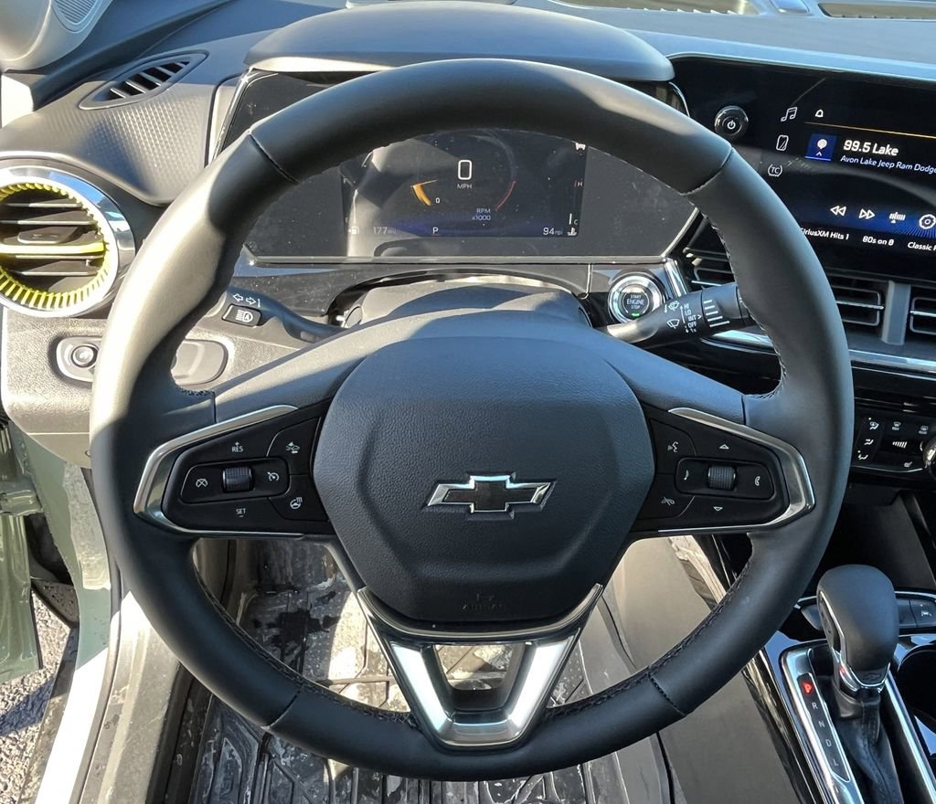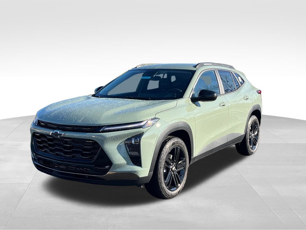 Green 2026 Chevrolet Trax ACTIV FWD 6-Speed Automatic ECOTEC 1.2L Turbo 2-Way Adjustable Front Head Restraints, 2-Way Power Driver Lumbar Seat Adjuster, 3.50 Final Drive Axle Ratio, 4-Way Manual Front Passenger Seat Adjuster, 4-Wheel Disc Brakes, 6 Speakers, 6-Speaker Audio System Feature, 8-Way Power Driver Seat Adjuster, ABS brakes, Air Conditioning, Alloy wheels, AM/FM radio: SiriusXM, Auto High-beam Headlights, Automatic temperature control, Brake assist, Bumpers: body-color, Compass, Delay-off headlights, Driver door bin, Driver vanity mirror, Dual front impact airbags, Dual front side impact airbags, Electronic Stability Control, Emergency communication system: OnStar One Essentials, Evotex Seat Trim, Exterior Parking Camera Rear, Front anti-roll bar, Front Bucket Seats, Front Center Armrest, Front reading lights, Front wheel independent suspension, Fully automatic headlights, Heated door mirrors, Heated Driver and Front Passenger Seats, Heated front seats, Heated steering wheel, Illuminated entry, Leather steering wheel, Low tire pressure warning, Occupant sensing airbag, Outside temperature display, Overhead airbag, Overhead console, Panic alarm, Passenger door bin, Passenger vanity mirror, Power door mirrors, Power driver seat, Power steering, Power windows, Premium audio system: Chevrolet Infotainment 3, Radio data system, Radio: AM/FM Stereo Audio System, Rear window defroster, Rear window wiper, Remote keyless entry, Security system, SiriusXM Trial Subscription, Speed control, Split folding rear seat, Spoiler, Steering wheel mounted audio controls, Tachometer, Telescoping steering wheel, Tilt steering wheel, Traction control, Trip computer, Variably intermittent wipers, Wheels: 18 Black-Painted Aluminum, Wireless Apple CarPlay/Wireless Android Auto.