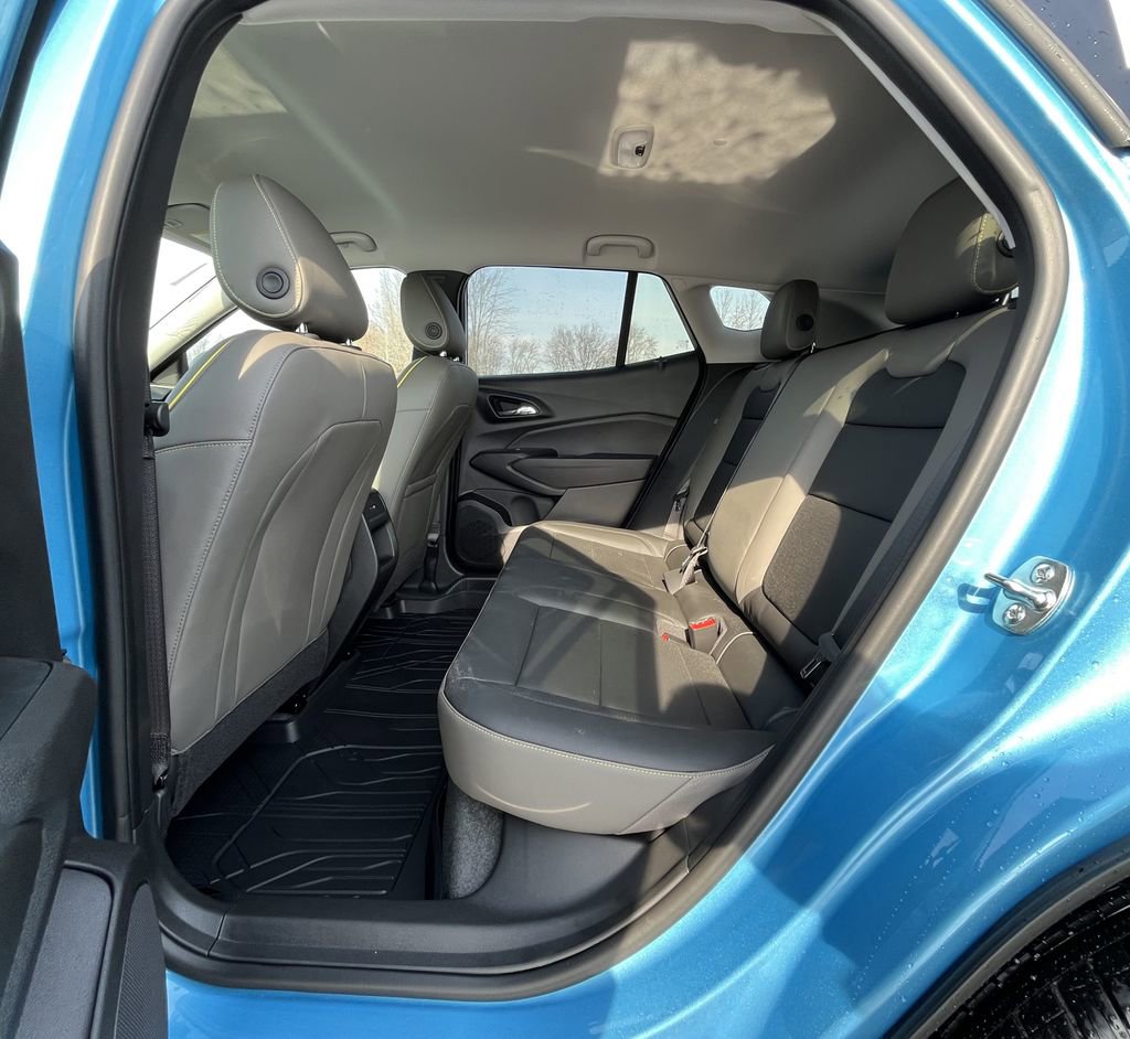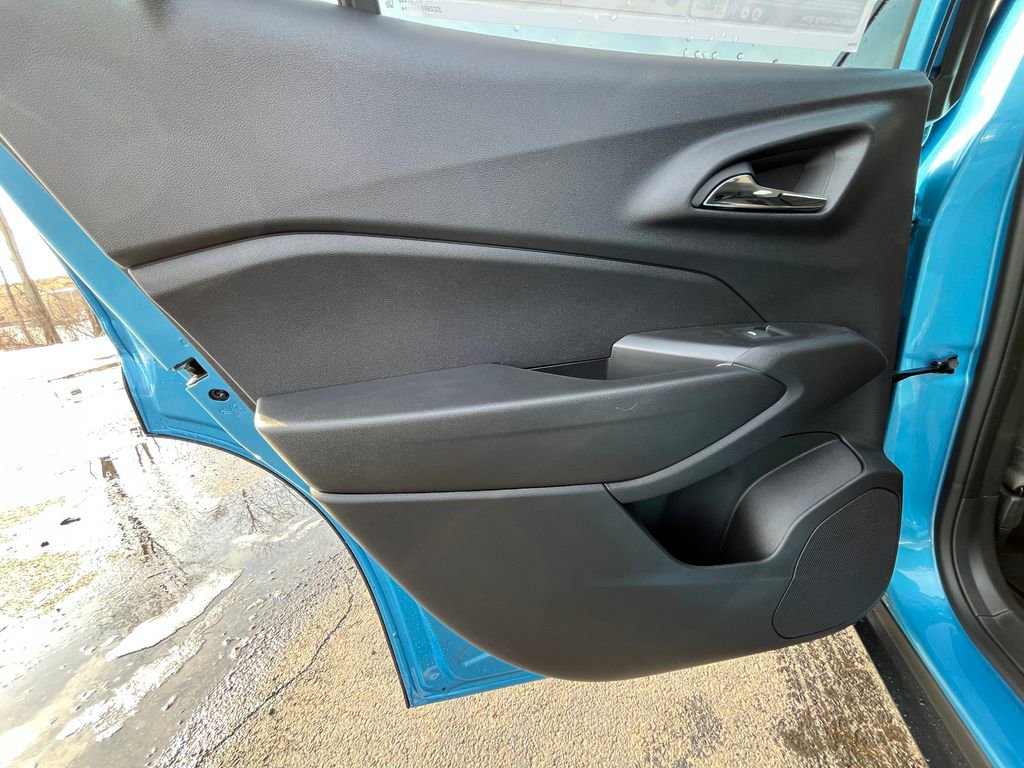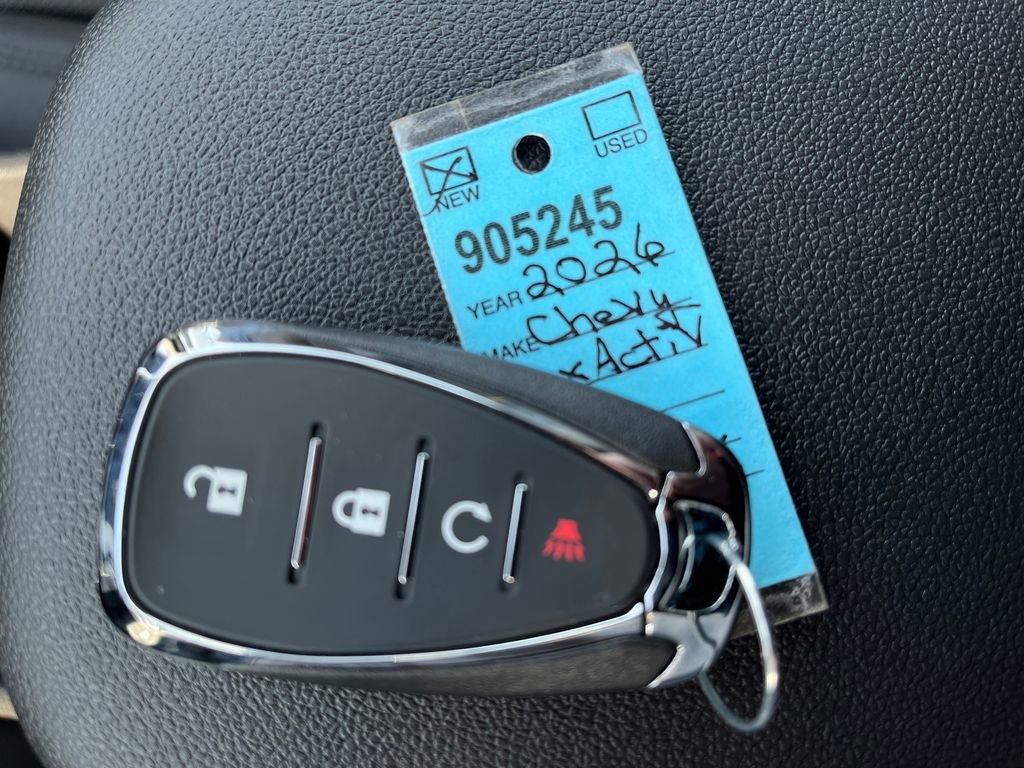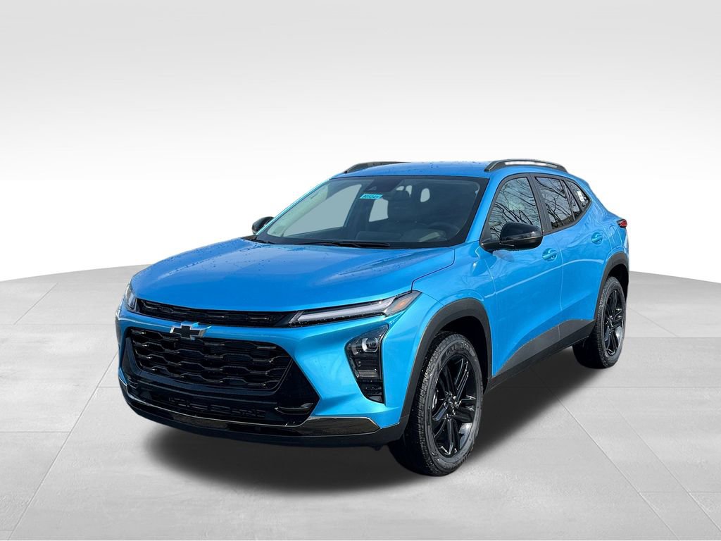 Marina Blue 2026 Chevrolet Trax ACTIV FWD 6-Speed Automatic ECOTEC 1.2L Turbo 2-Way Adjustable Front Head Restraints, 2-Way Power Driver Lumbar Seat Adjuster, 3.50 Final Drive Axle Ratio, 4-Way Manual Front Passenger Seat Adjuster, 4-Wheel Disc Brakes, 6 Speakers, 6-Speaker Audio System Feature, 8-Way Power Driver Seat Adjuster, ABS brakes, Air Conditioning, Alloy wheels, AM/FM radio: SiriusXM, Auto High-beam Headlights, Automatic temperature control, Brake assist, Bumpers: body-color, Compass, Delay-off headlights, Driver door bin, Driver vanity mirror, Dual front impact airbags, Dual front side impact airbags, Electronic Stability Control, Emergency communication system: OnStar One Essentials, Evotex Seat Trim, Exterior Parking Camera Rear, Front anti-roll bar, Front Bucket Seats, Front Center Armrest, Front reading lights, Front wheel independent suspension, Fully automatic headlights, Heated door mirrors, Heated Driver and Front Passenger Seats, Heated front seats, Heated steering wheel, Illuminated entry, Leather steering wheel, Low tire pressure warning, Occupant sensing airbag, Outside temperature display, Overhead airbag, Overhead console, Panic alarm, Passenger door bin, Passenger vanity mirror, Power door mirrors, Power driver seat, Power steering, Power windows, Premium audio system: Chevrolet Infotainment 3, Radio data system, Radio: AM/FM Stereo Audio System, Rear window defroster, Rear window wiper, Remote keyless entry, Security system, SiriusXM Trial Subscription, Speed control, Split folding rear seat, Spoiler, Steering wheel mounted audio controls, Tachometer, Telescoping steering wheel, Tilt steering wheel, Traction control, Trip computer, Variably intermittent wipers, Wheels: 18 Black-Painted Aluminum, Wireless Apple CarPlay/Wireless Android Auto.