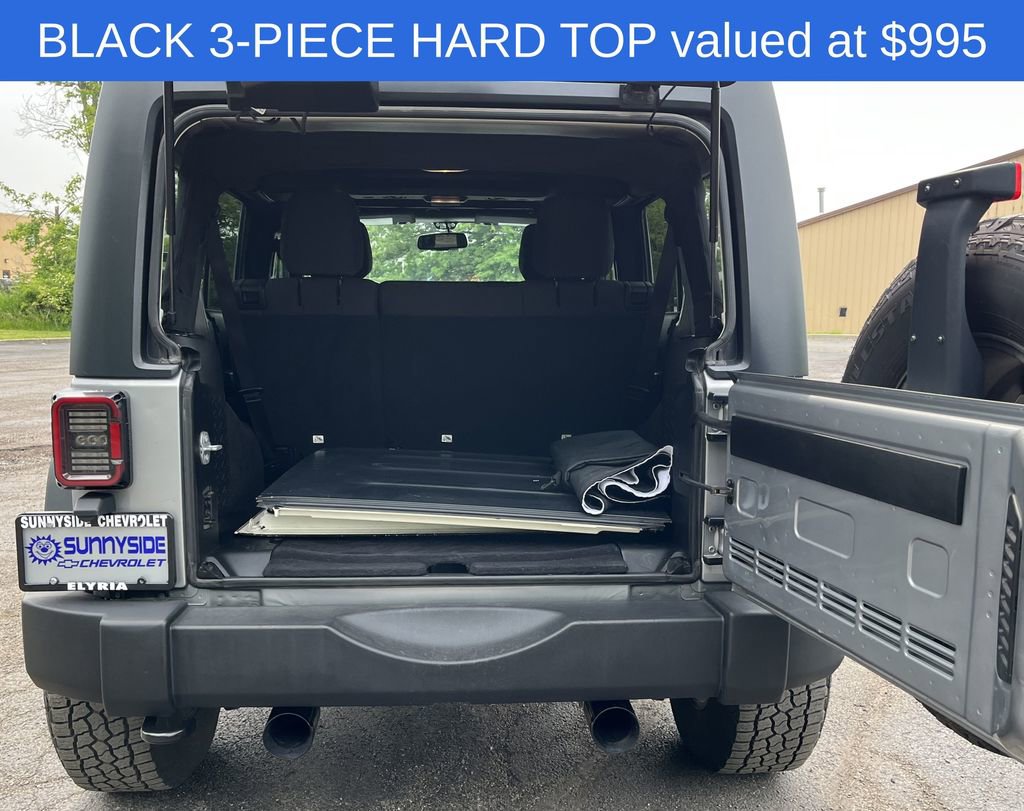 - BLACK 3-PIECE HARD TOP -inc: Freedom Panel Storage Bag Rear Window Defroster Rear Window Wiper/Washer Tinted Rear Quarter & Liftgate Windows Delete Sunrider Soft Top