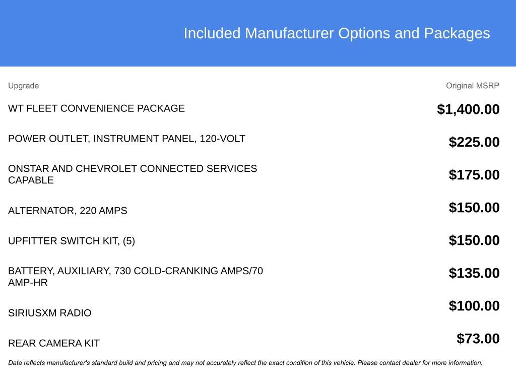 - WORK TRUCK PREFERRED EQUIPMENT GROUP includes standard equipment