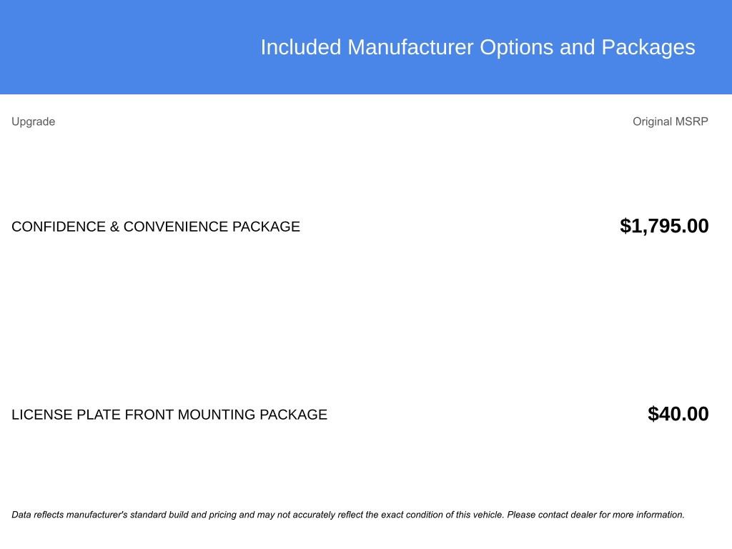 - CONFIDENCE & CONVENIENCE PACKAGE includes (B26) Driver Confidence II Package and (ZQ2) Driver Convenience Package content